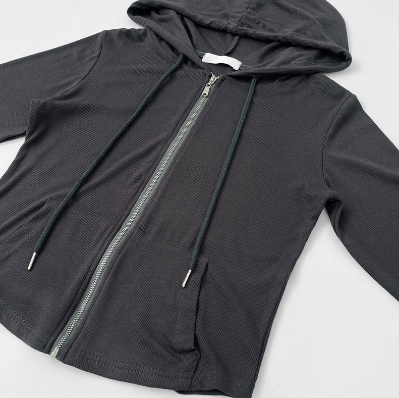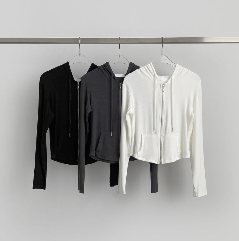 デイリーベーシックスリムフィット長袖フードTシャツ