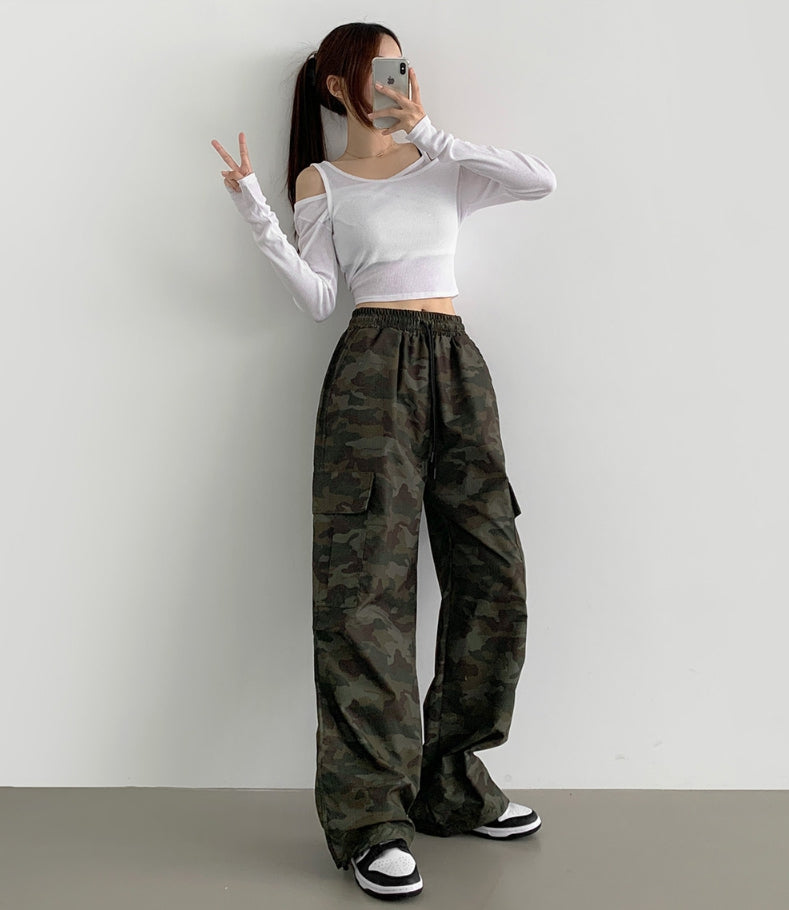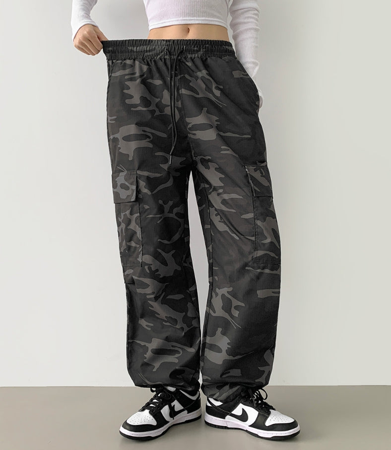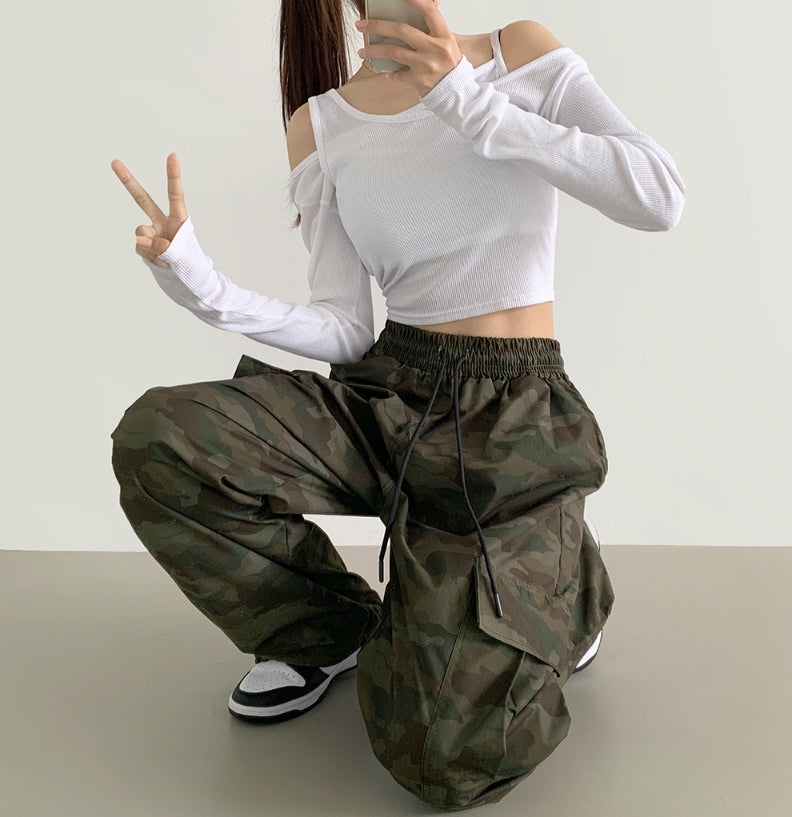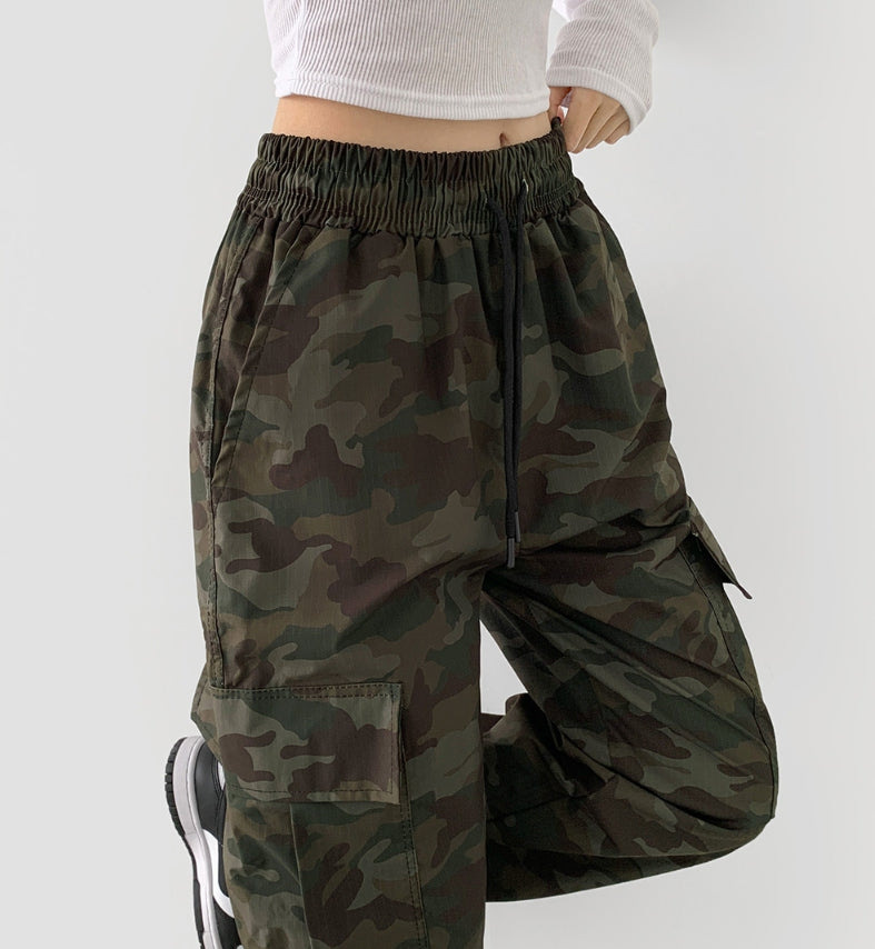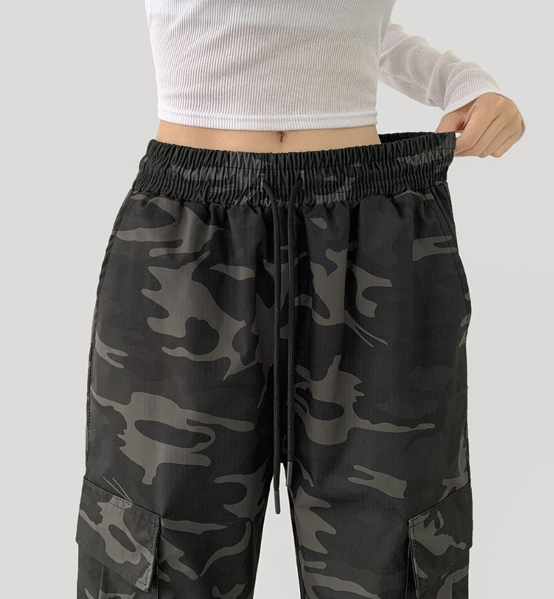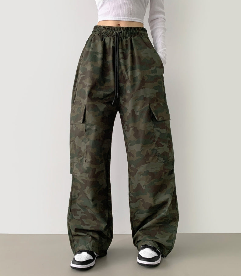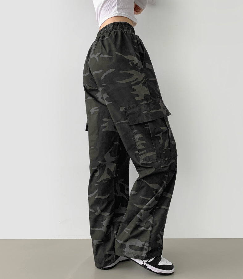 Dancer Like Camo Two-Way Military Jogger Wide Pants