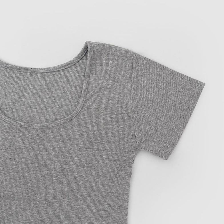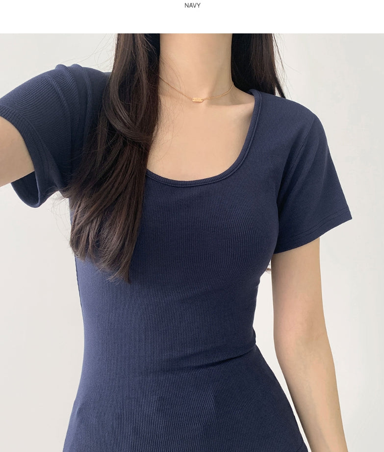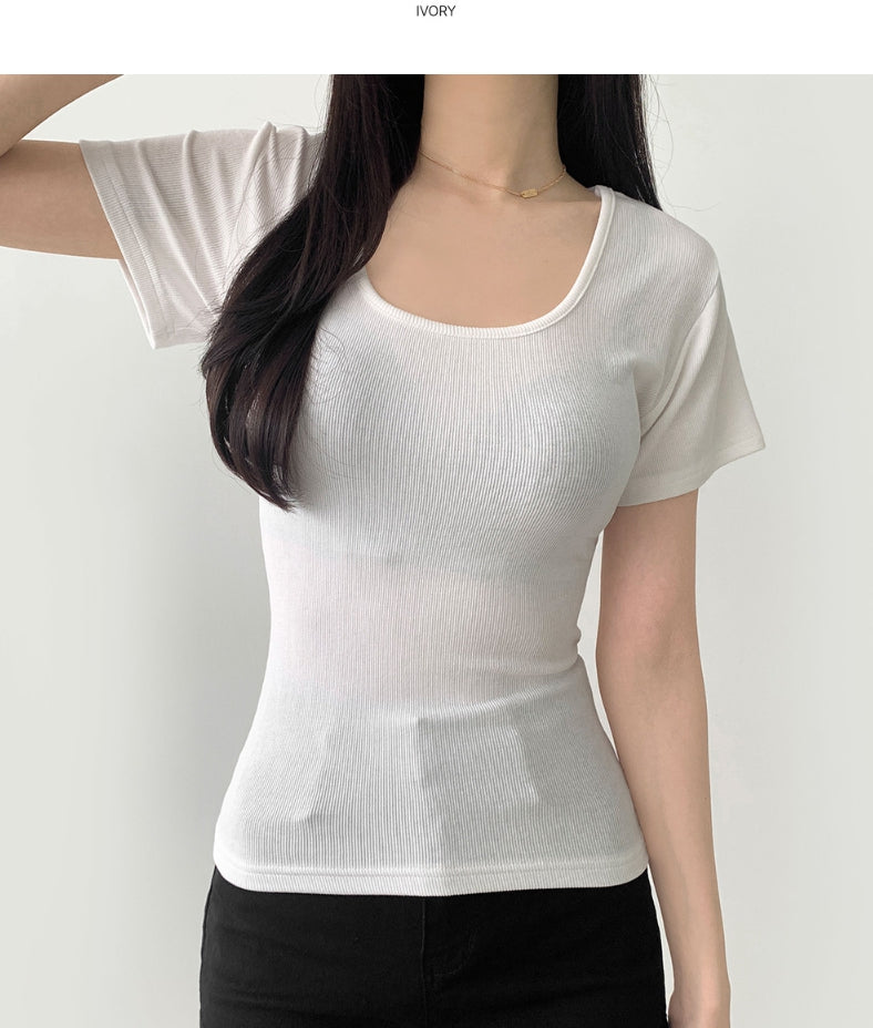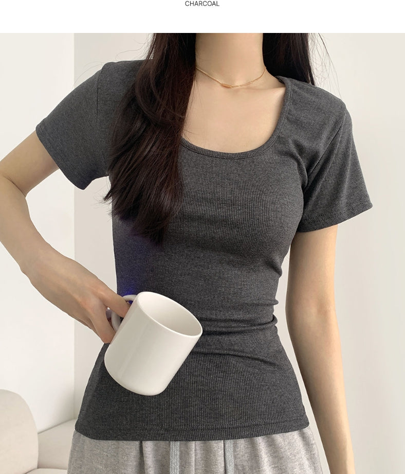 Deep U-neck Square Neck Slim Fit Short Sleeve T-Shirt