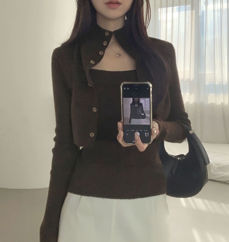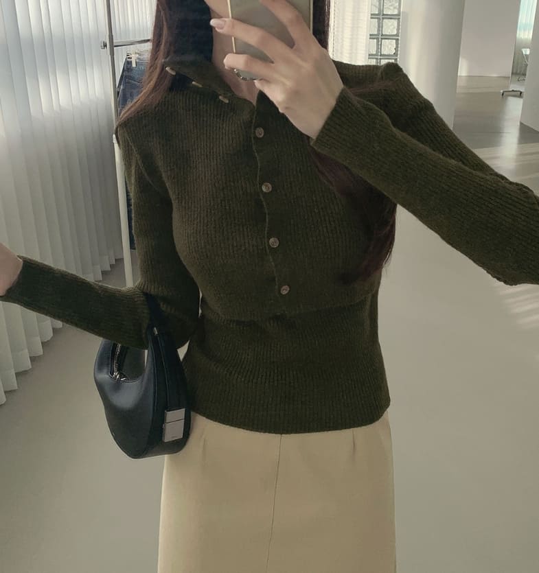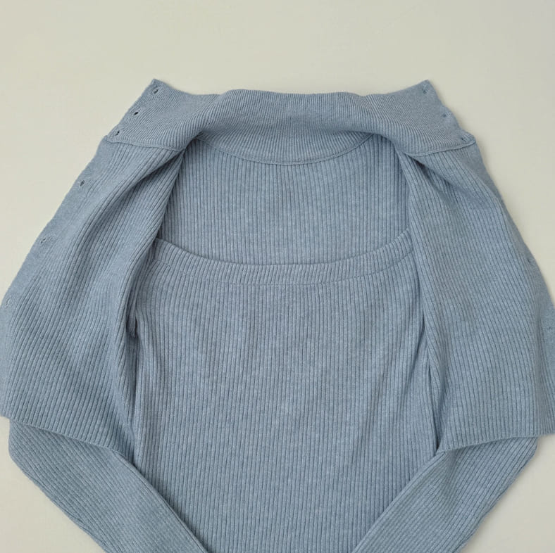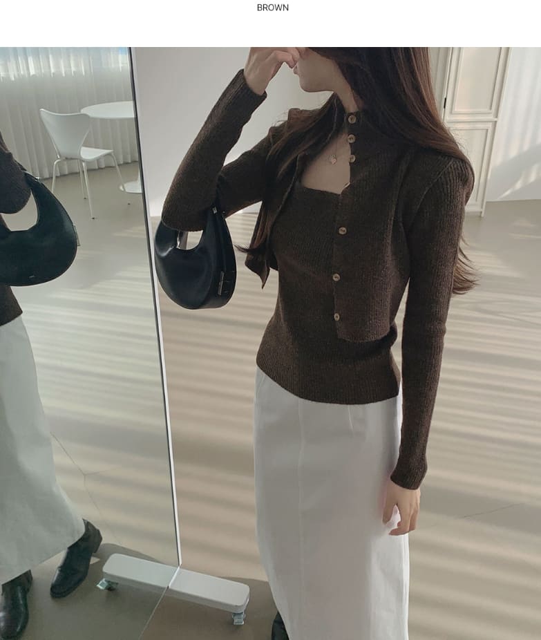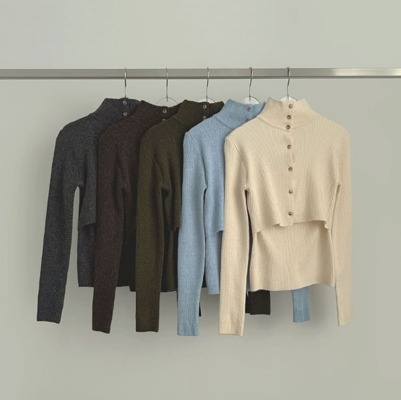 フェイクレイヤーハイネック重ね着風ニットセットアップ