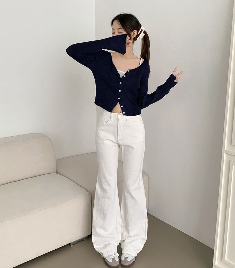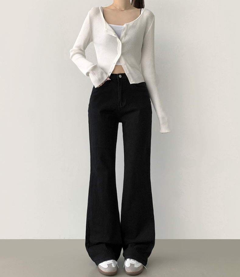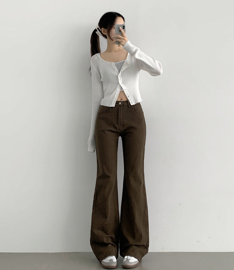 Fall Span Banding Semi Bootcut Cotton Pants