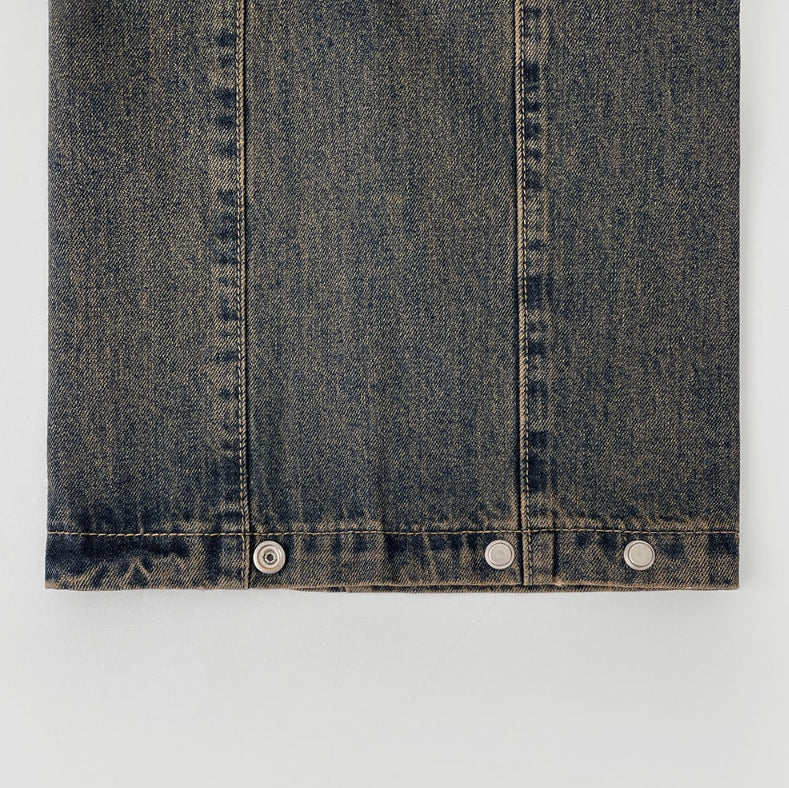 フォルディングピンタックヘムスナップバルーンフィットワイドフィットバンディングデニムパンツ