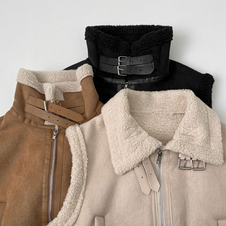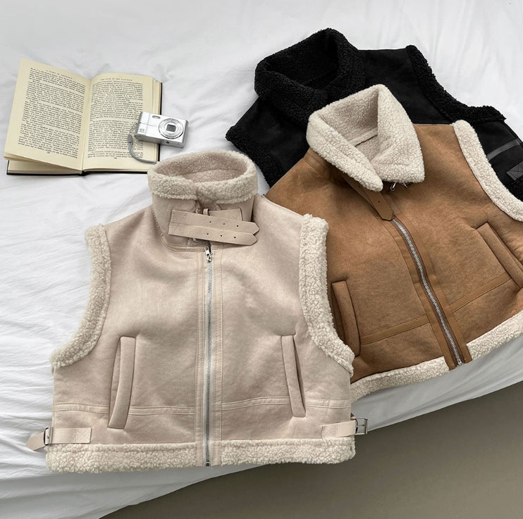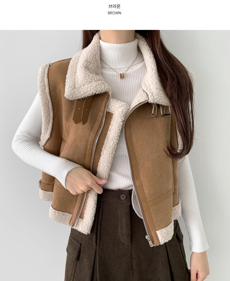 Full Fleece Brushed High Neck Buckle Mustang Vest