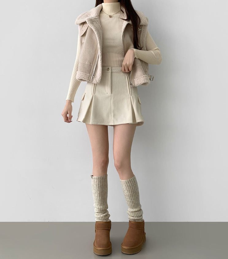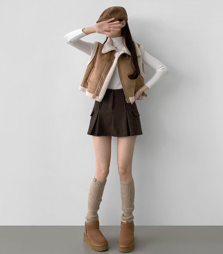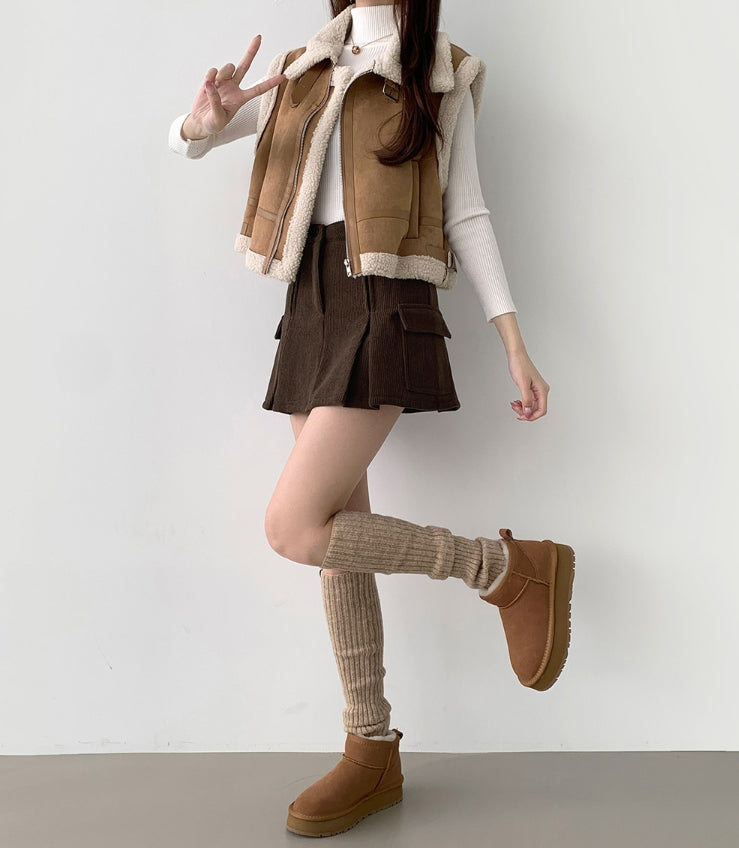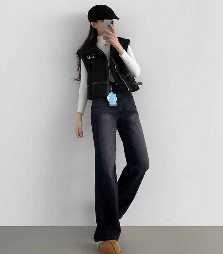 フルフリース裏起毛ハイネックバックルムートンベスト