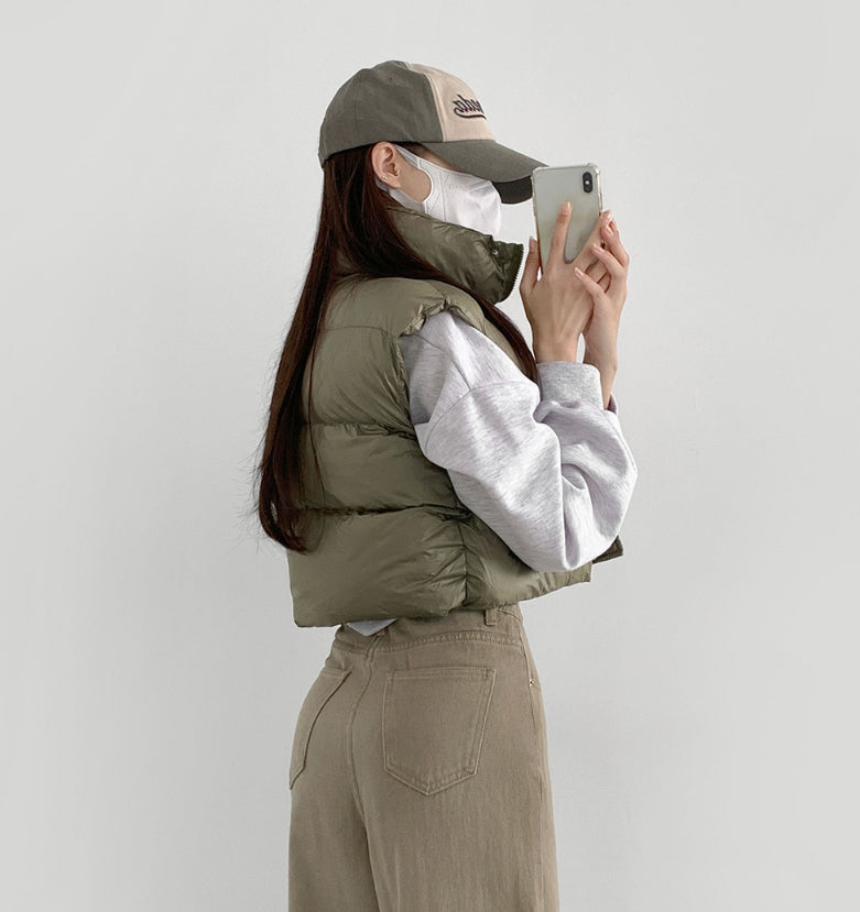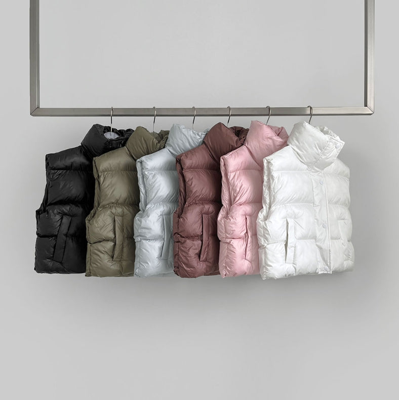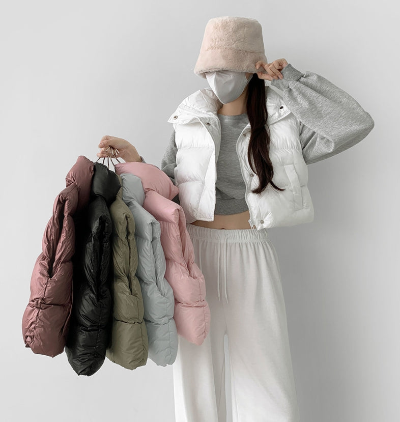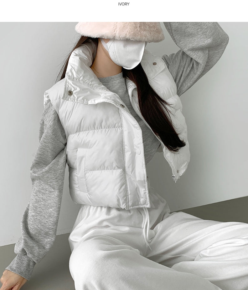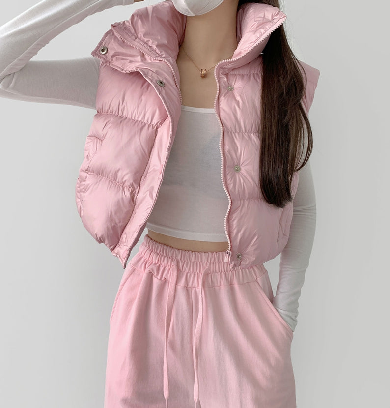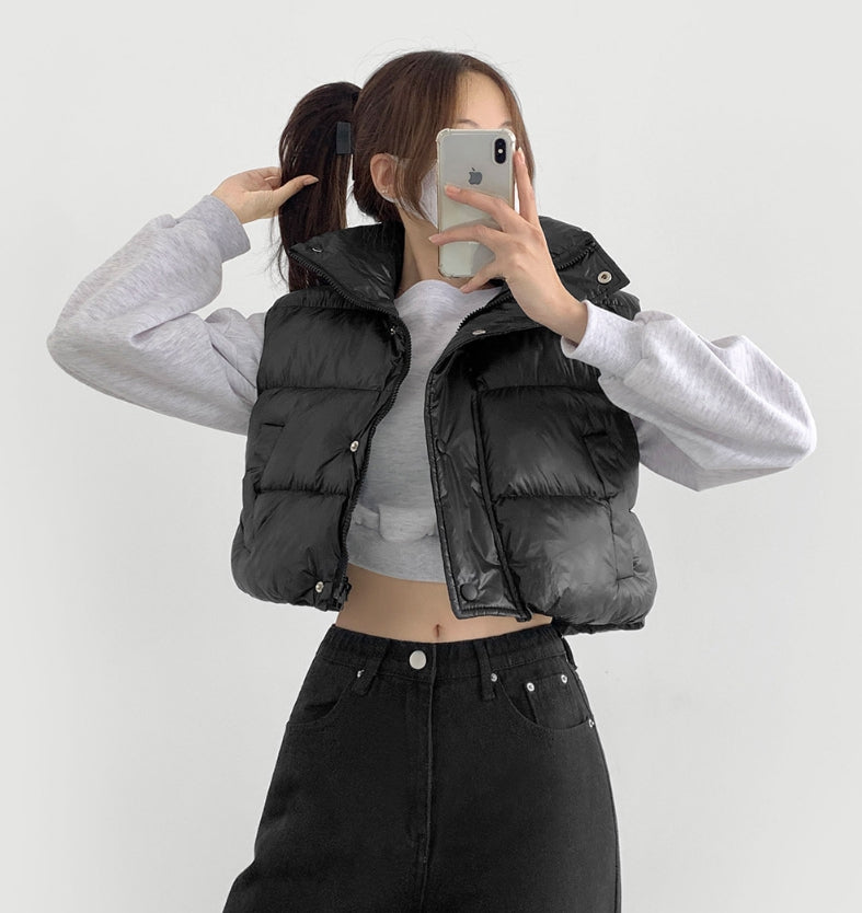 Glossy High Neck Trendy Pom Pom Crop Vest Padding