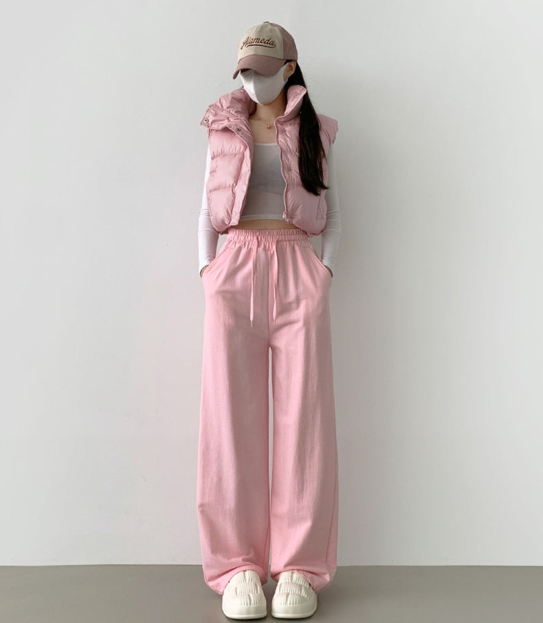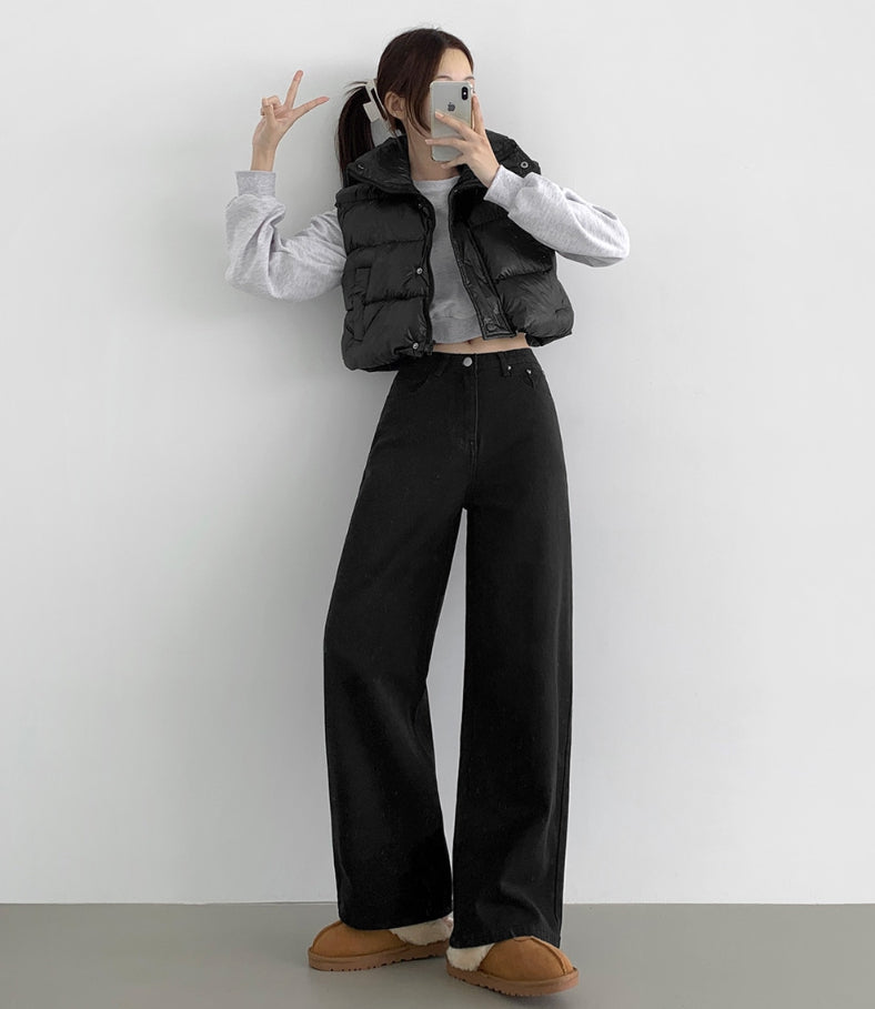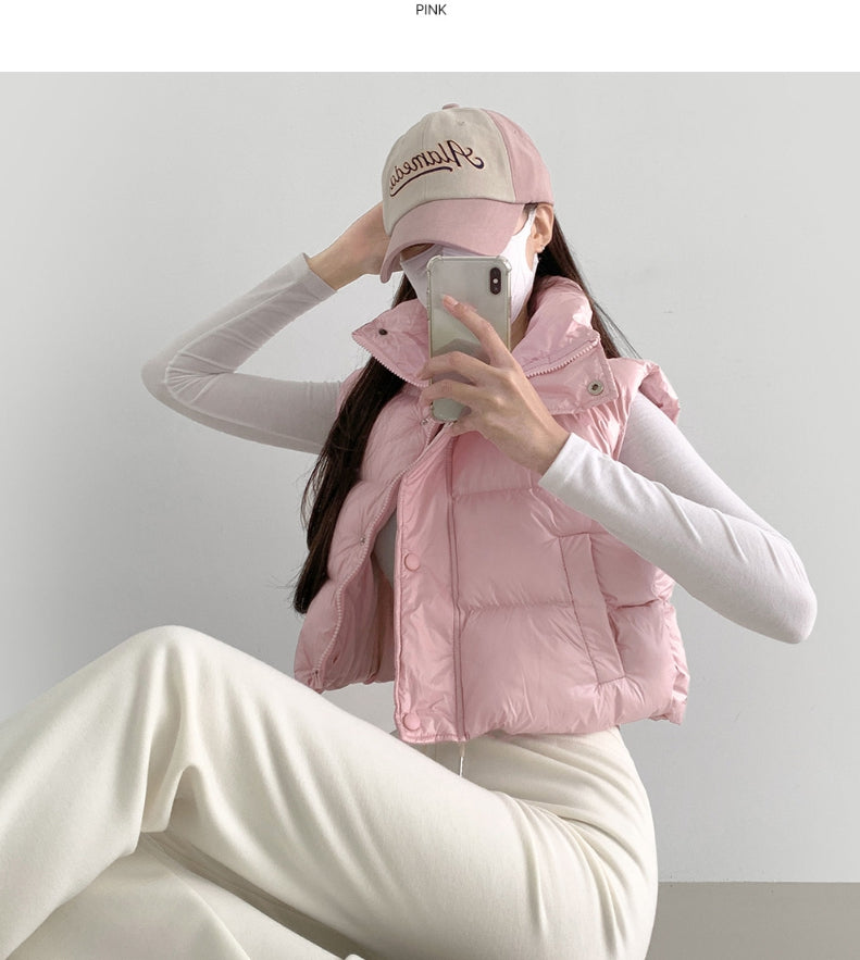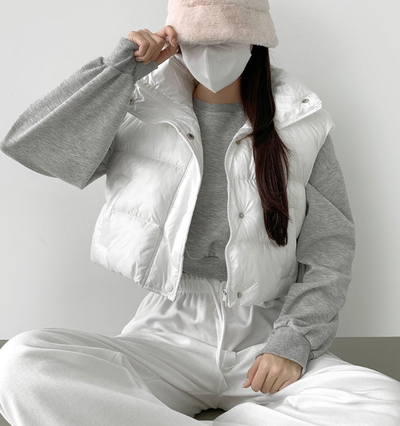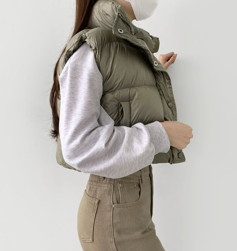 グロッシーハイネックトレンディポムポムクロップベストペディング