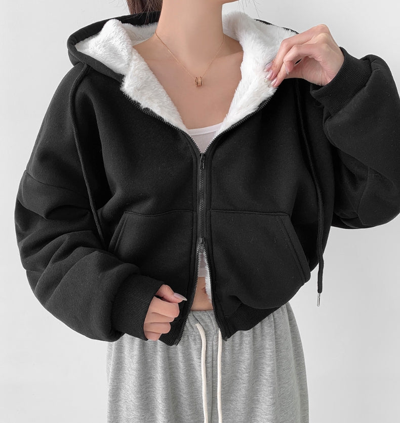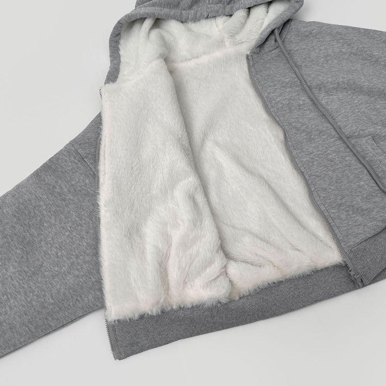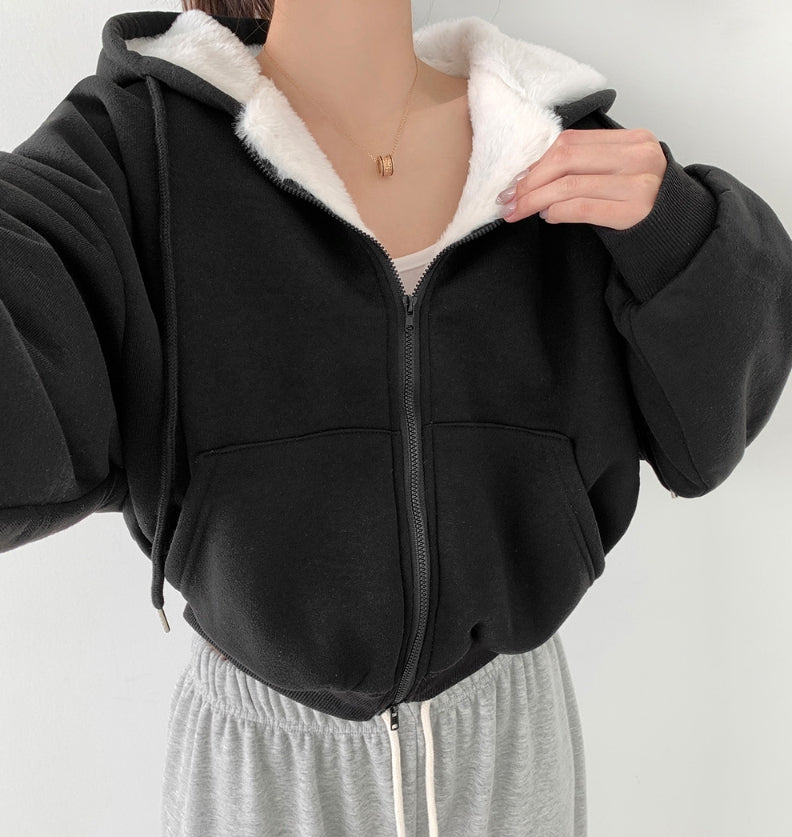 High Quality Full Mink Boa Fur Lining Thick Two-Way Crop Hood Zip-Up