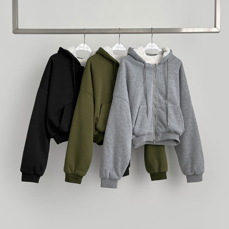 ハイクオリティフルミンクボアファーライニングシックツーウェイクロップフードジップアップ