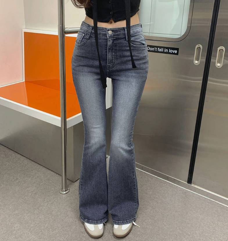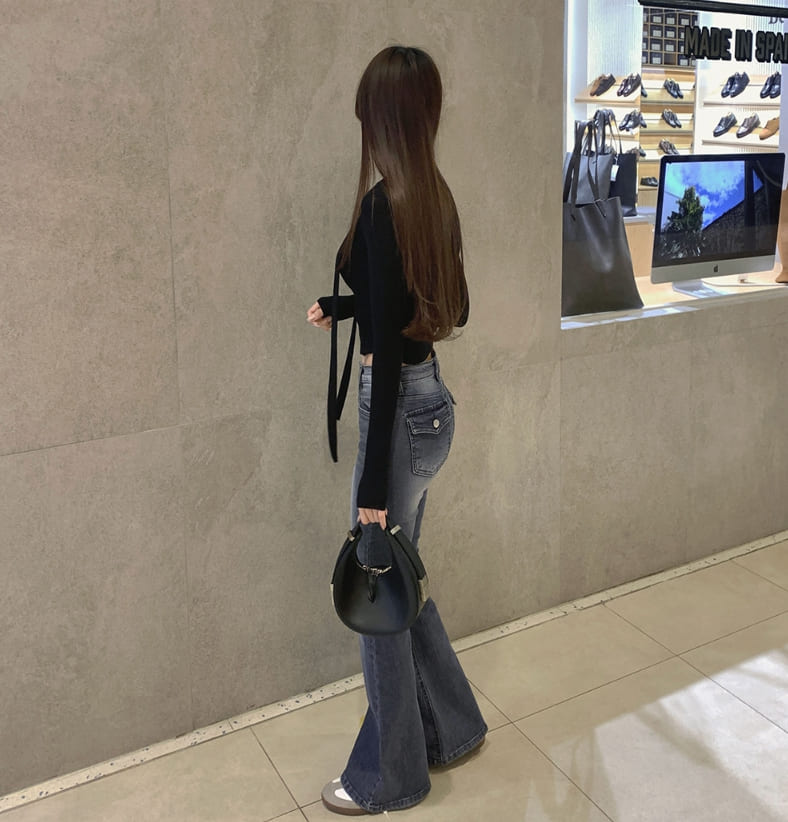 ヒップパッドバックポケット刺繍スリムブーツカットスパンデニムパンツ