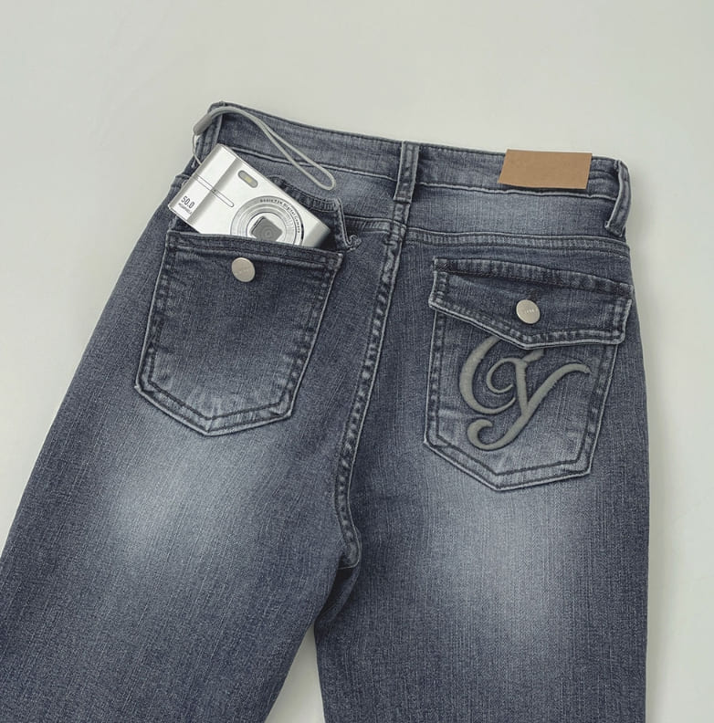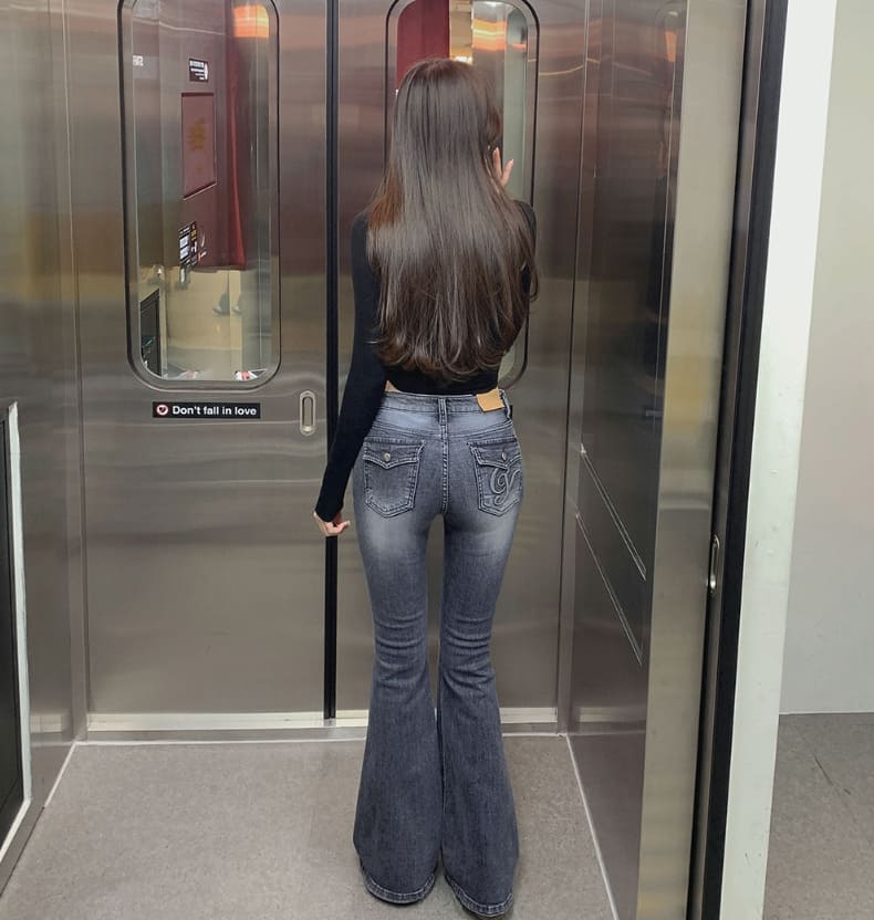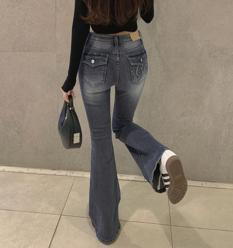 Hip Pad Back Pocket Embroidery Slim Bootcut Span Denim Pants