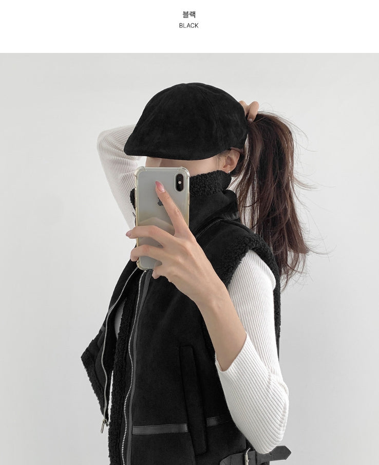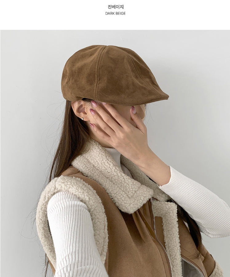 ホットガール無地スエードシンプルハンチングキャップ帽子