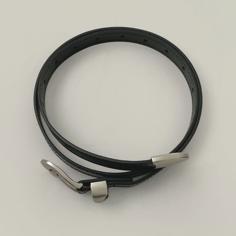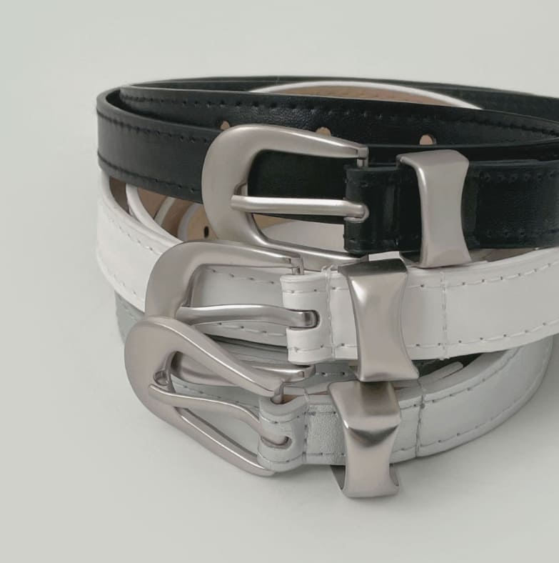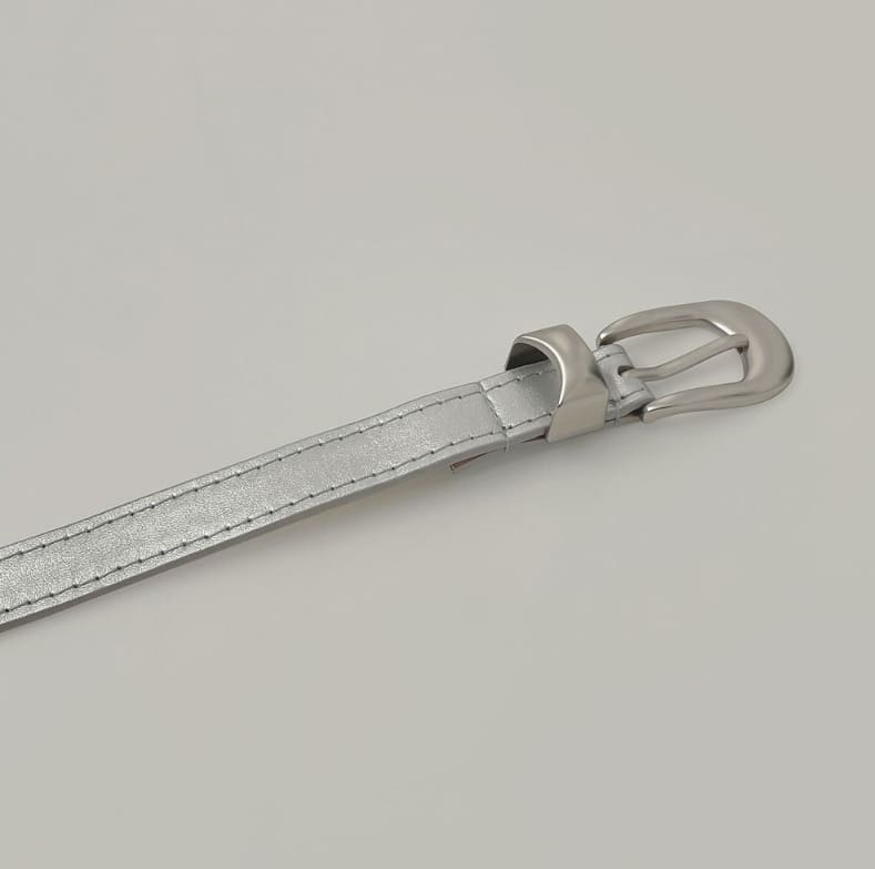 Leather Matte Silver Buckle Belt
