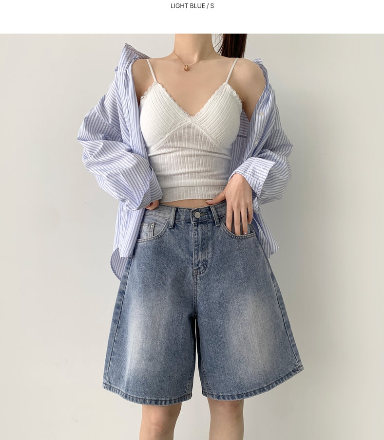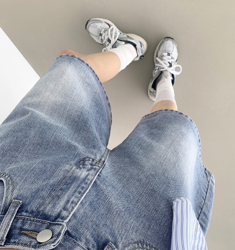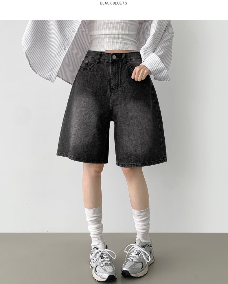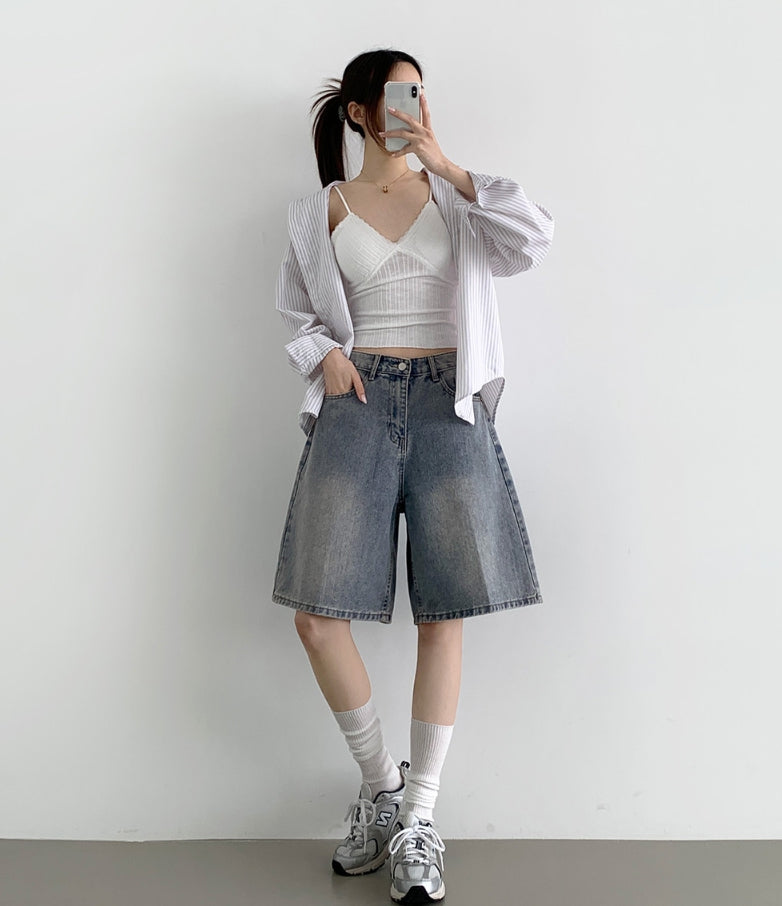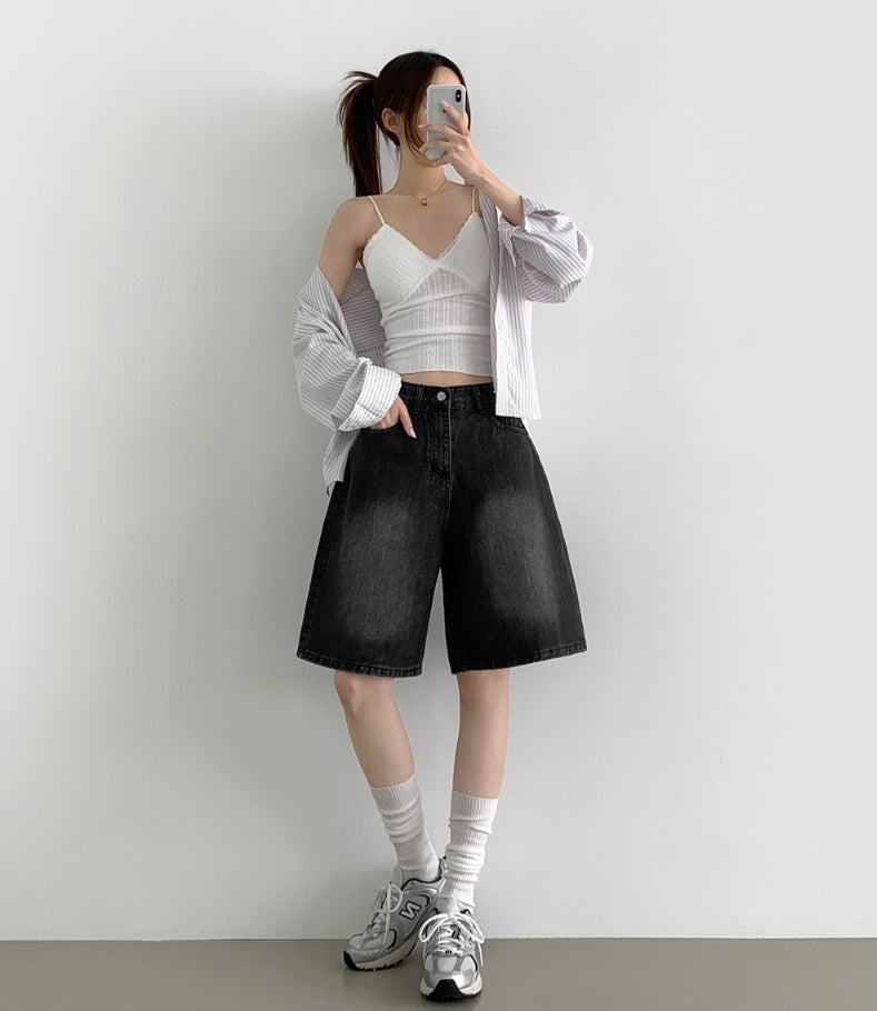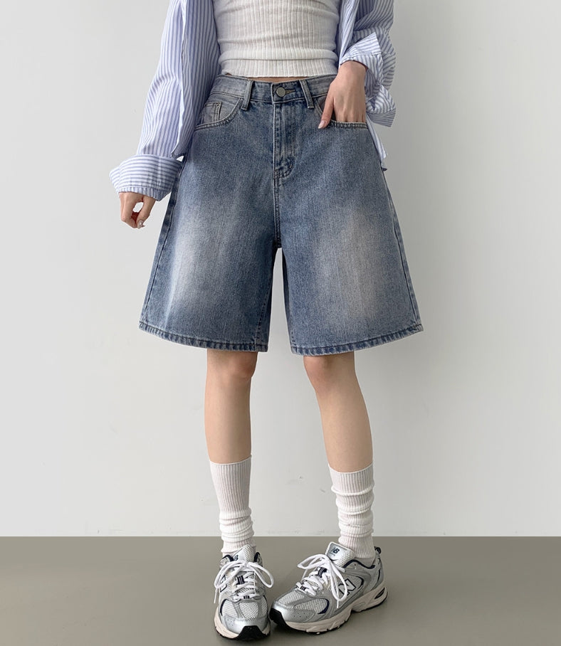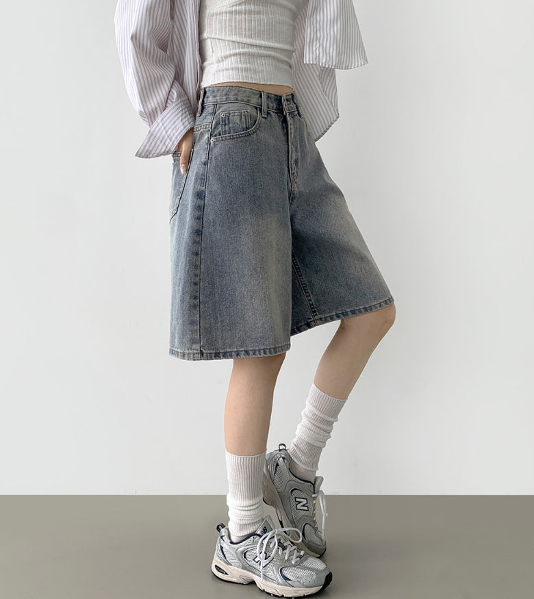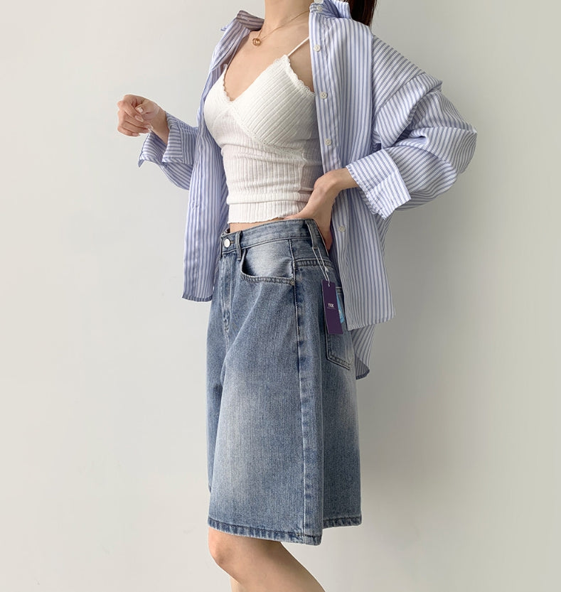 Loose Bermuda Thigh Cover Cooling Half Length Denim Shorts