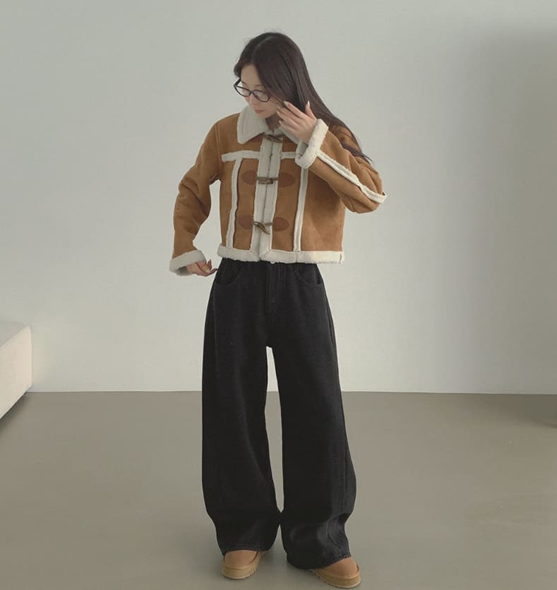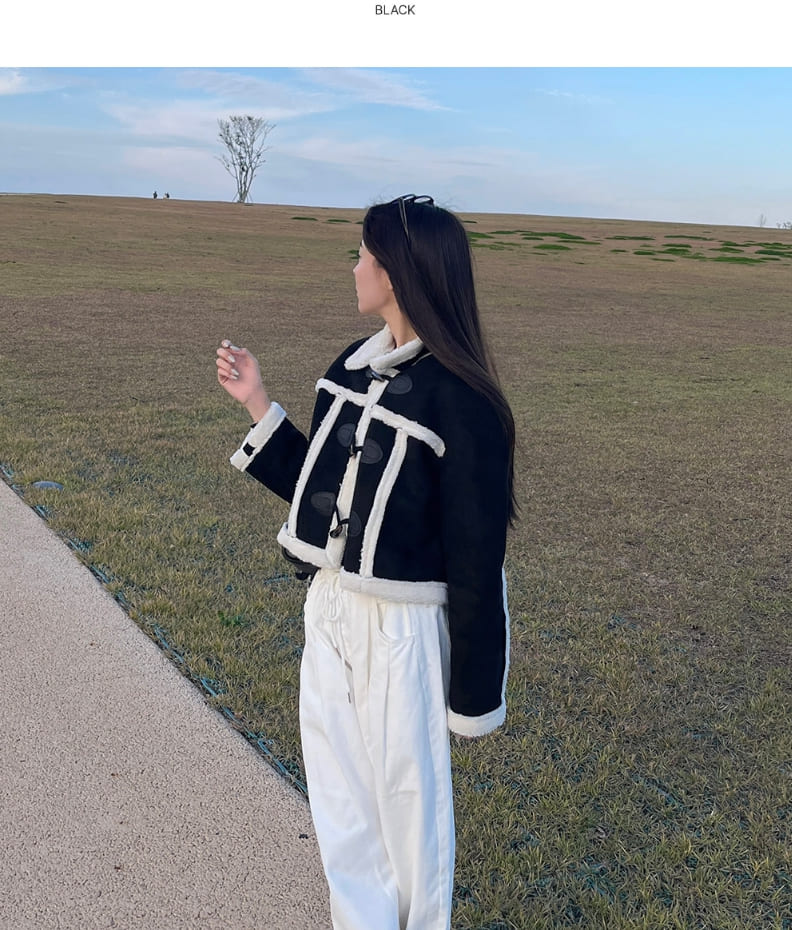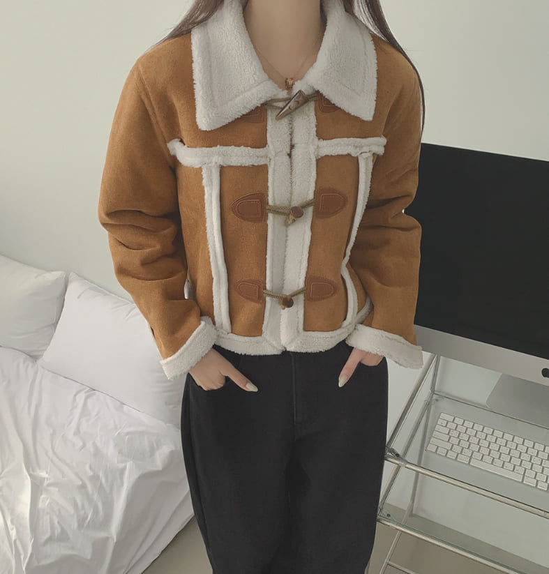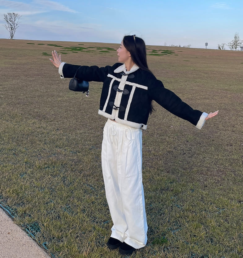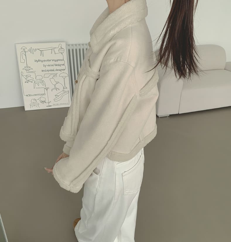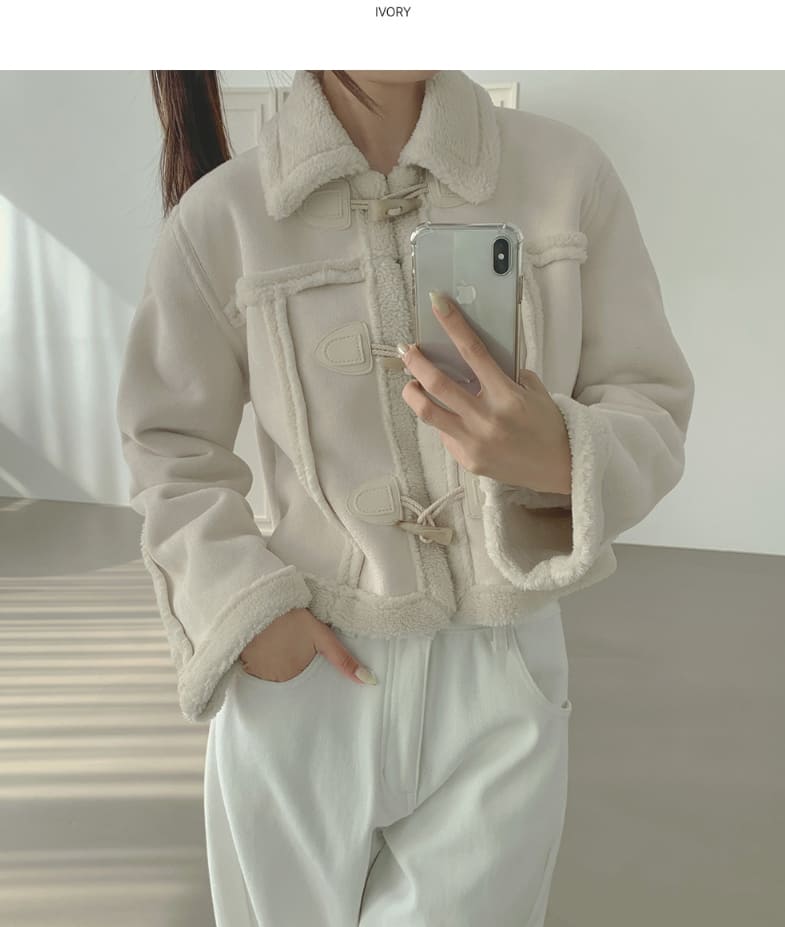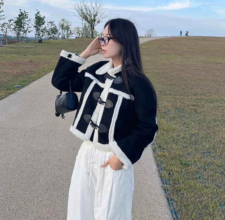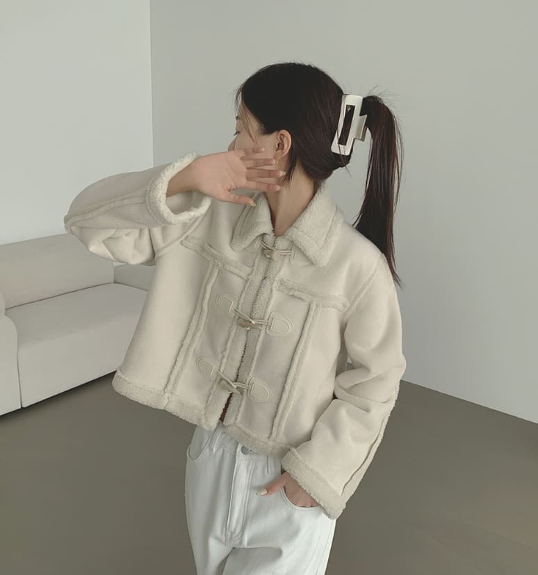 ラブリーカジュアルクロップダッフルフルファームートン