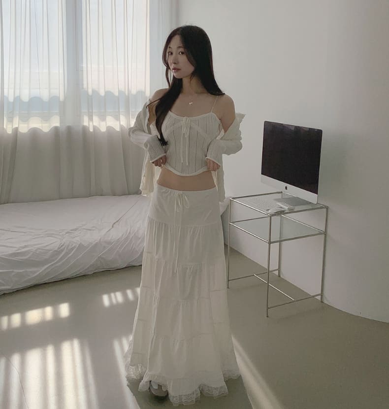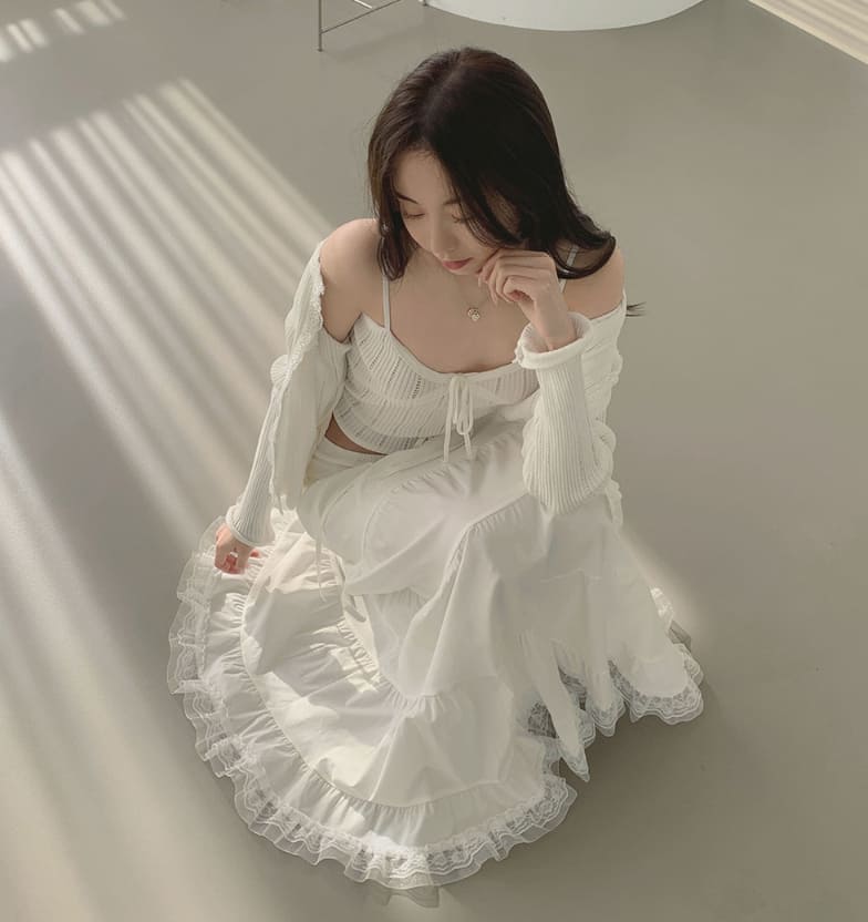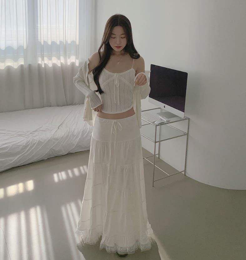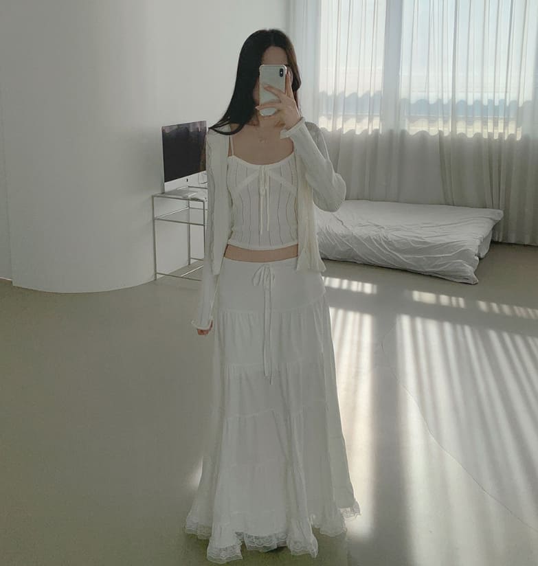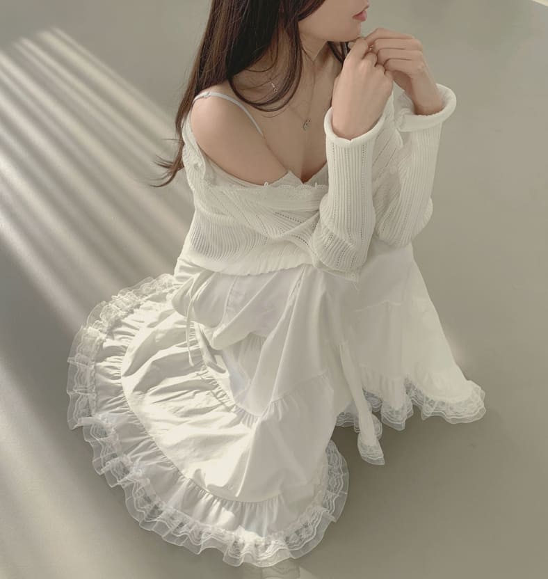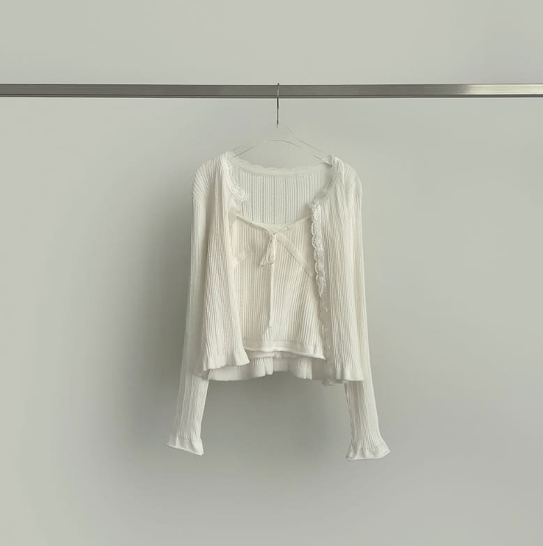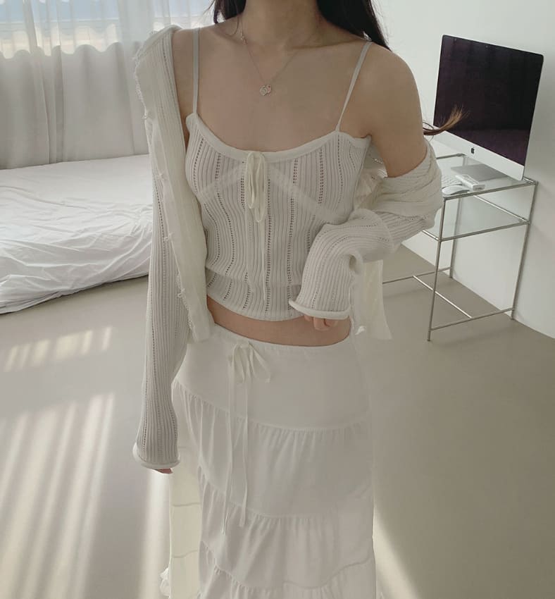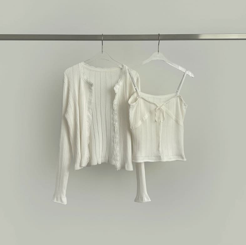 ラブリーレースリボンパンチングキャミソールカーディガンセット