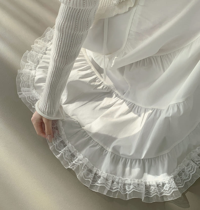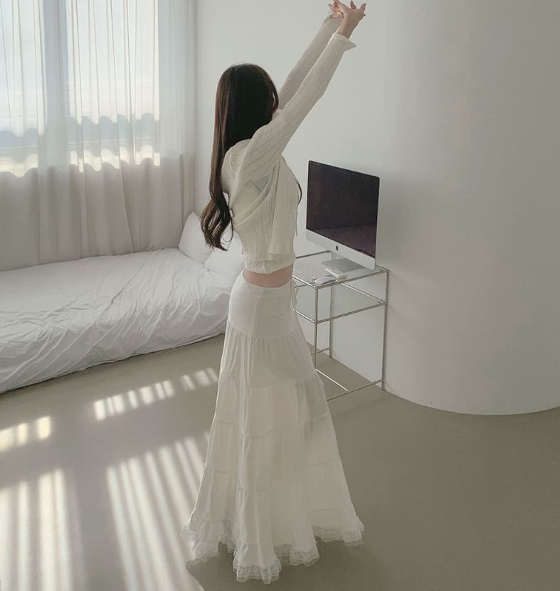Lovely Lace Ribbon Punching Sleeveless Cardigan Set