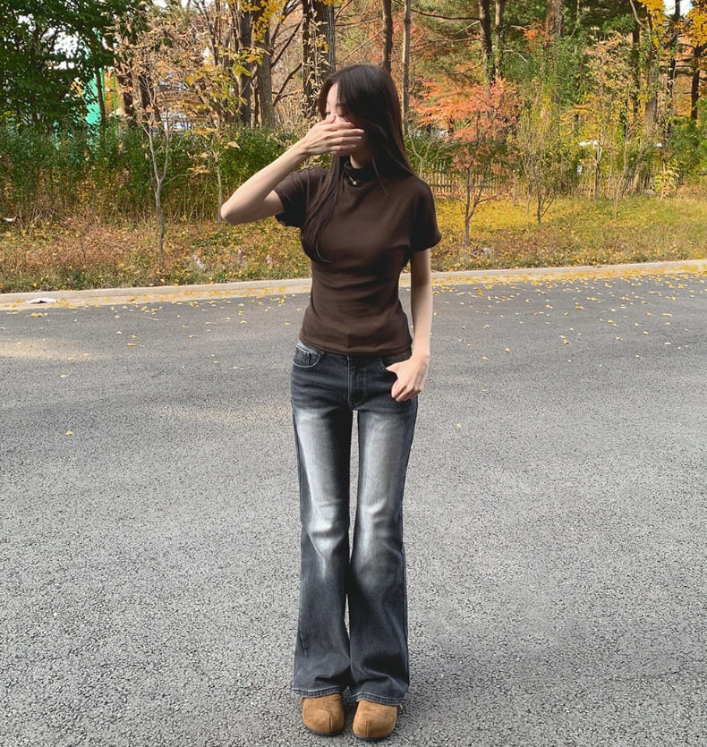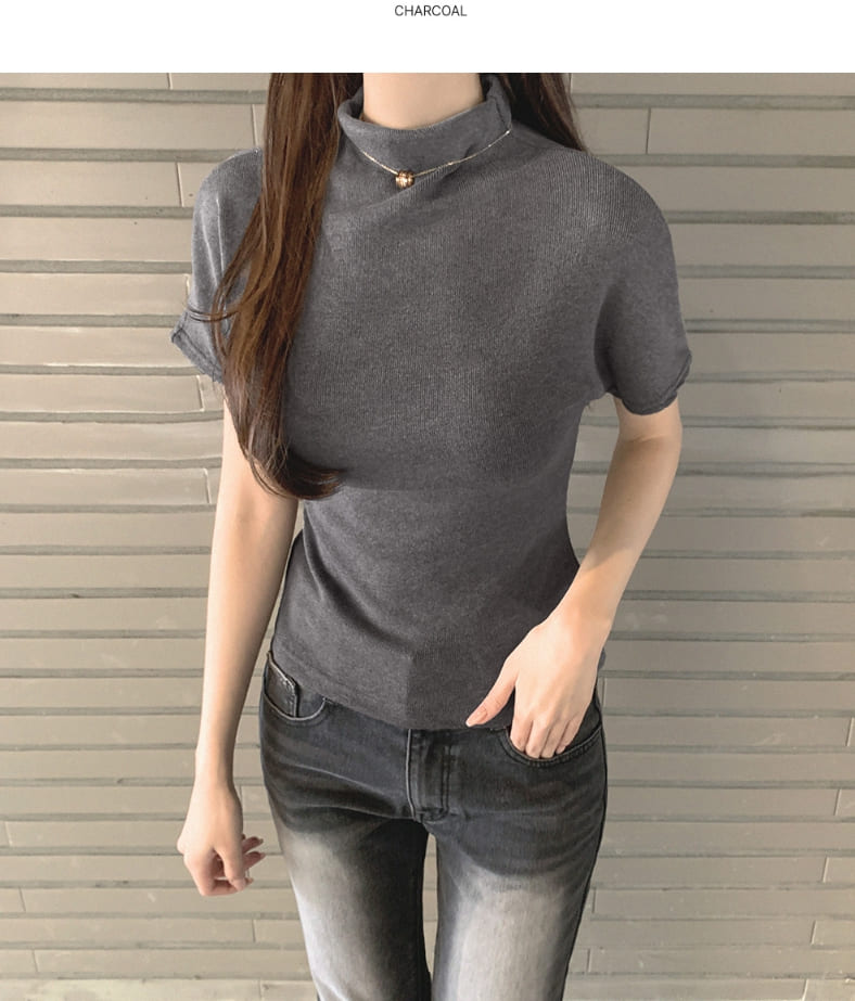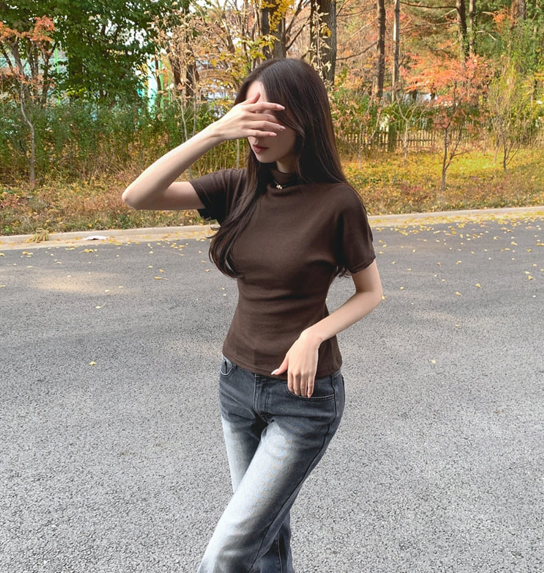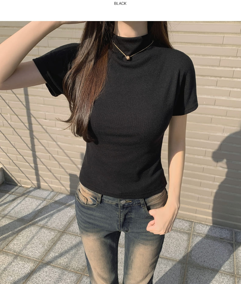 Luxurious Mood Half-Neck Span Slim Fit Short Sleeve T-shirt