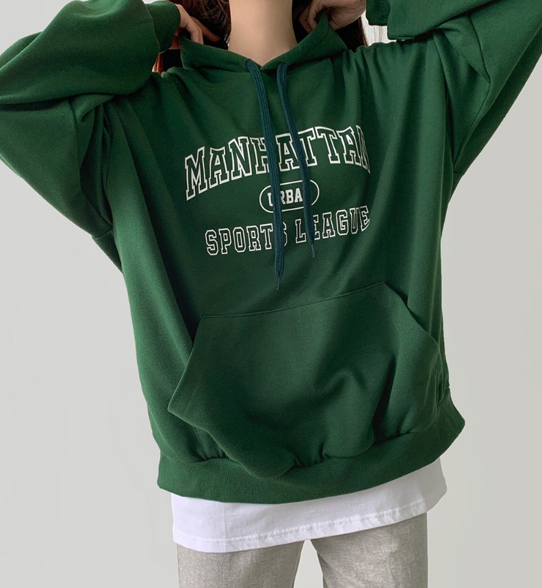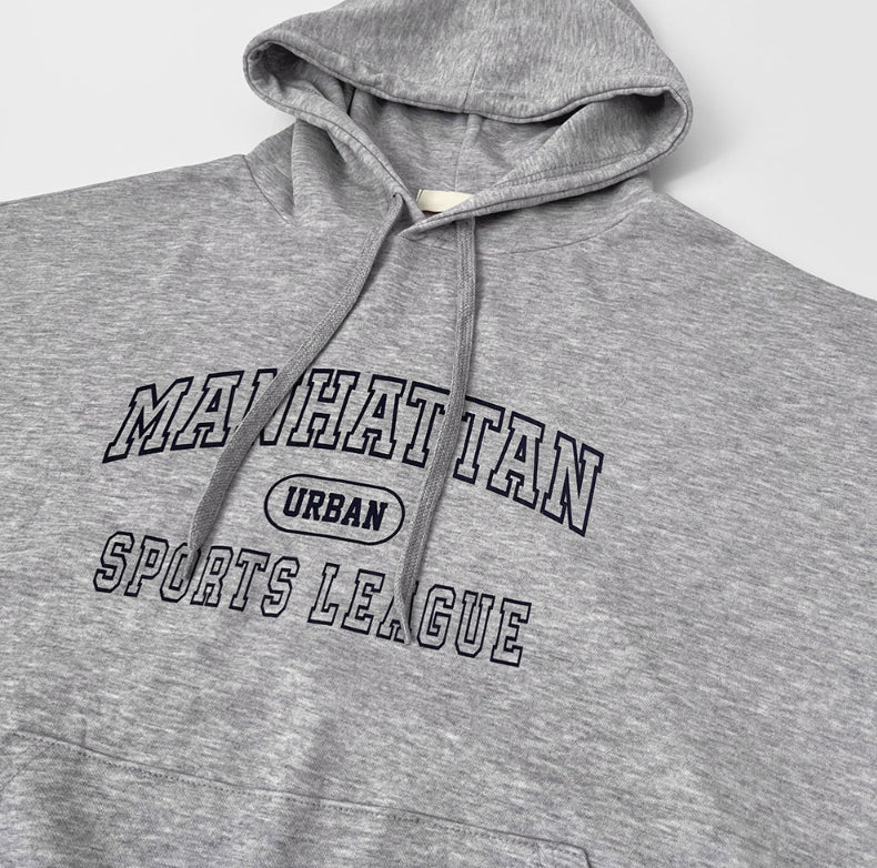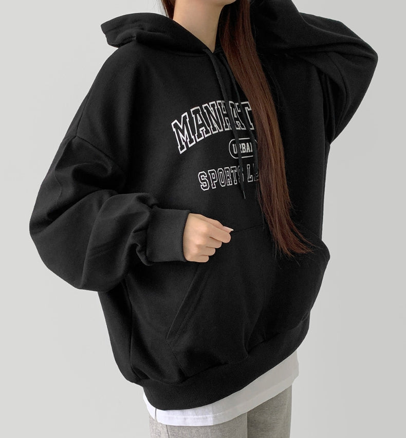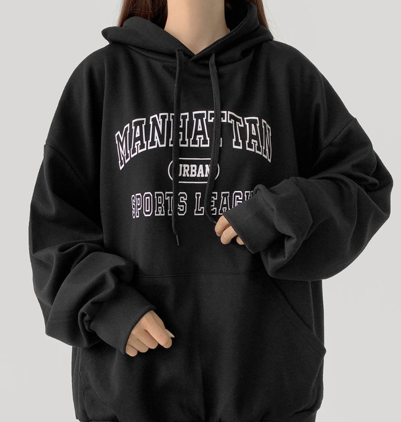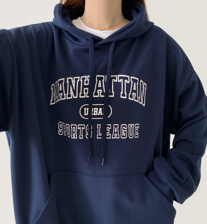 マンハッタンレタリングルーズフィット男女兼用軽量フードTシャツ