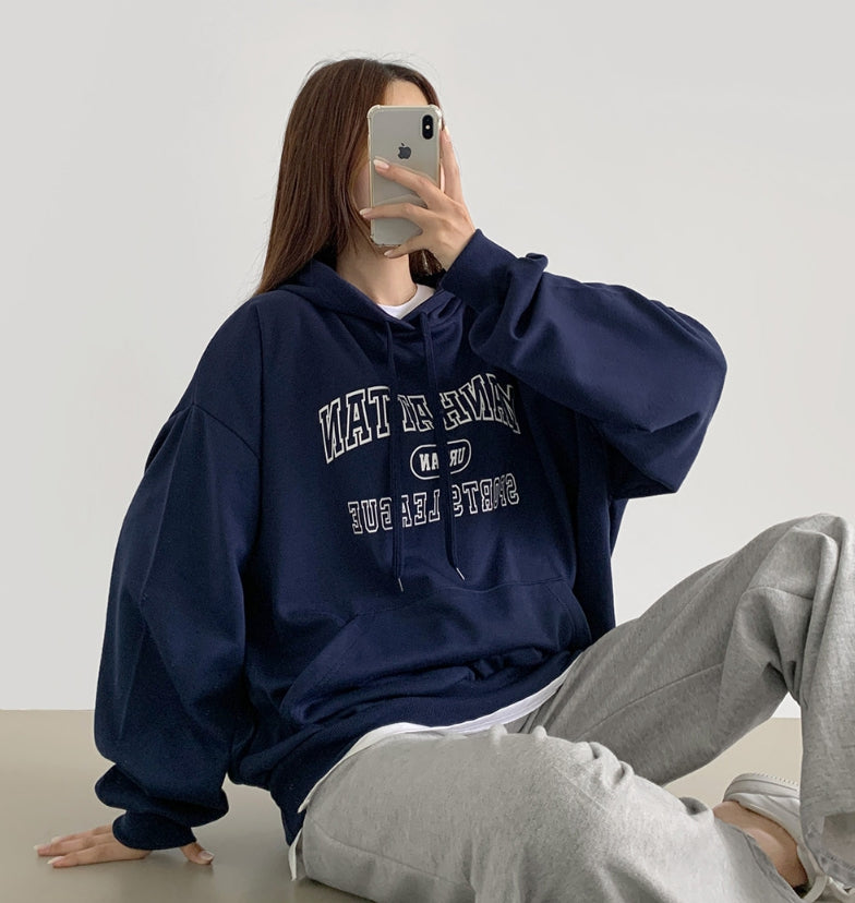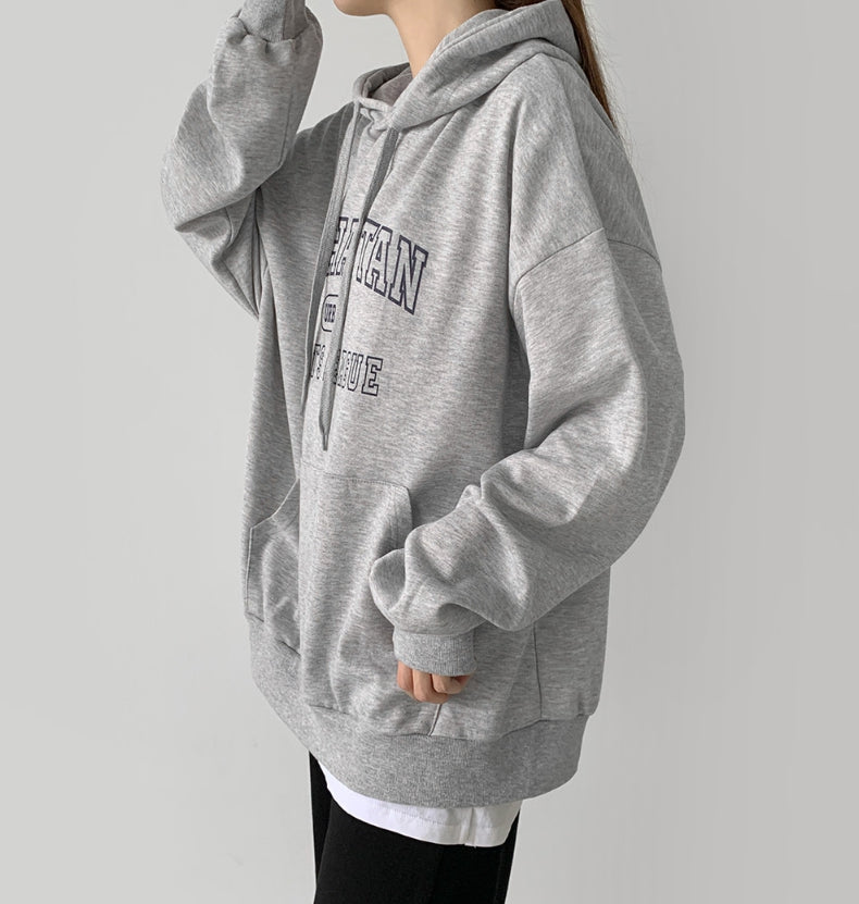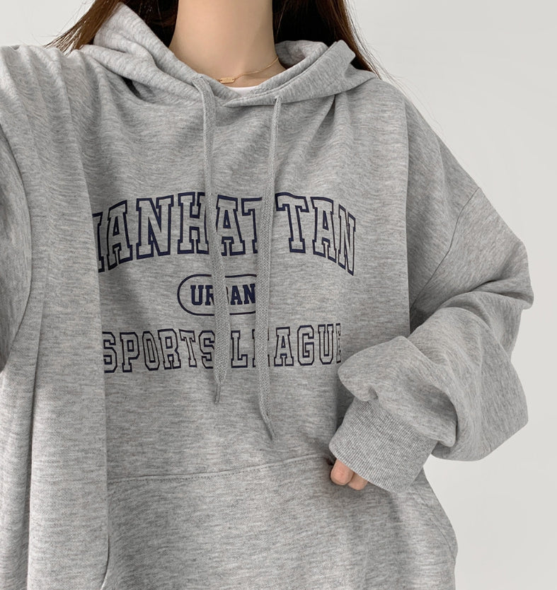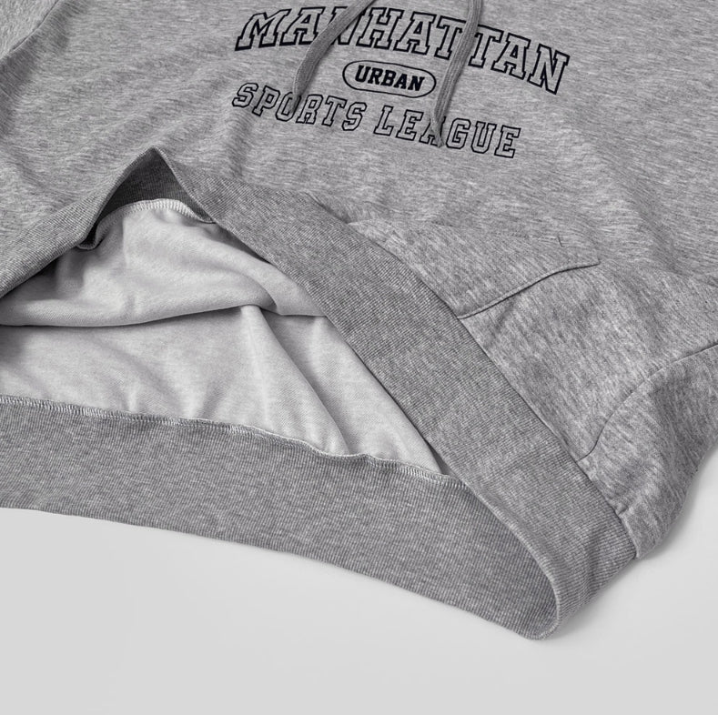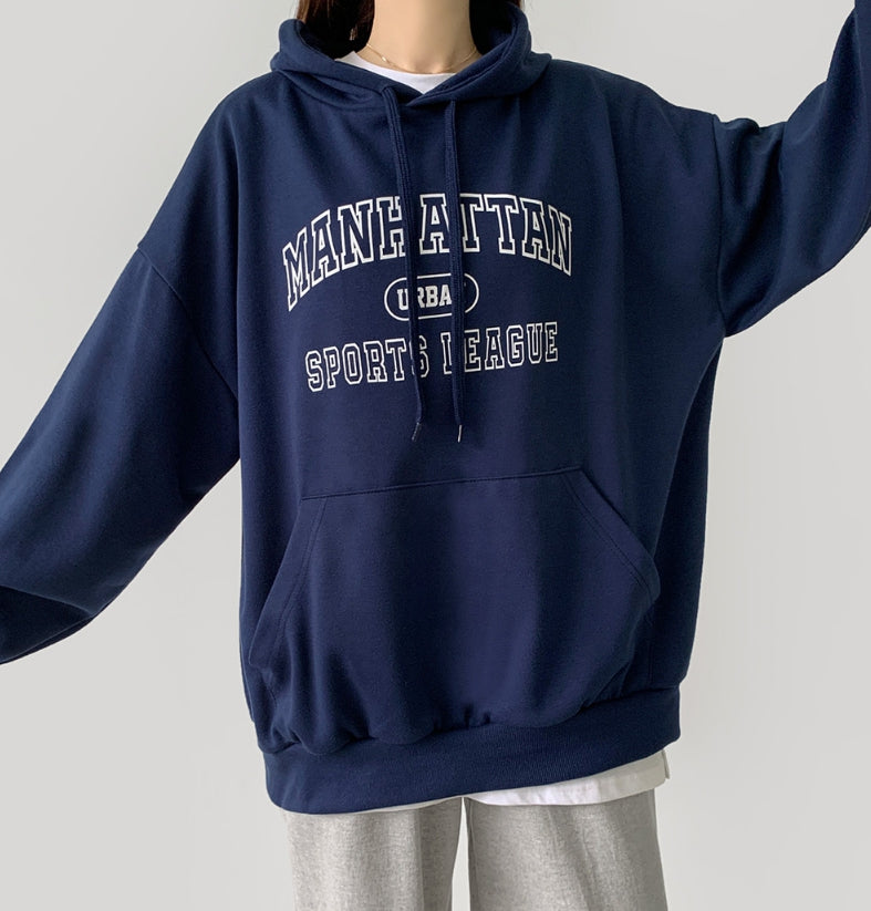 マンハッタンレタリングルーズフィット男女兼用軽量フードTシャツ
