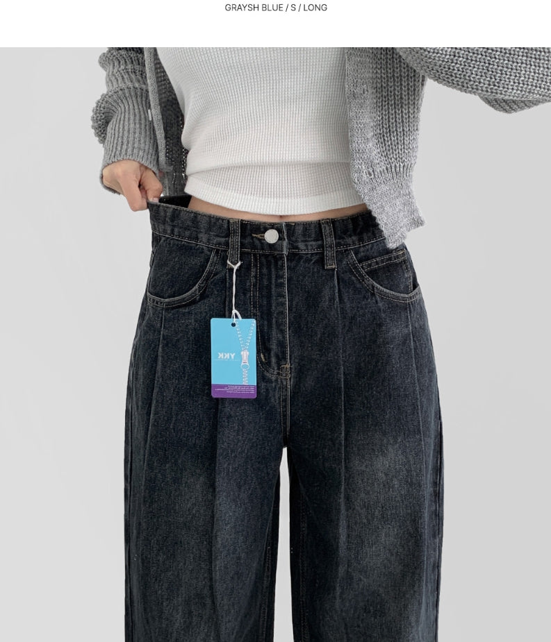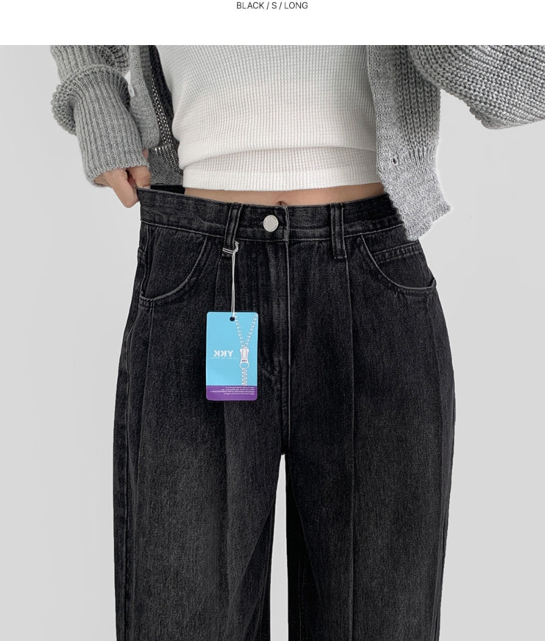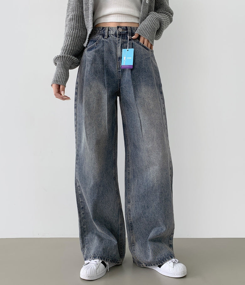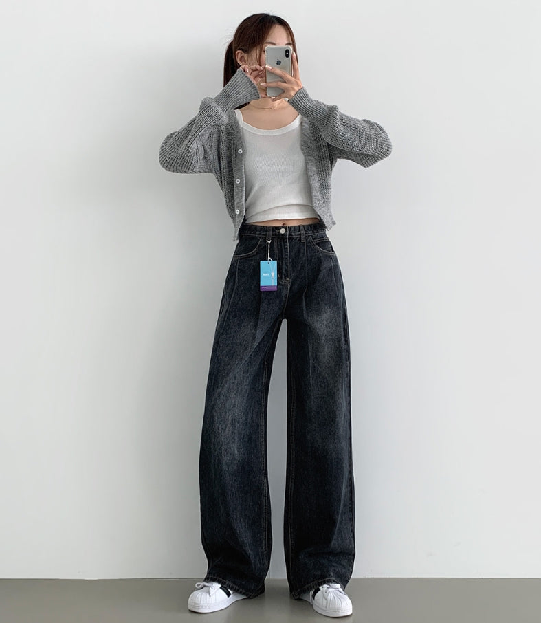 Pin Tuck Banding Casual Long Wide Washing Denim Pants