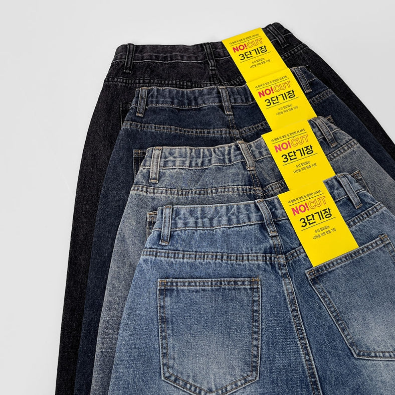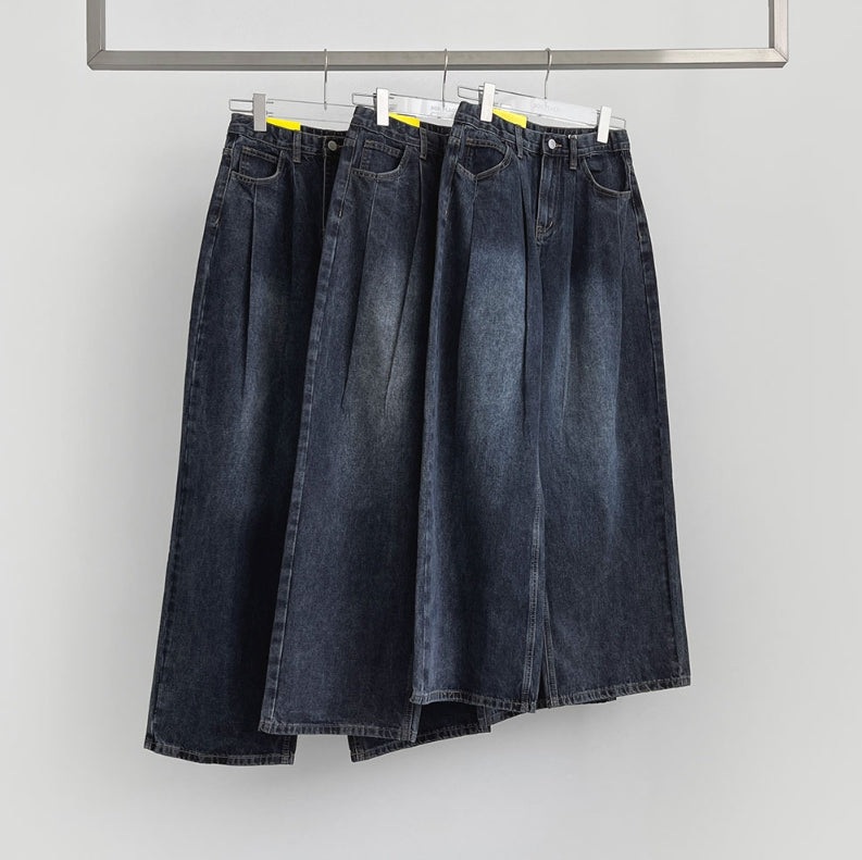 ピンタックバンディングカジュアルロングワイドウォッシングデニムパンツ