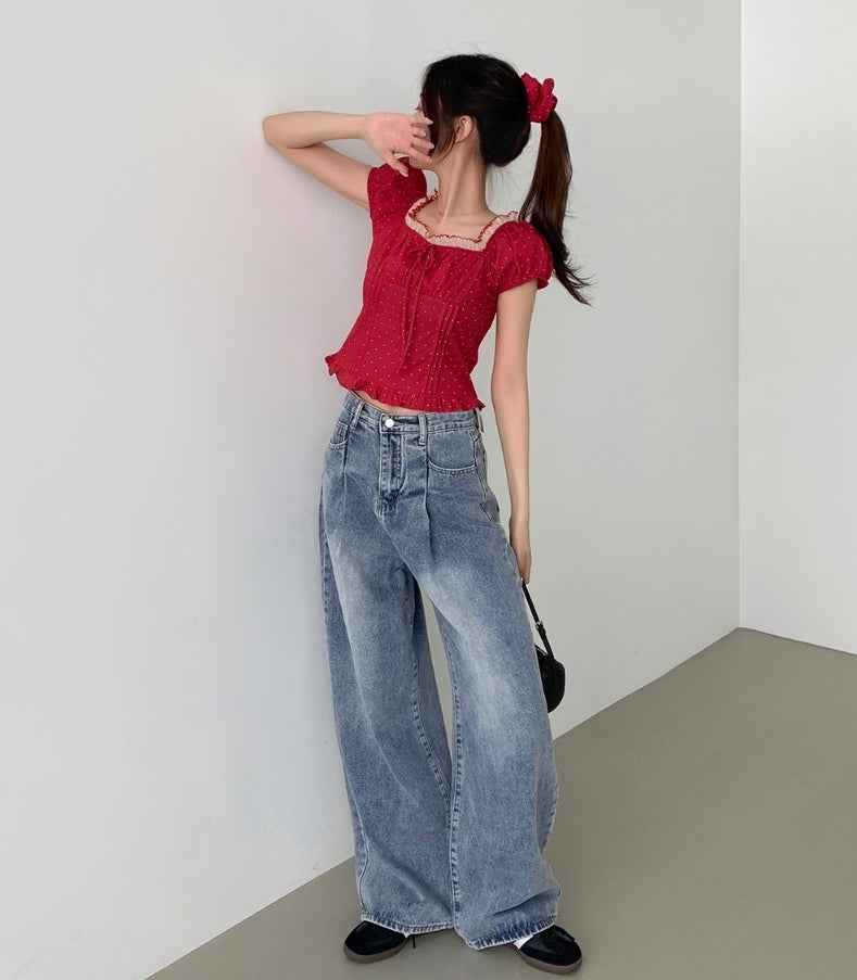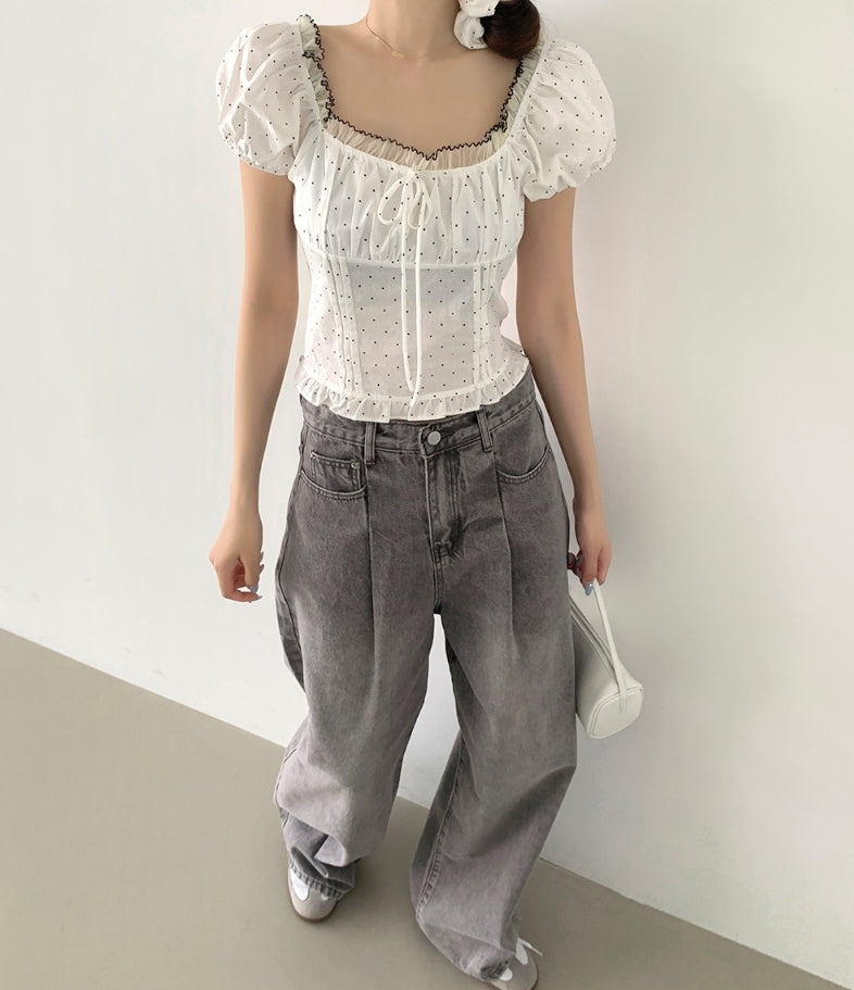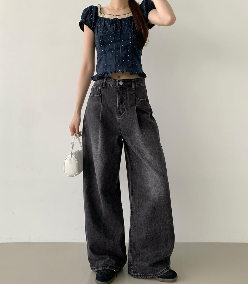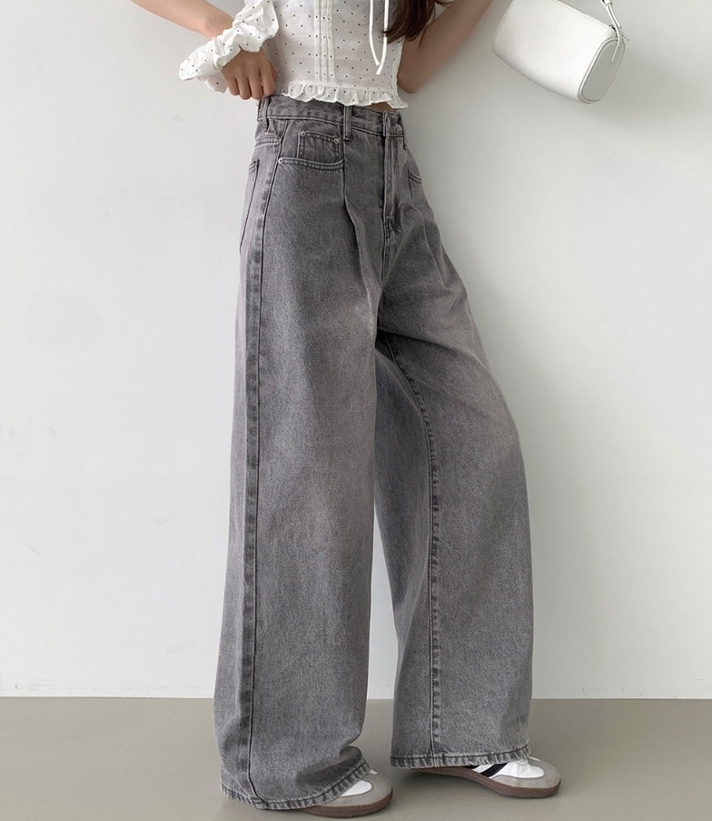 Pintuck Wide Denim Pants