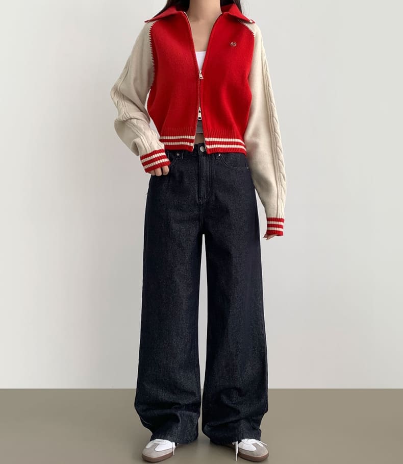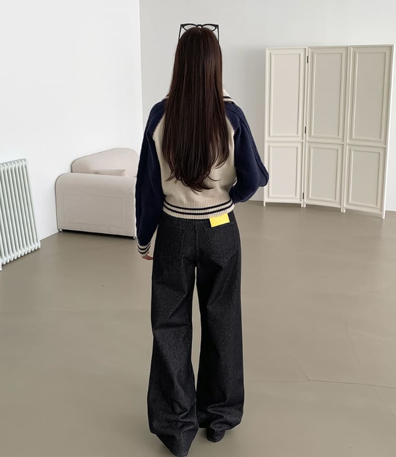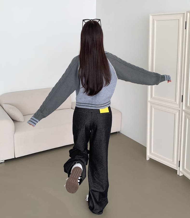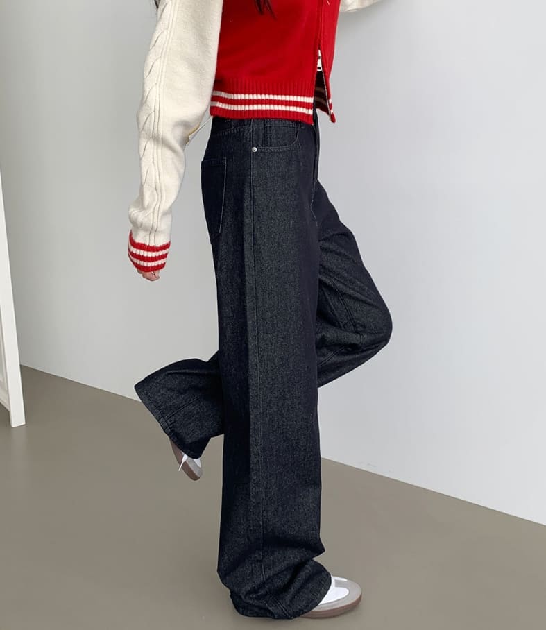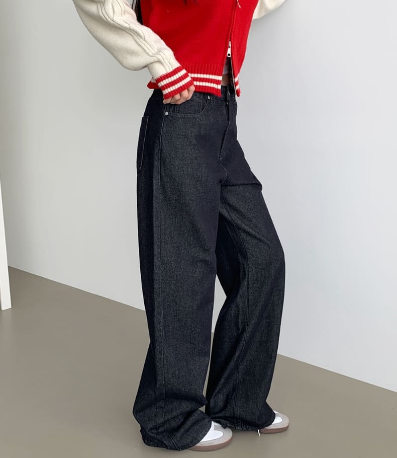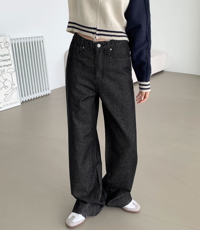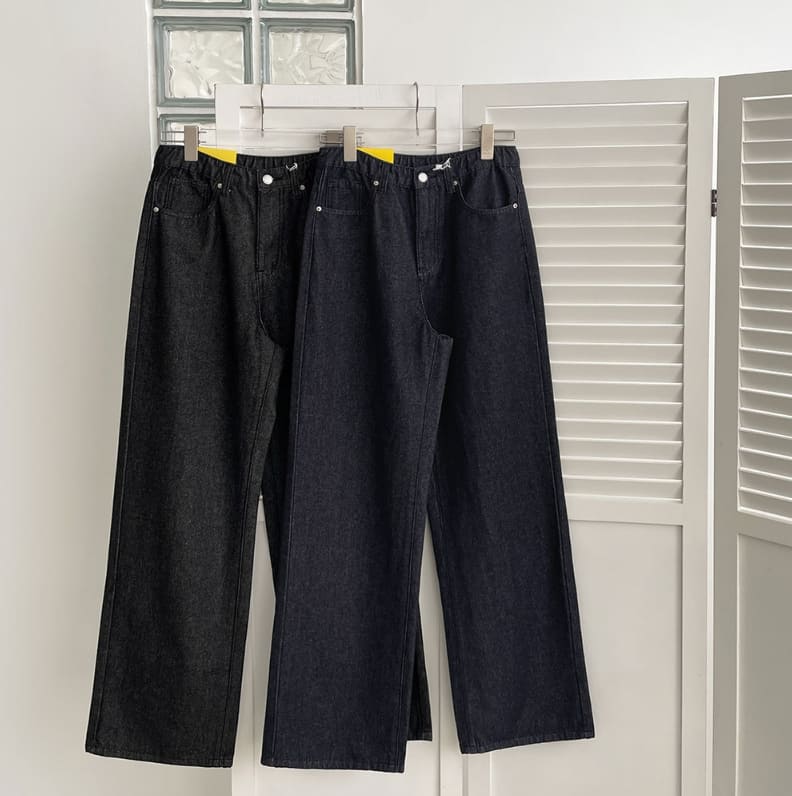 アウタムノンフェードバンディングカジュアルワイド生デニムパンツ