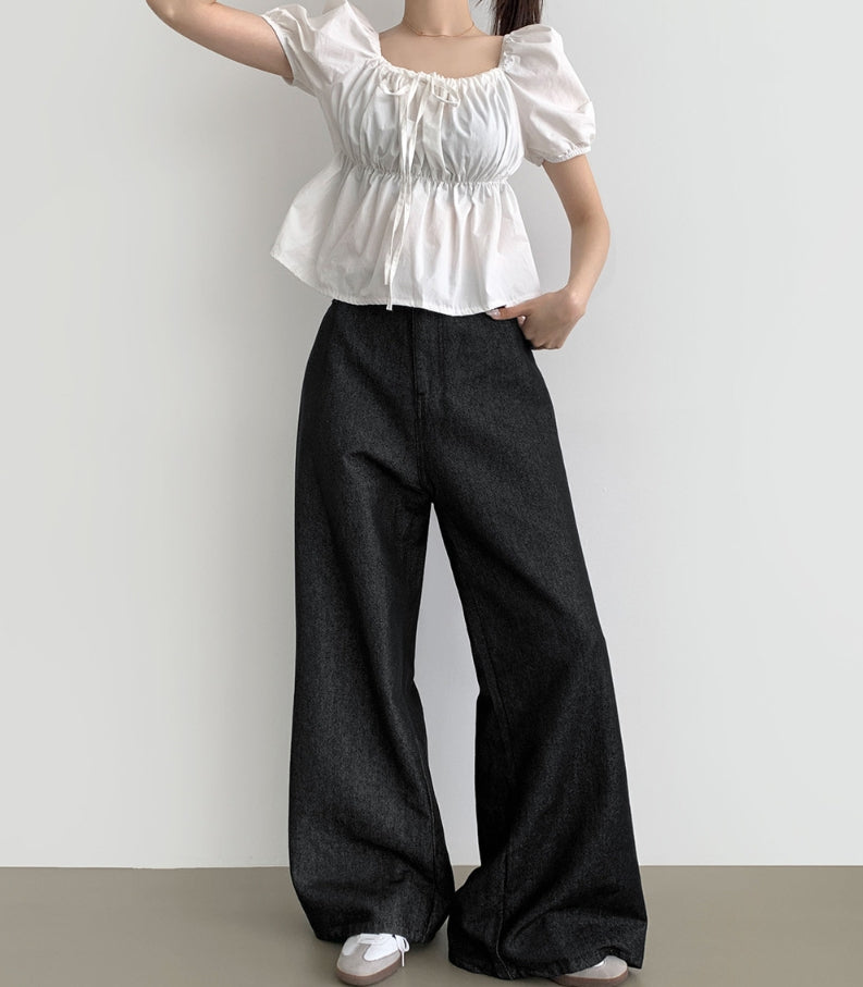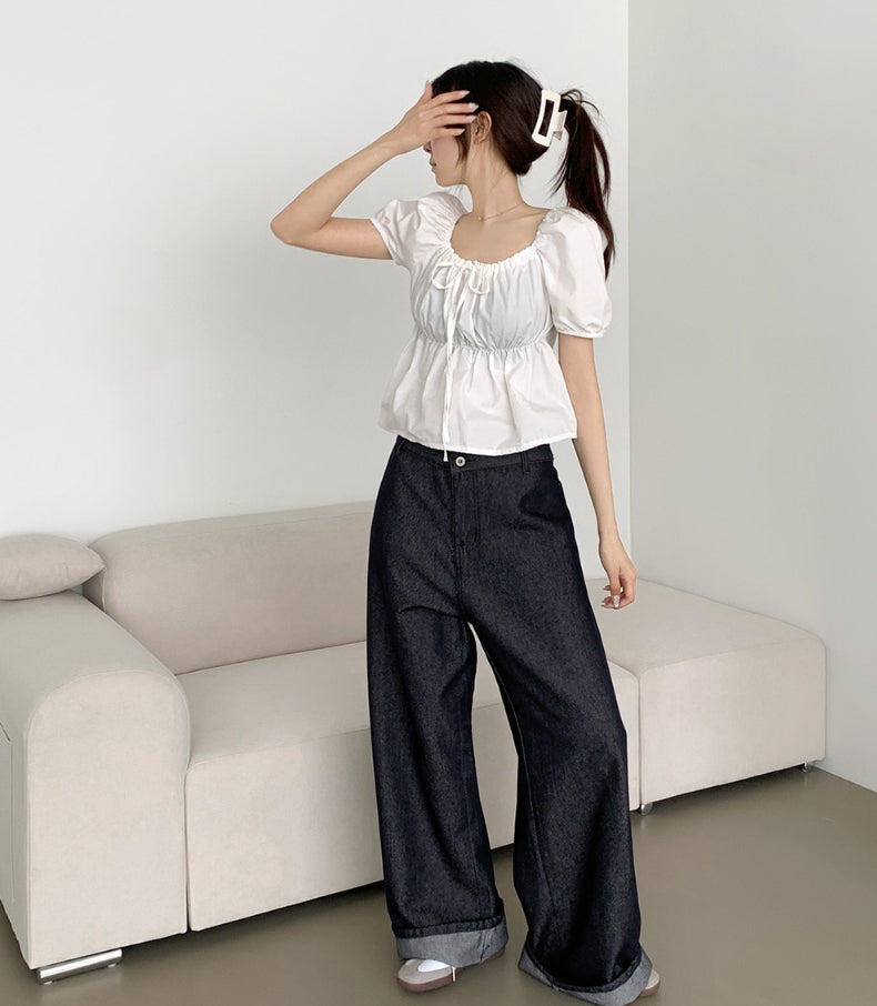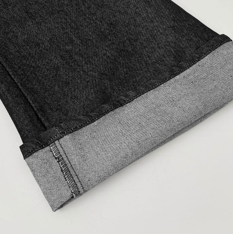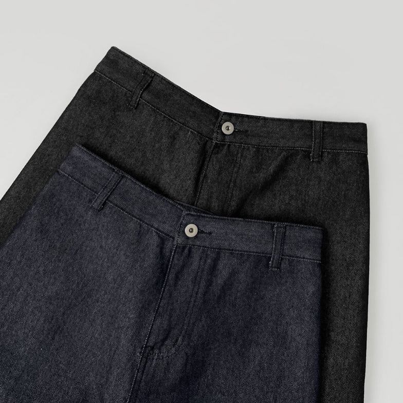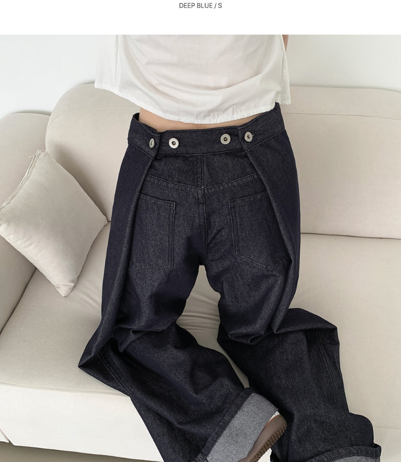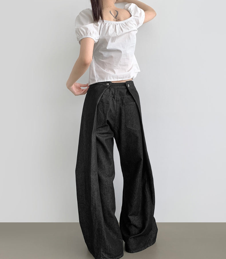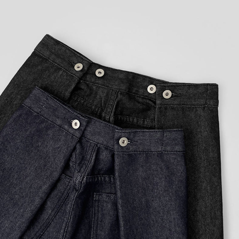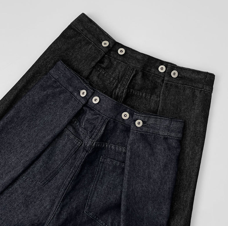 Raw back point button roll-up mega wide fit denim pants