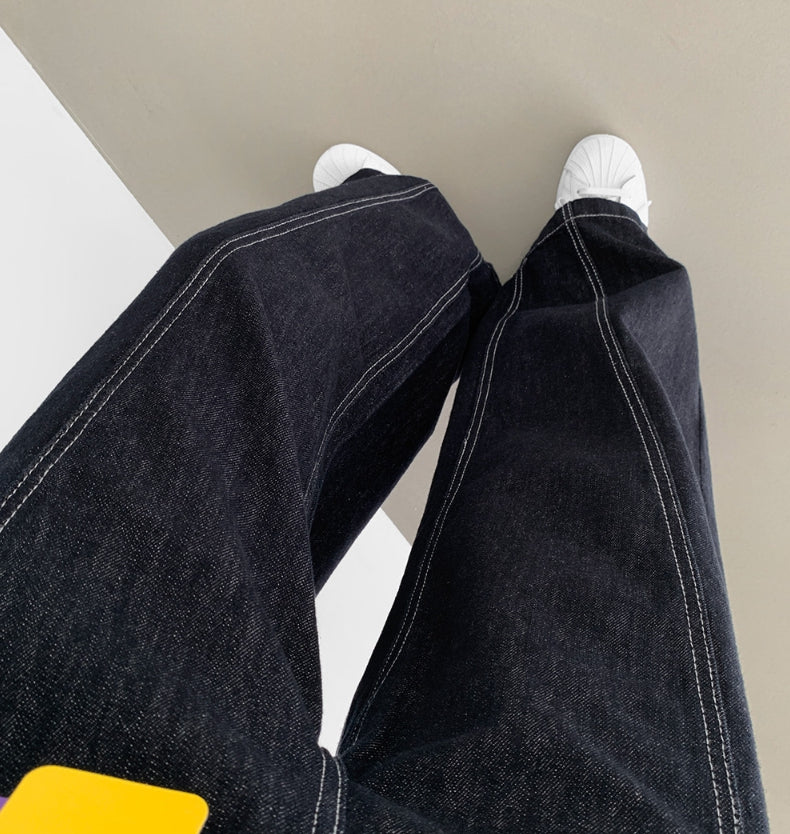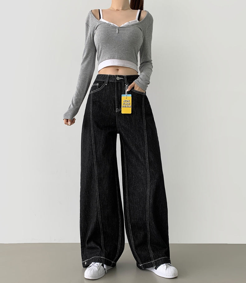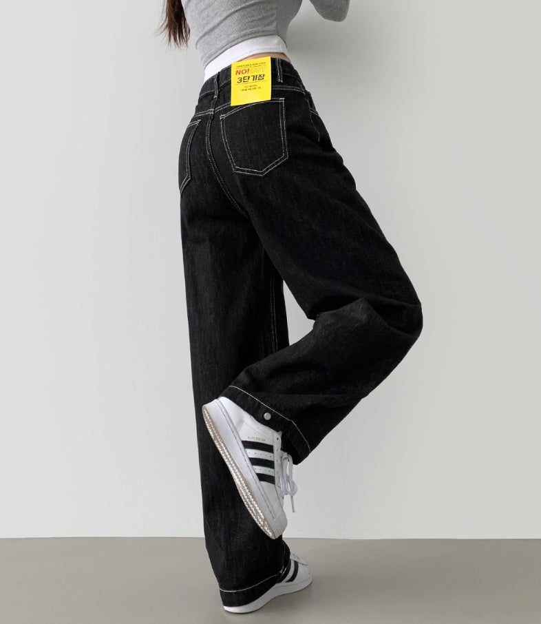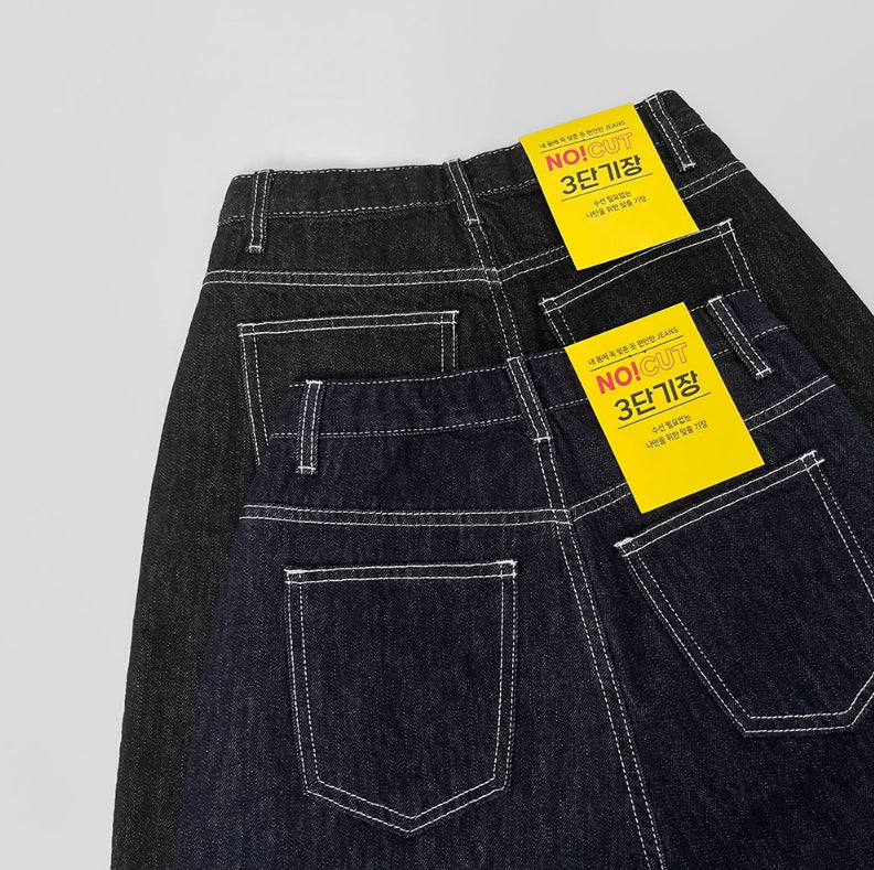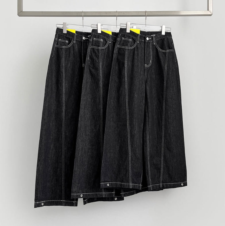 生デニムトレンディフロント斜めカットワイドフィットデニムパンツ
