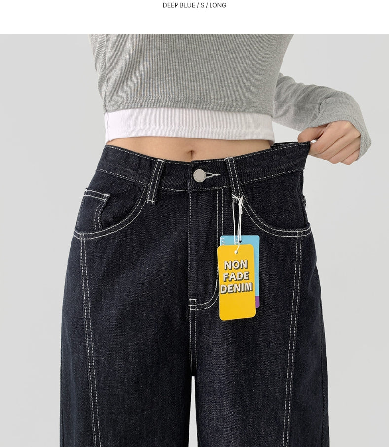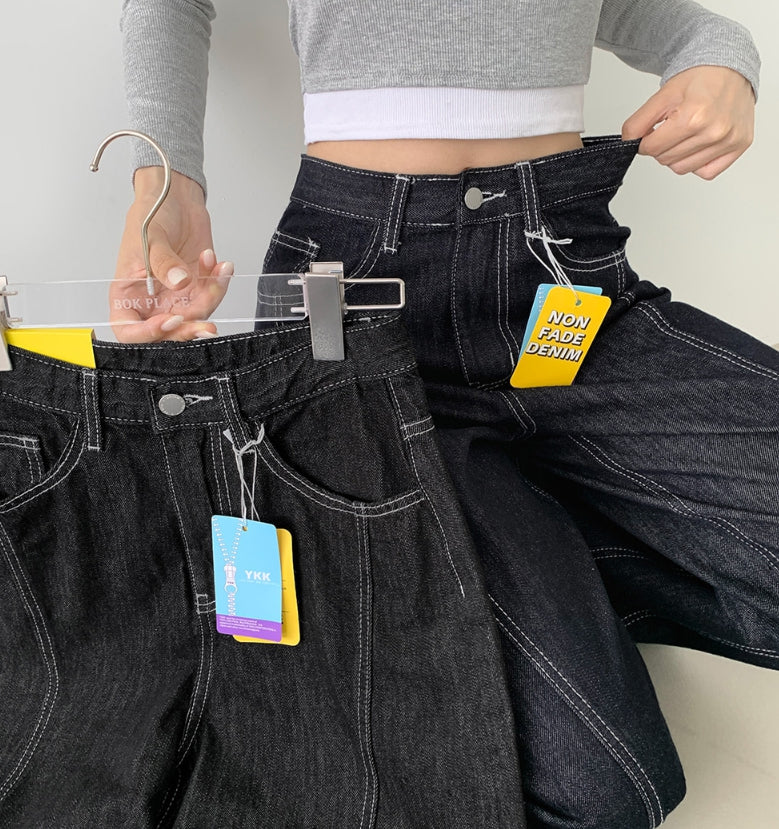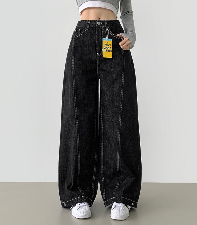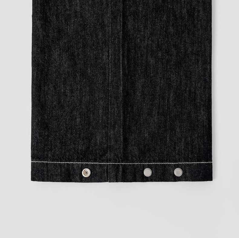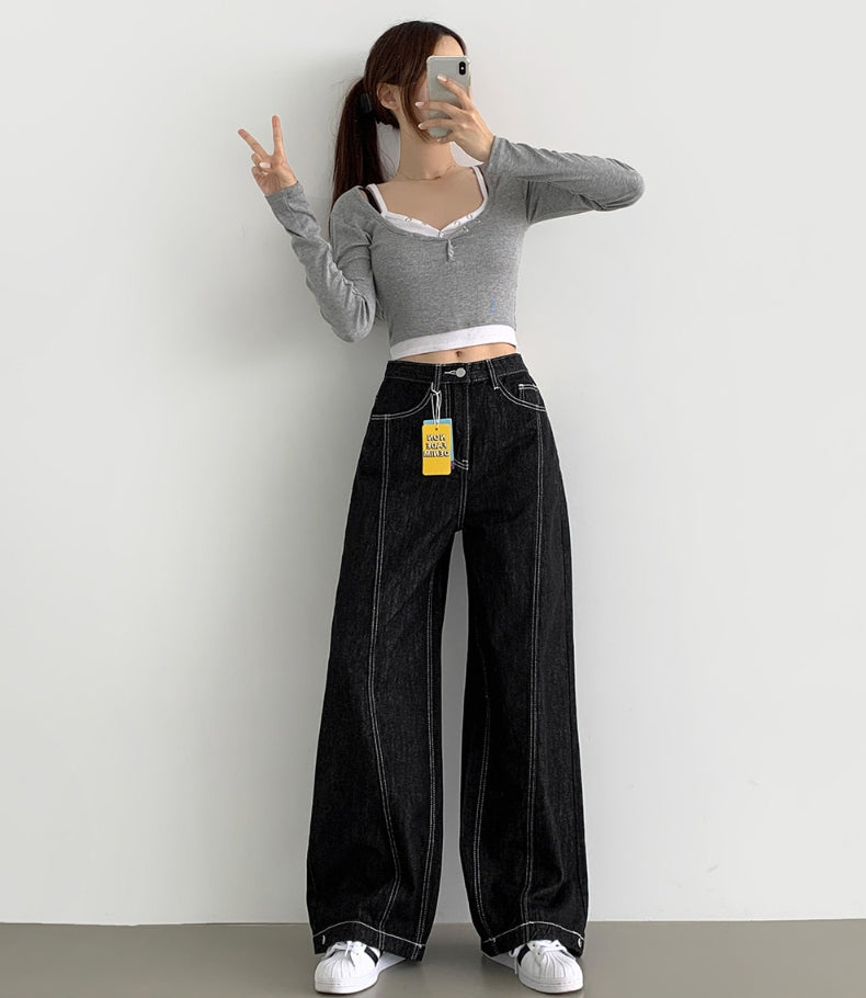 生デニムトレンディフロント斜めカットワイドフィットデニムパンツ