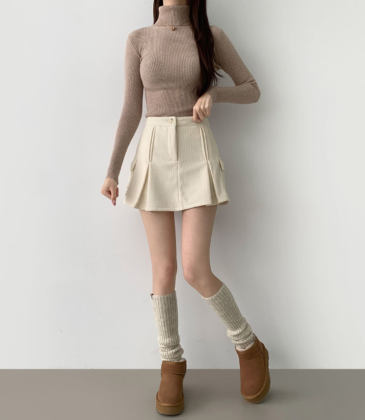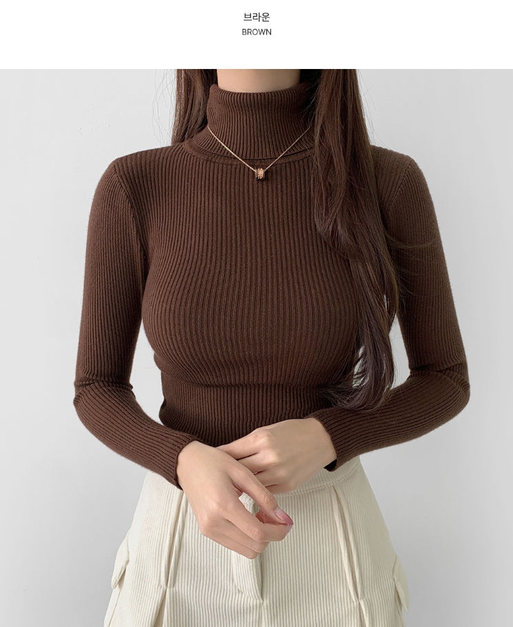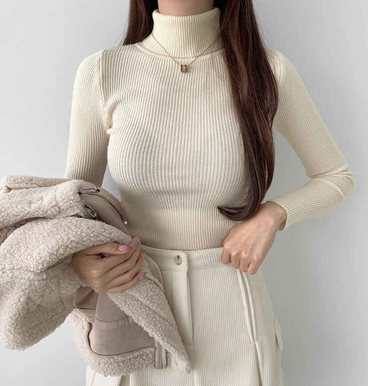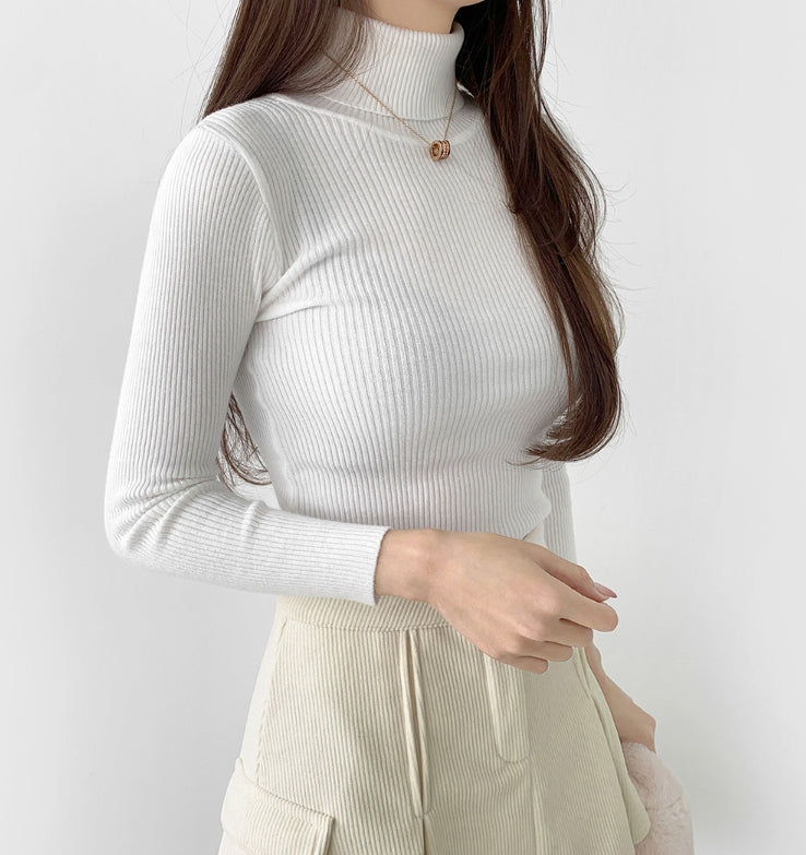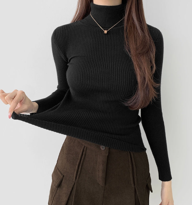 Ribbed Inner Winter Fall Neck Polar Long Sleeve T-shirt