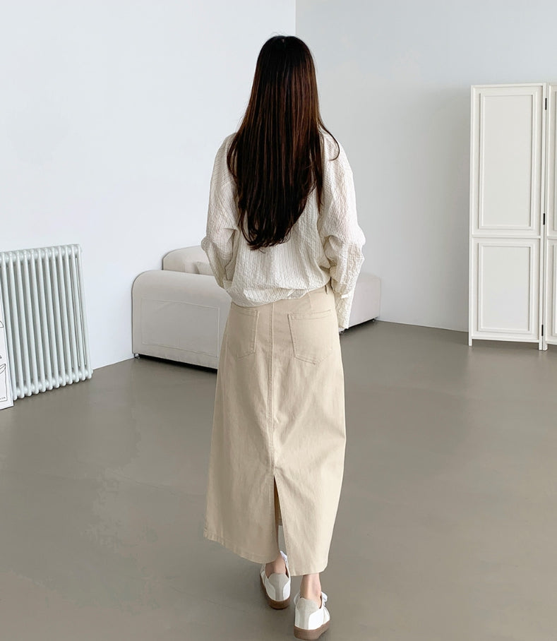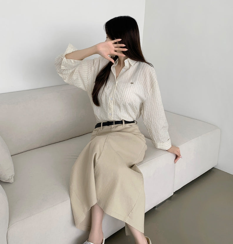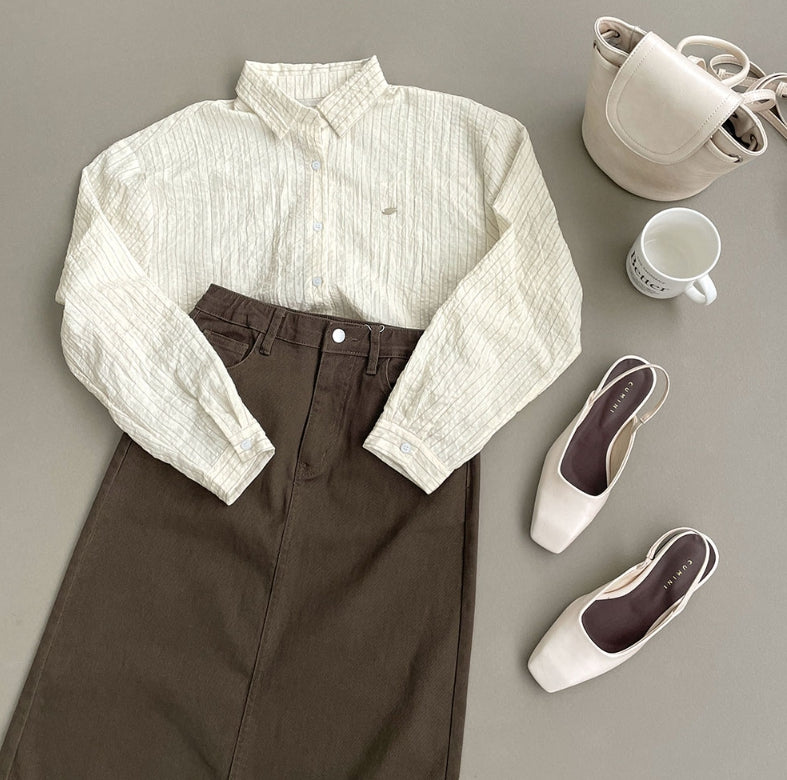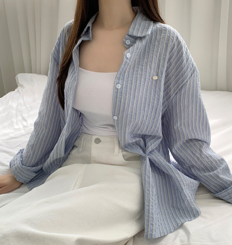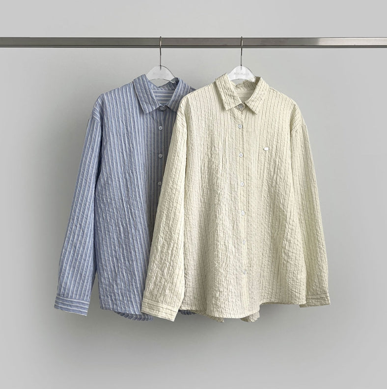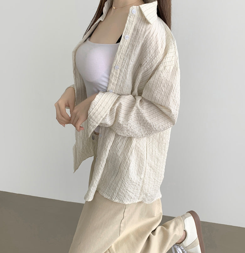 Seersucker Loose-fit Pendant Point Stripe Long Sleeve Shirt