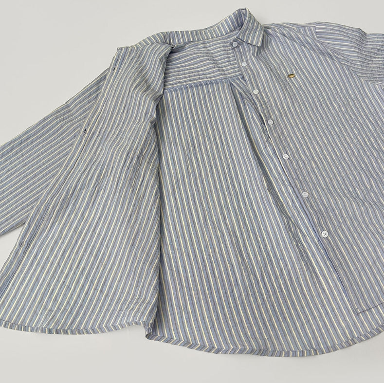 シアサッカールーズフィットペンダントポイントストライプ長袖シャツ