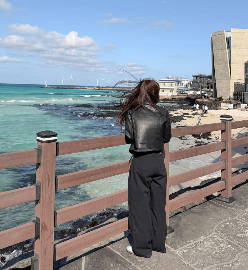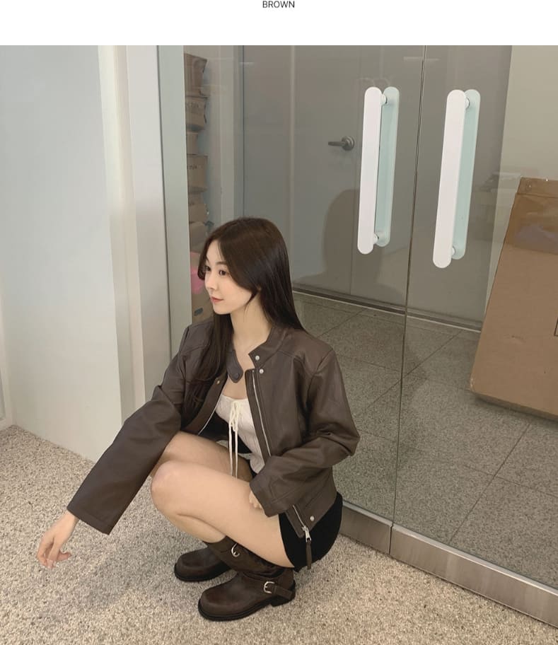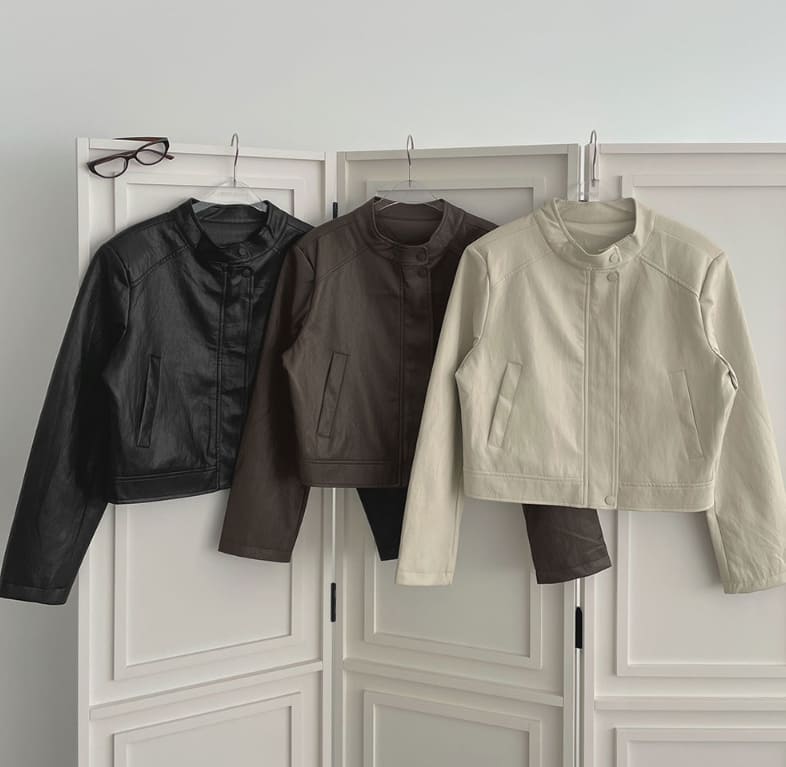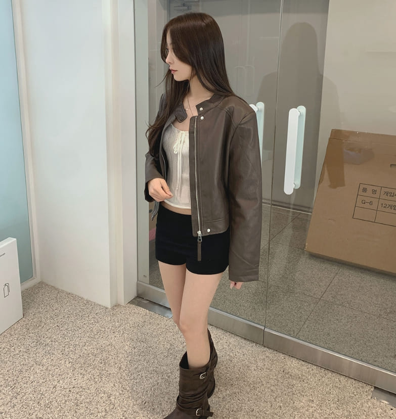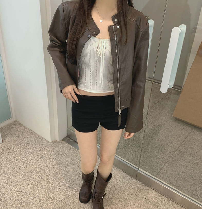 Semi crop leather blouson rider jacket