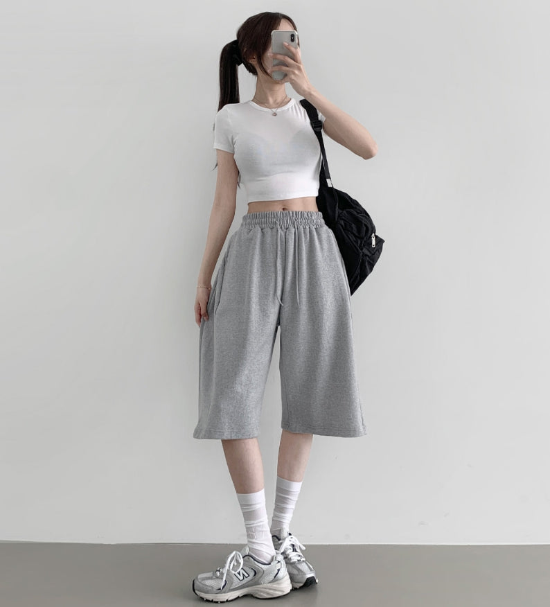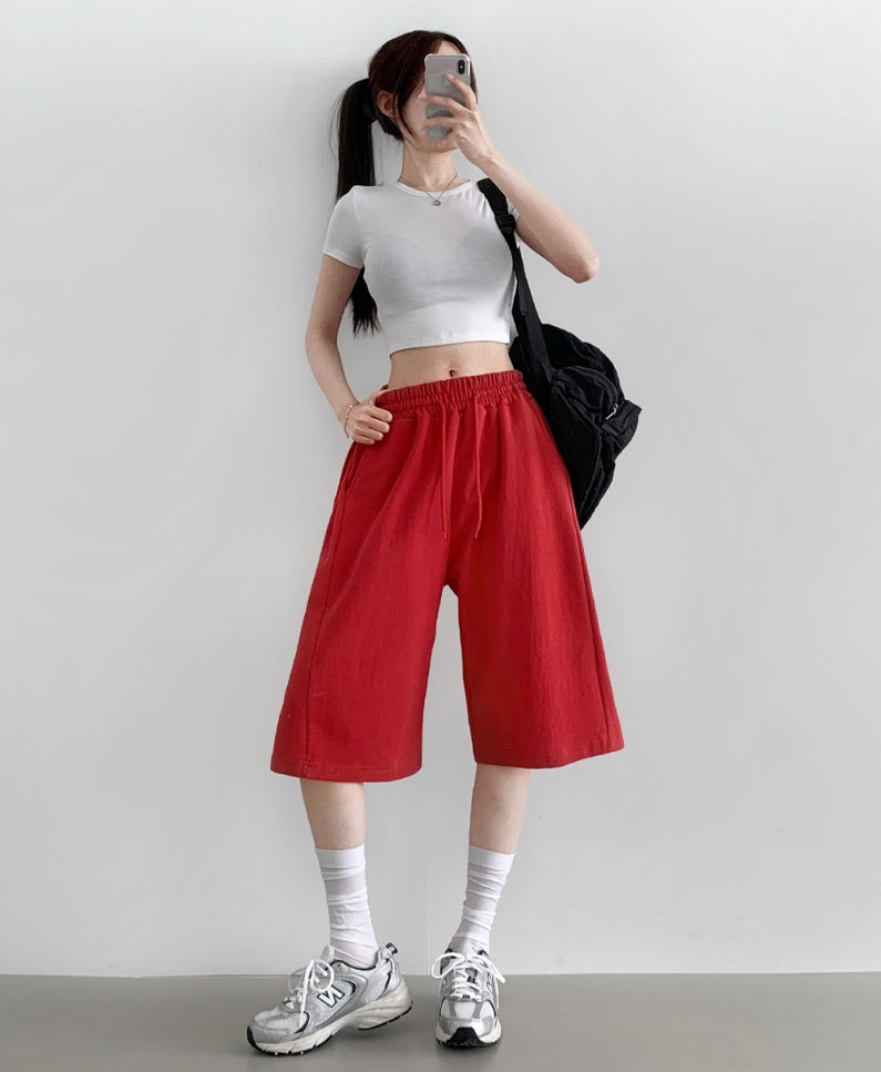 -ONE SIZE (ウエスト(ゴム)56 ヒップ124 股上38 股下27 もも周り70 裾周り67 総丈65)