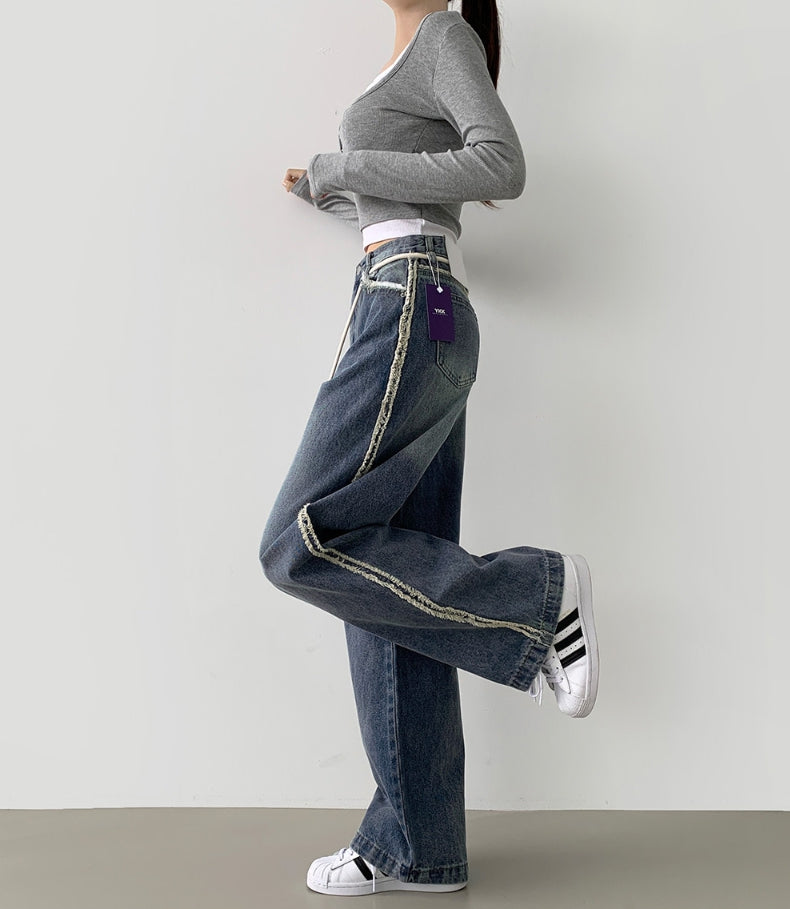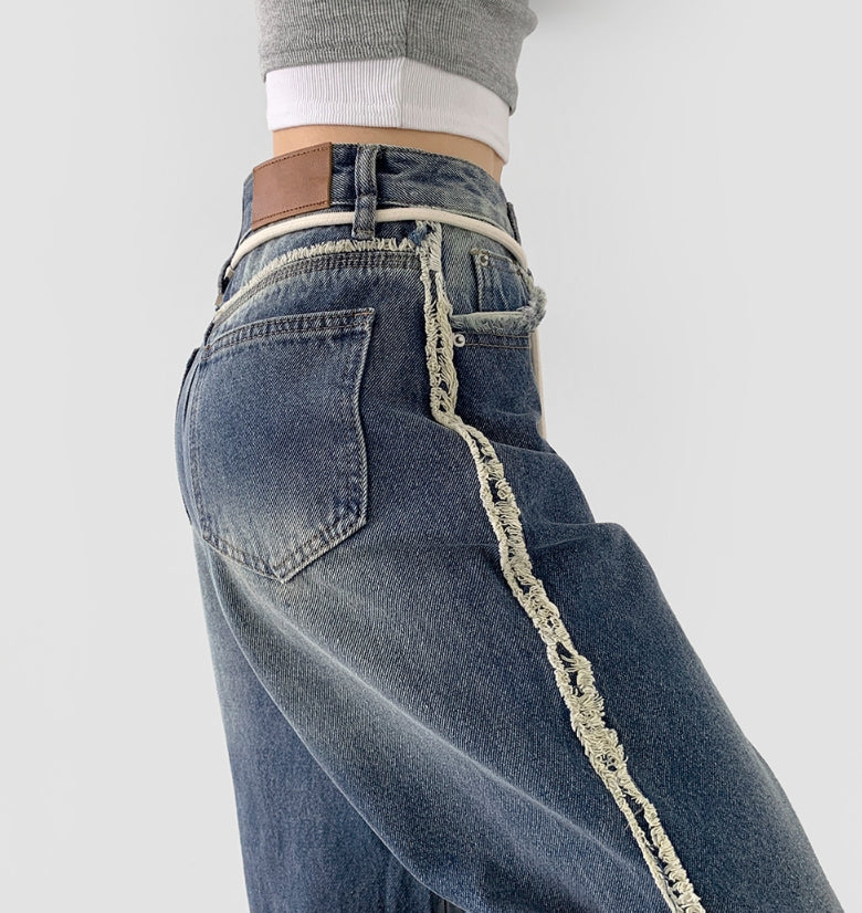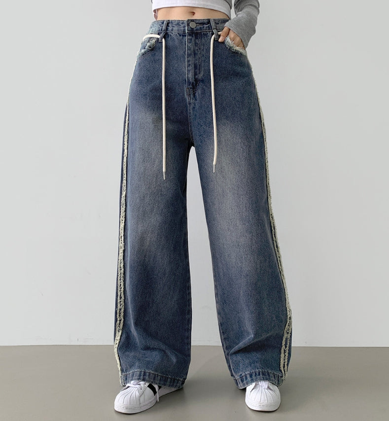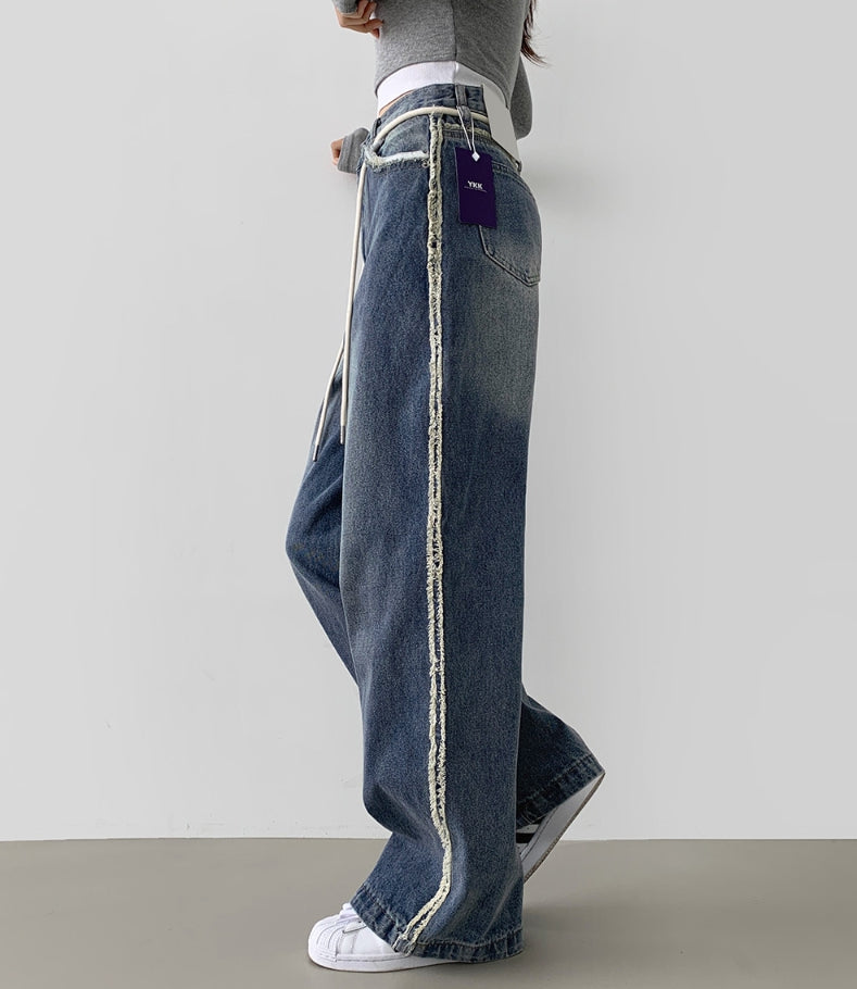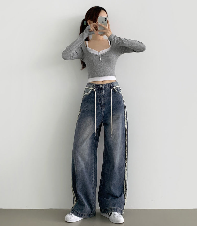 Side Surgery Point Hip Point Long Wide Denim Pants