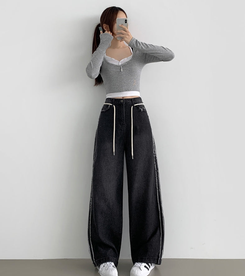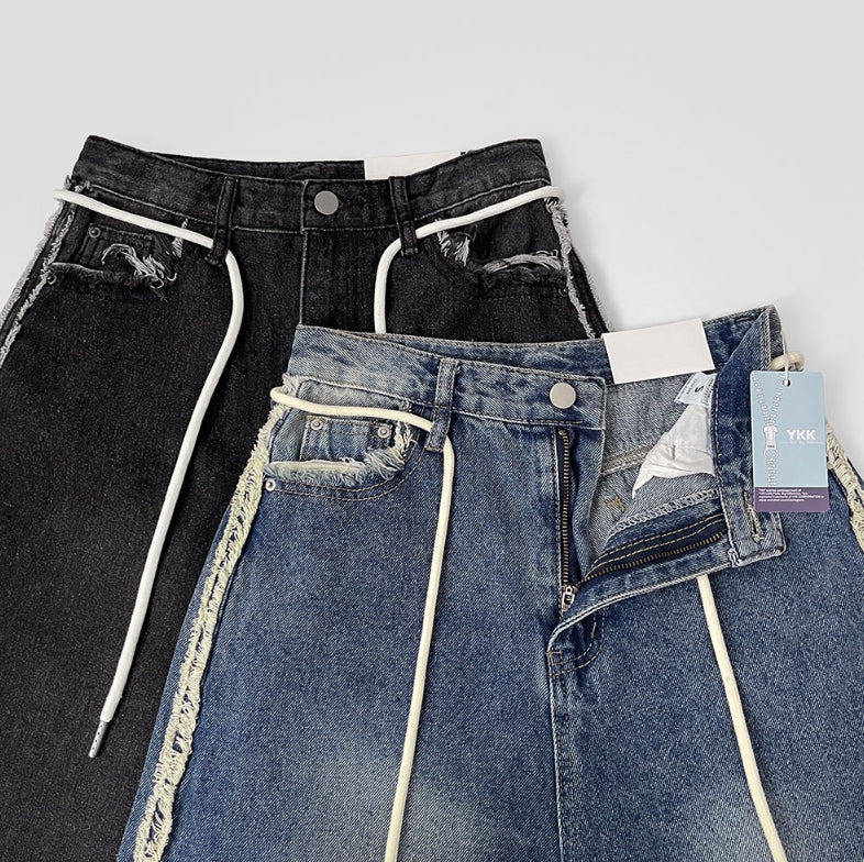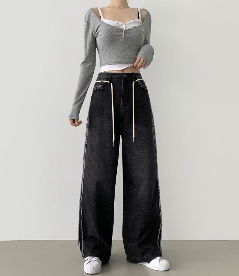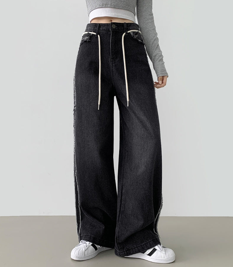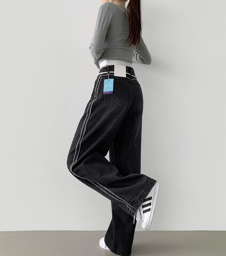 Side Surgery Point Hip Point Long Wide Denim Pants