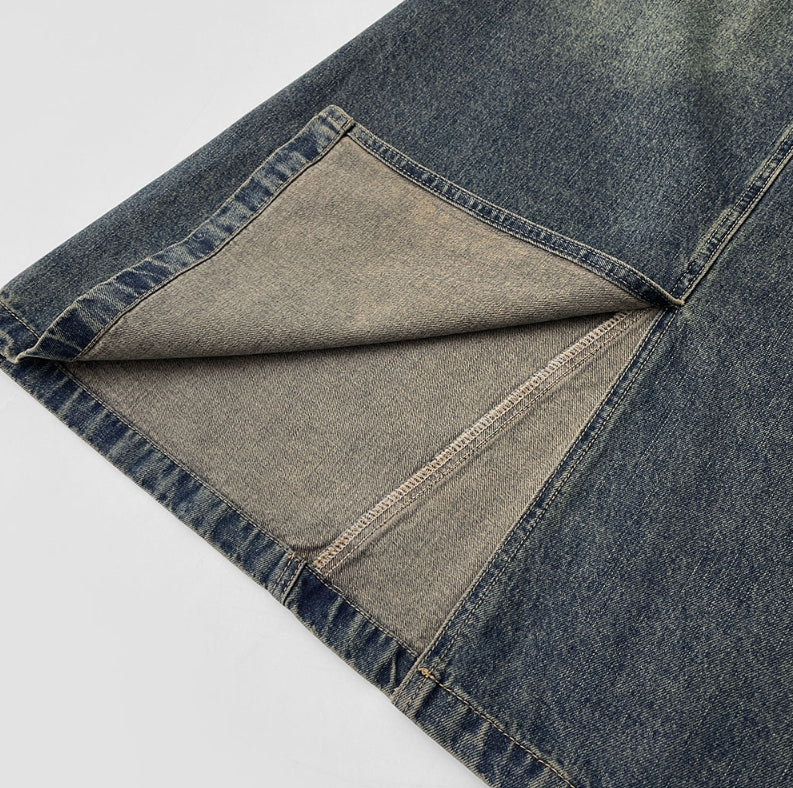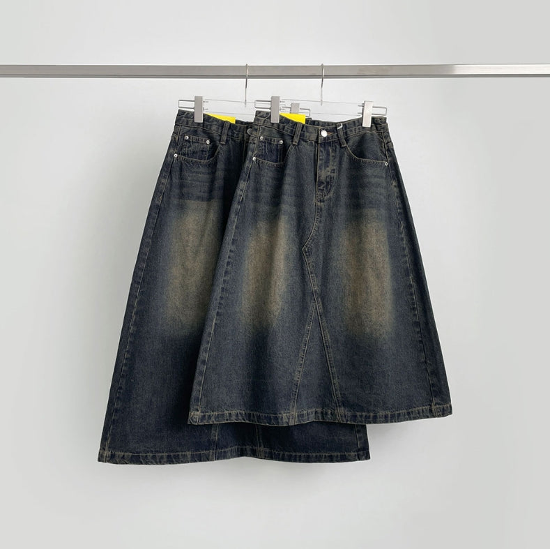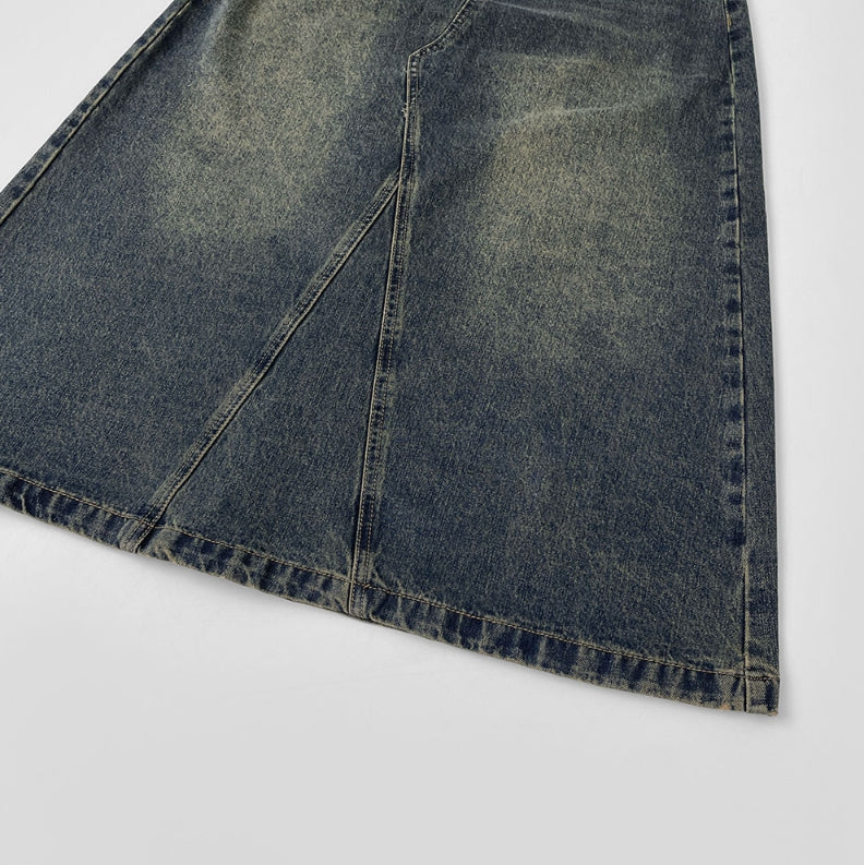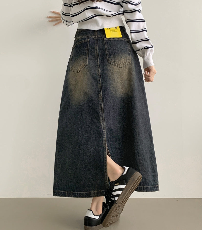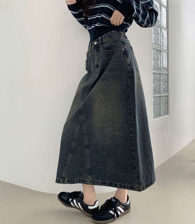 Simple Casual A-line 4-season Curved Line Denim Long Skirt