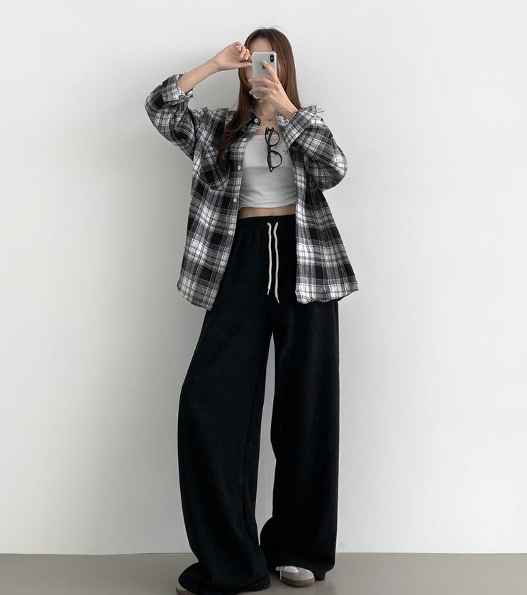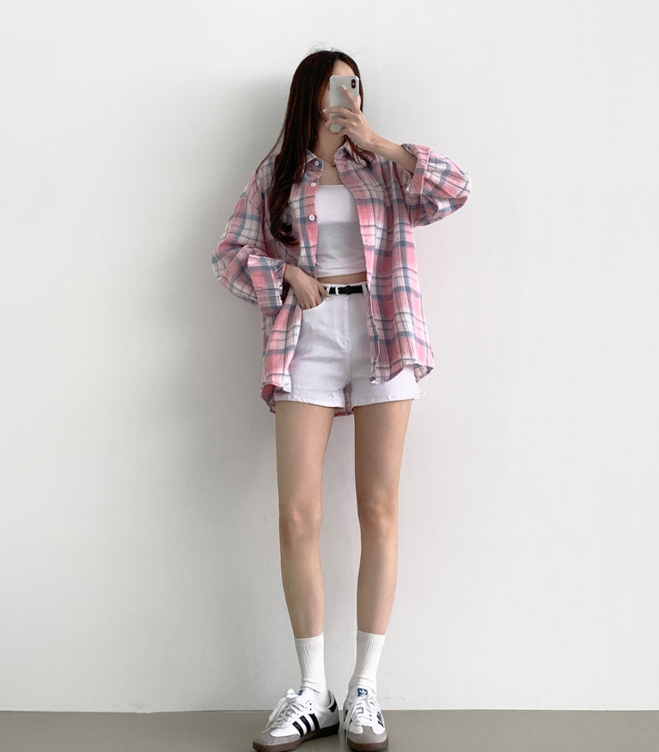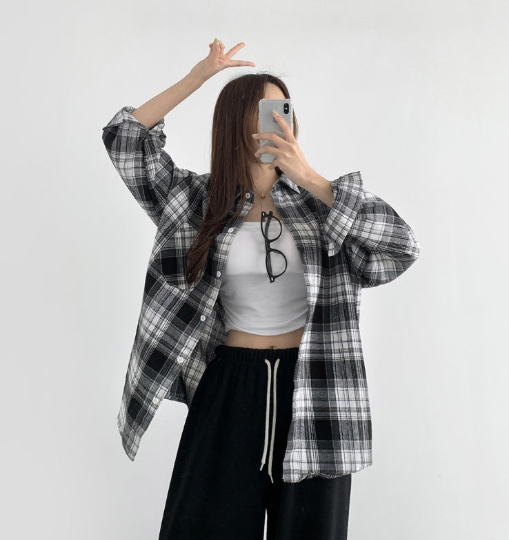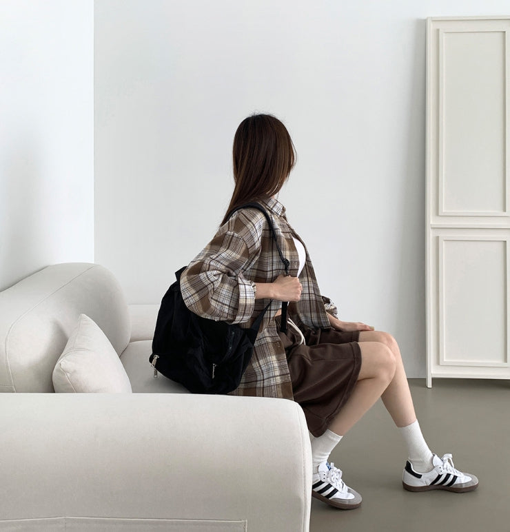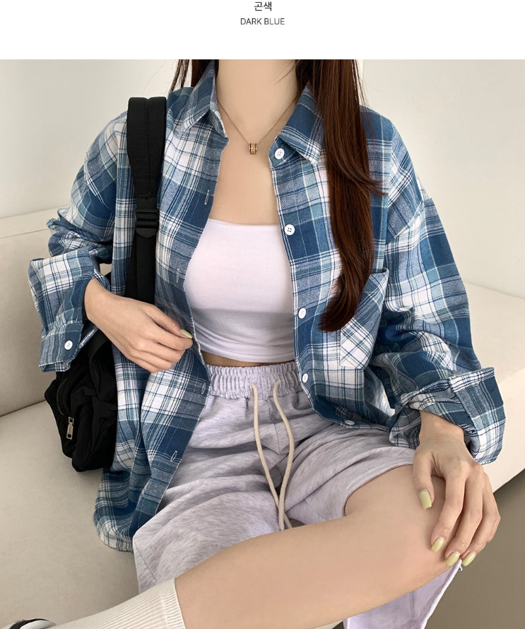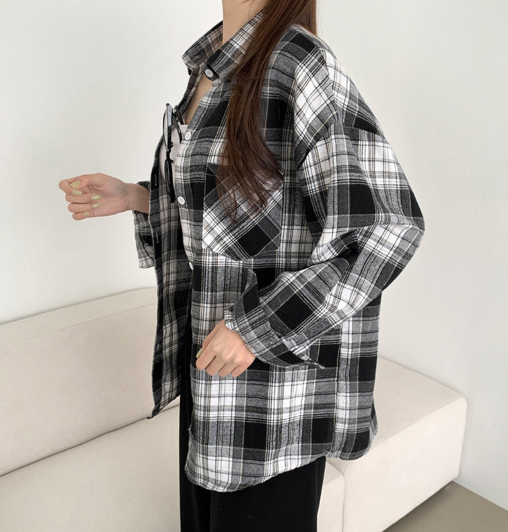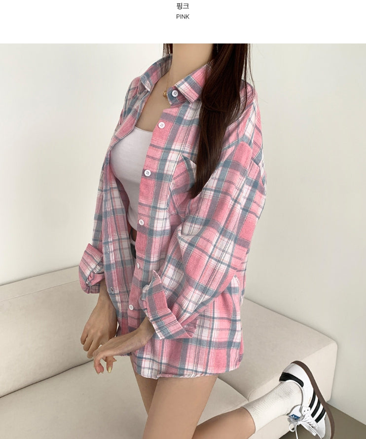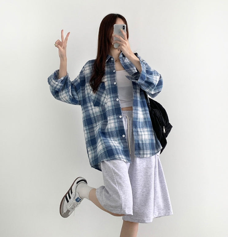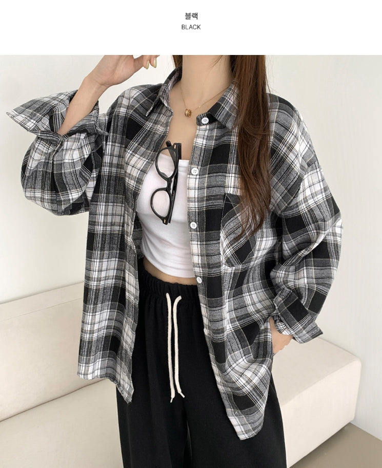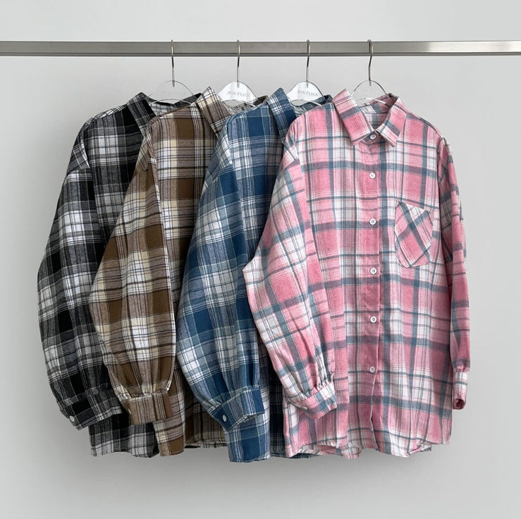 Soft check loose fit long sleeve shirt