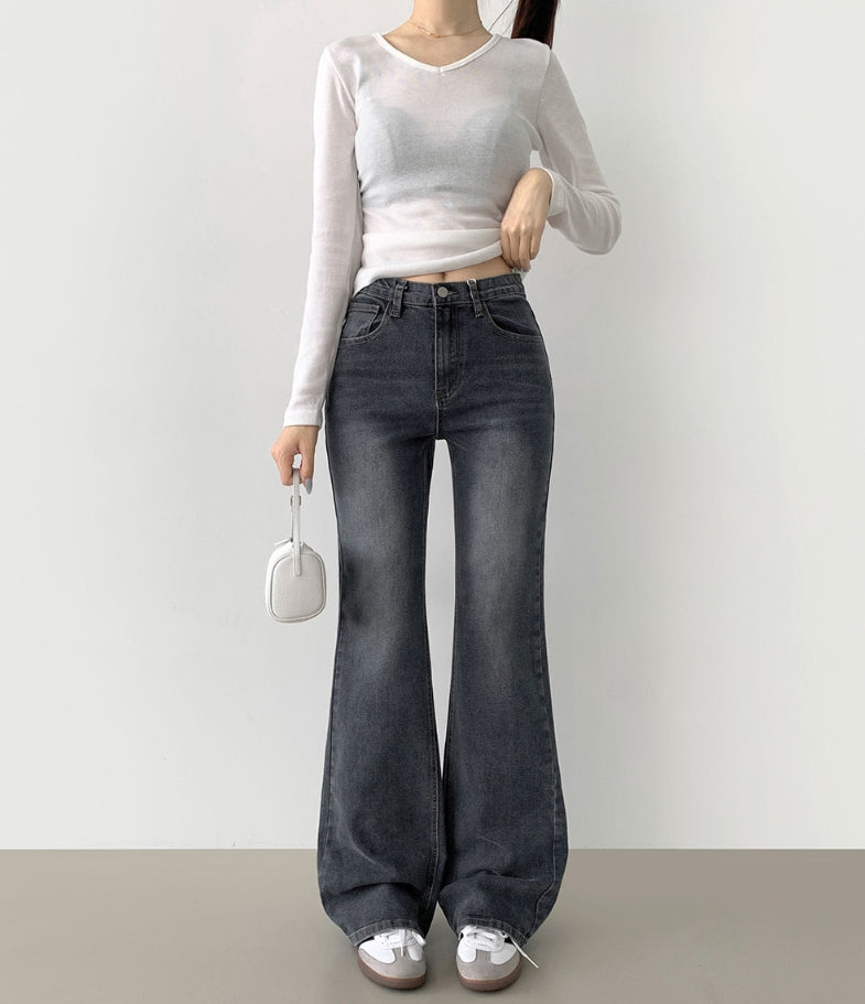 Span Relaxed Loose Long Bootcut Banding Denim Pants