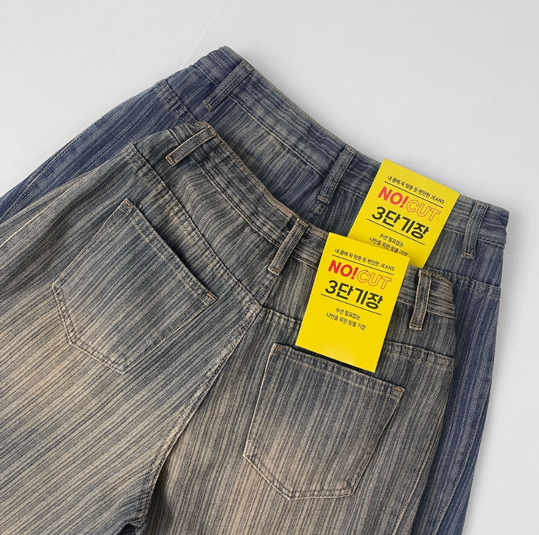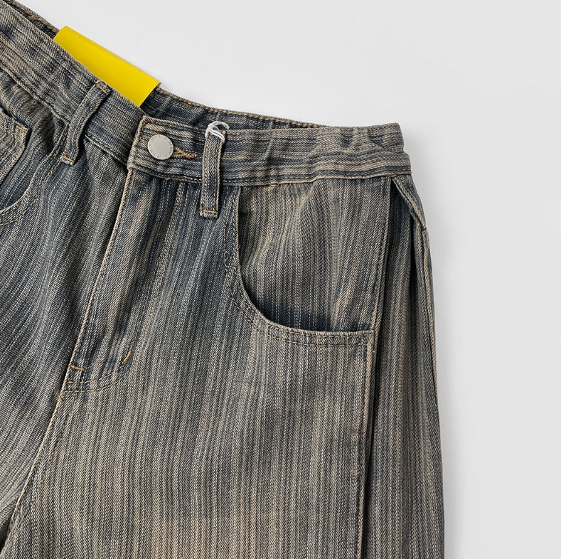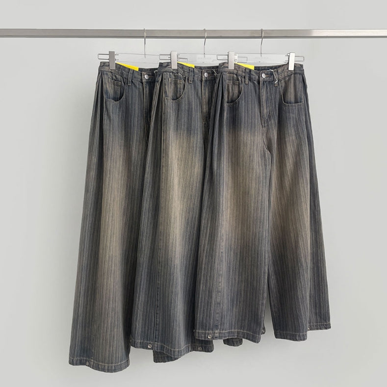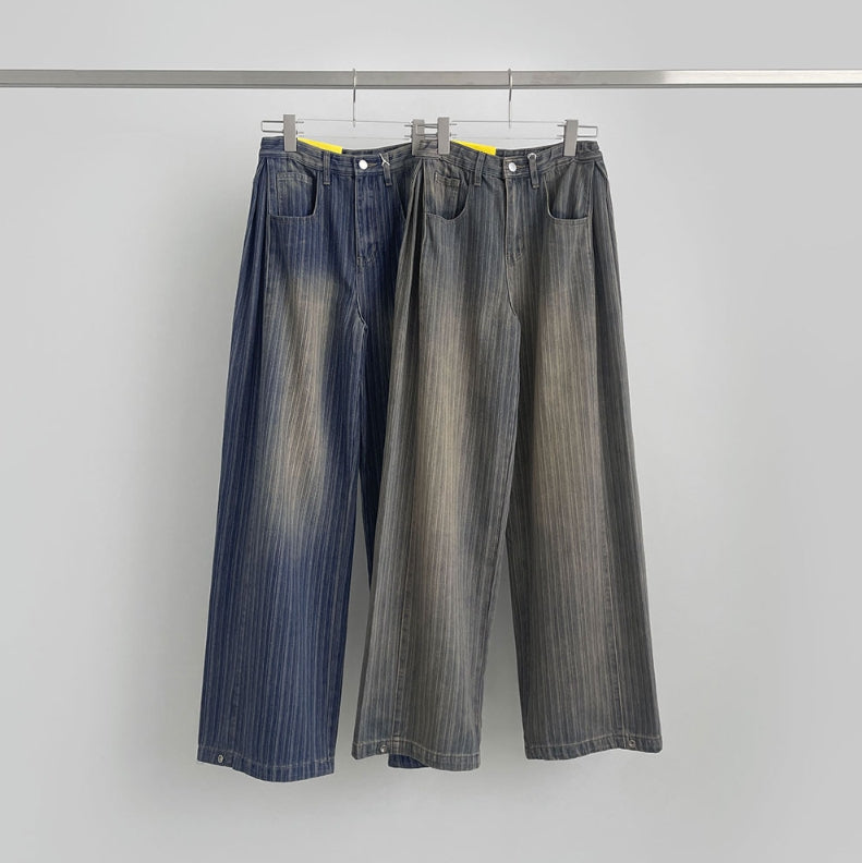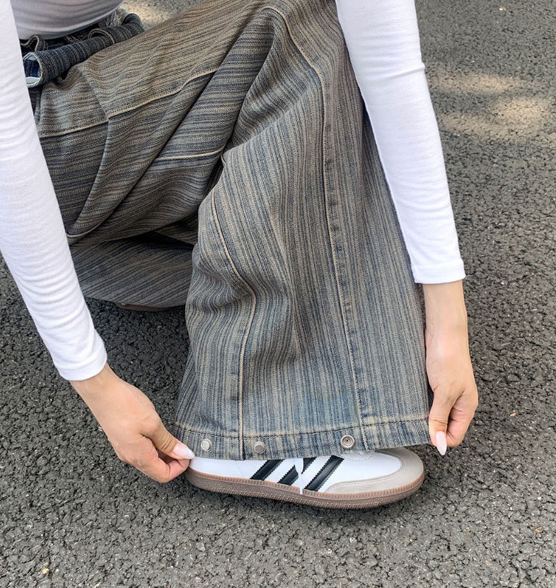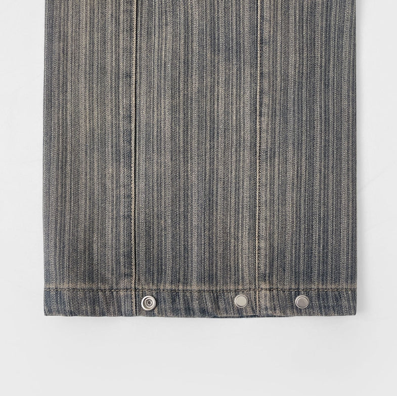 ストライプフォールディングヘムスナップワイドデニムパンツ