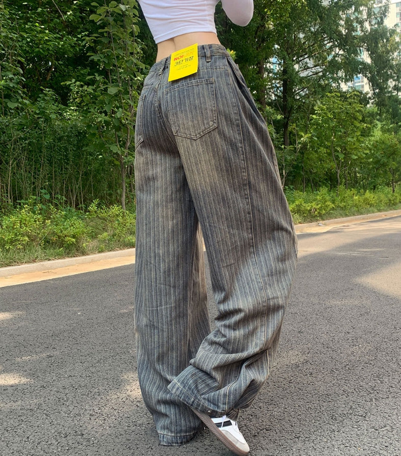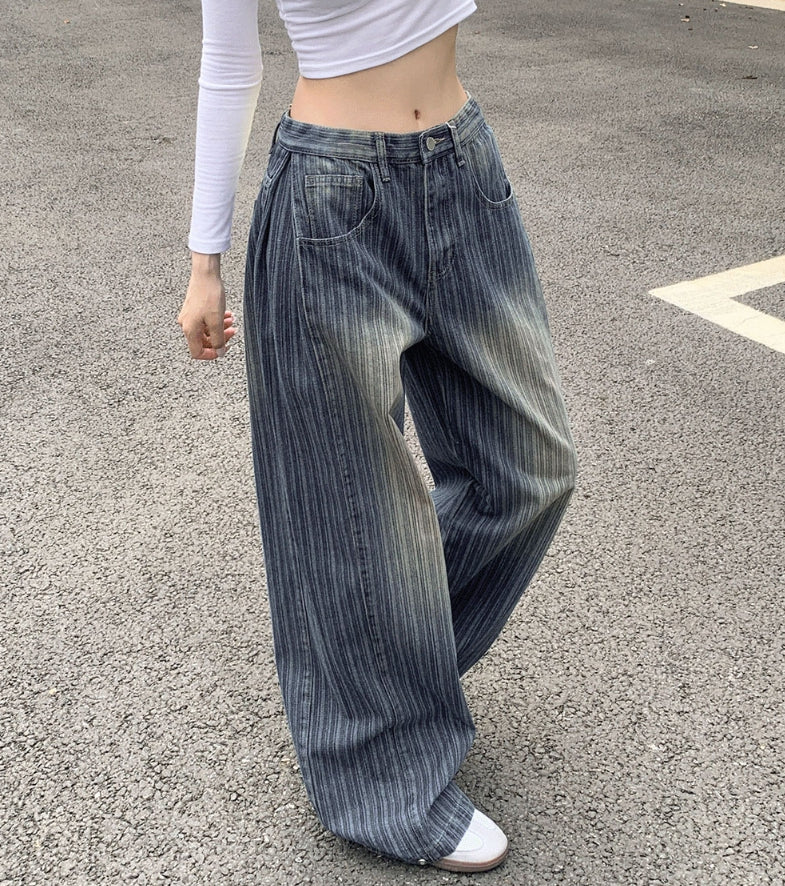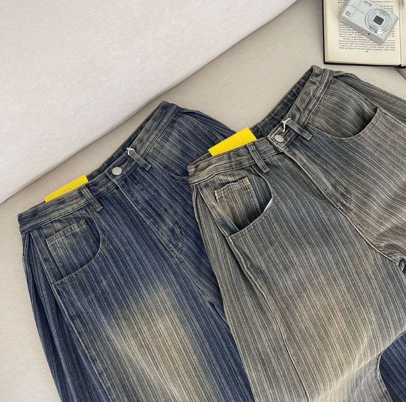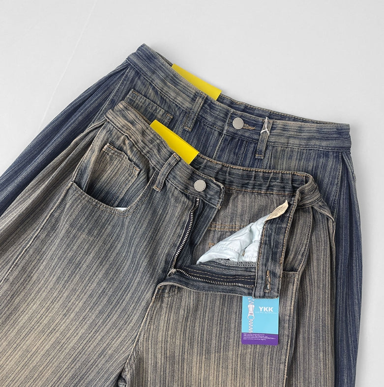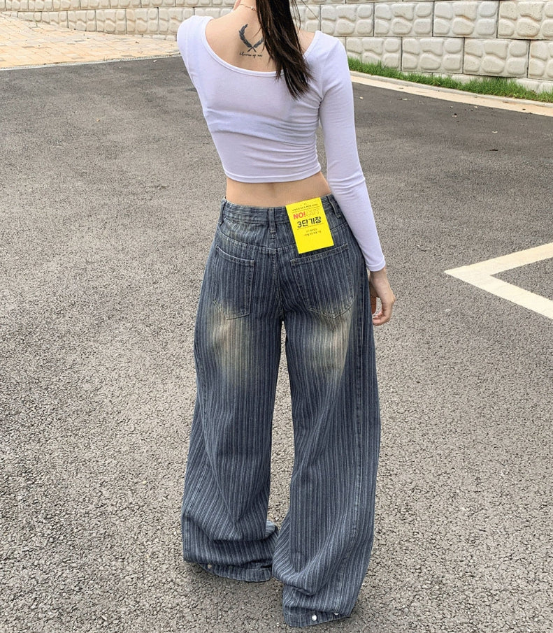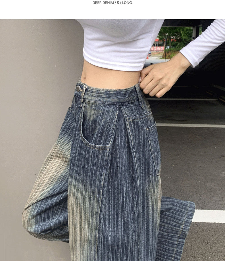 ストライプフォールディングヘムスナップワイドデニムパンツ