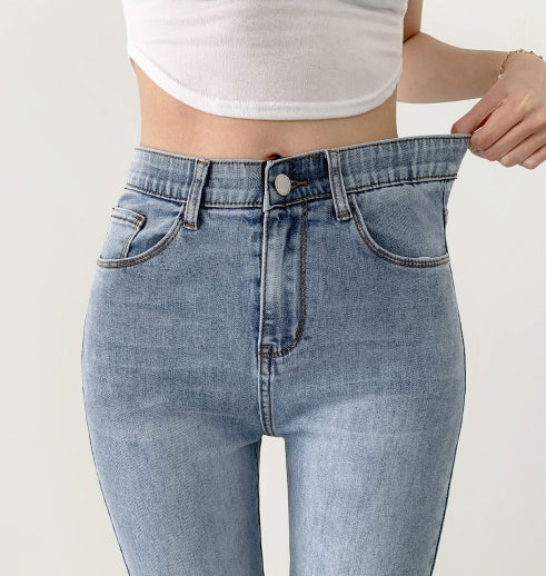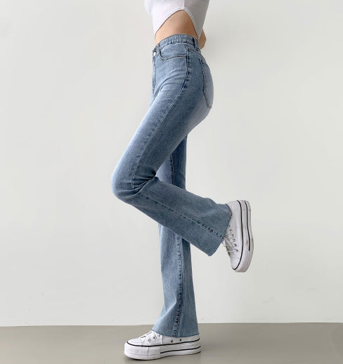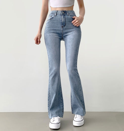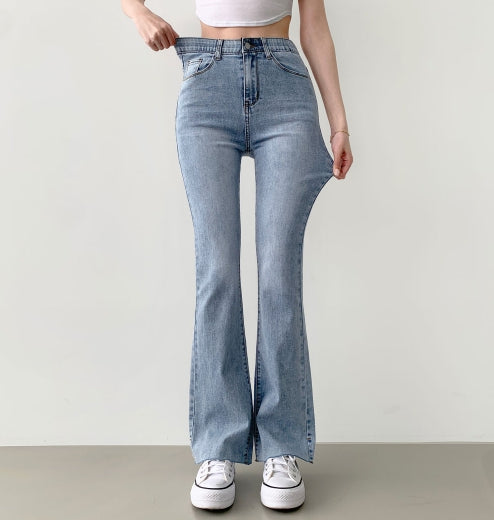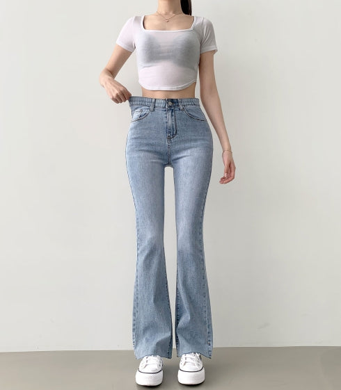 サマークーリングインナーバンディングセミブーツカットスパンデニムパンツ