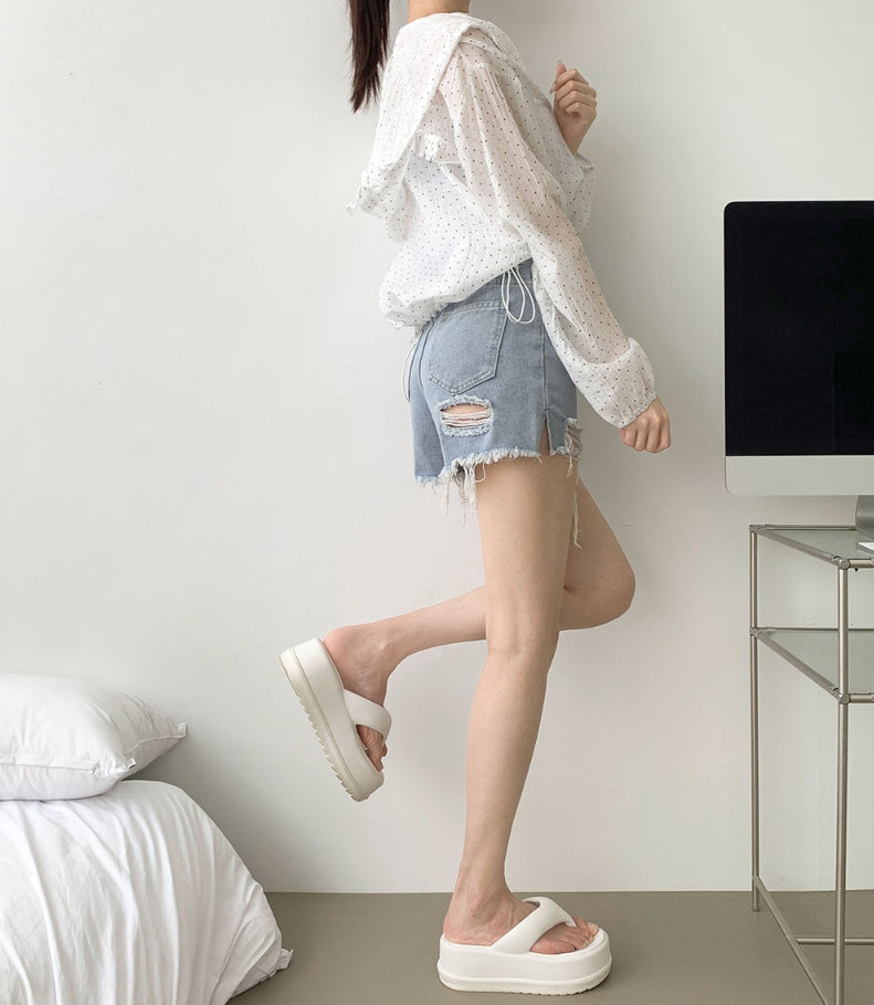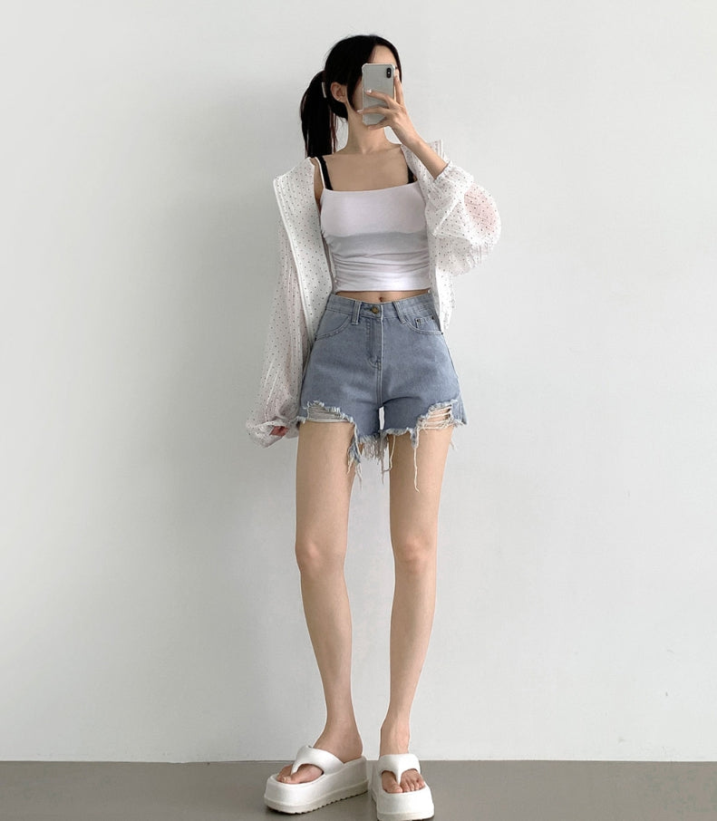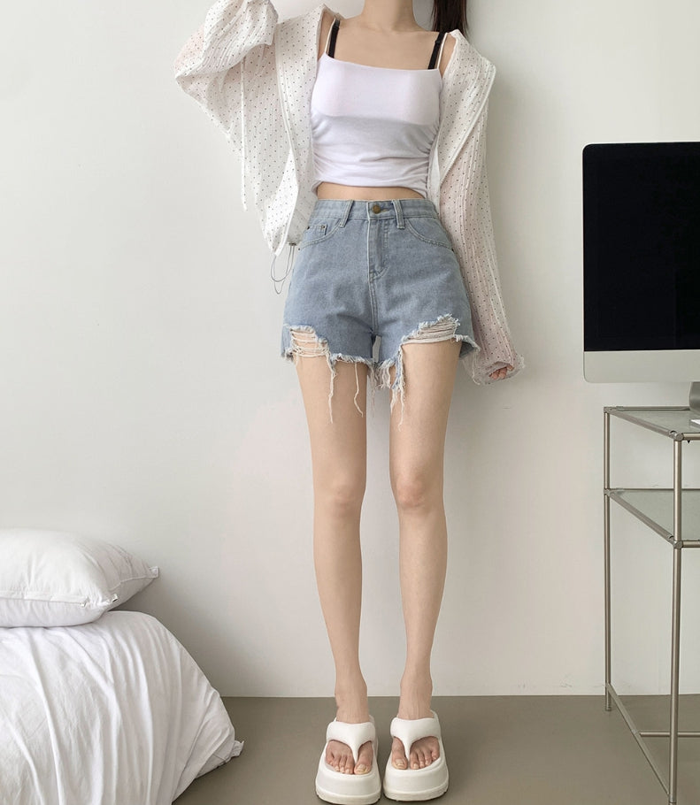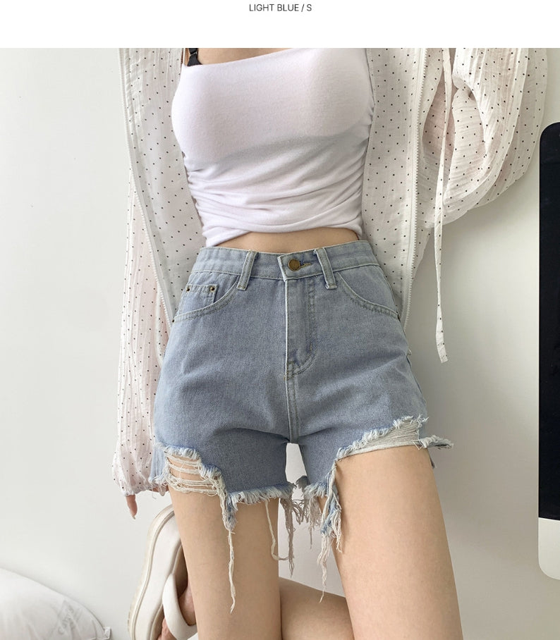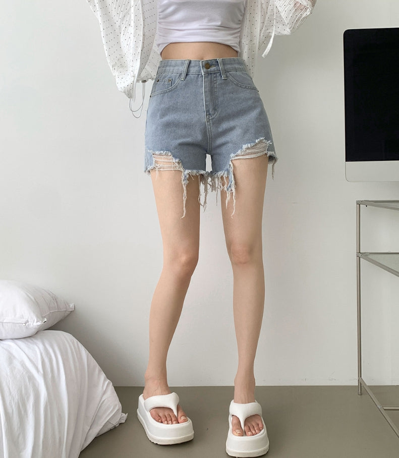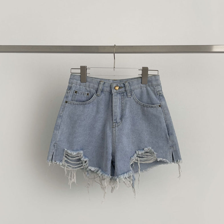 ホットサマーカッティングサイドスリットダメージデニムショートパンツ