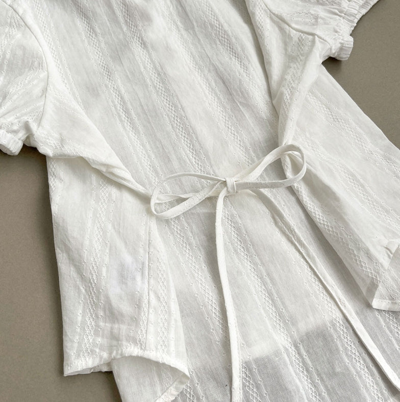 夏レースパターンパフ半袖リボンブラウス