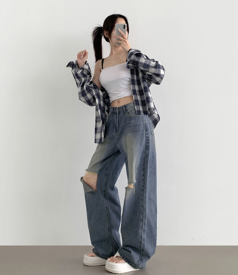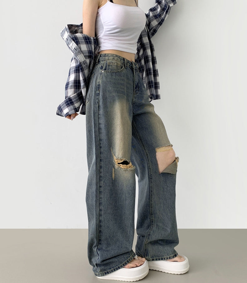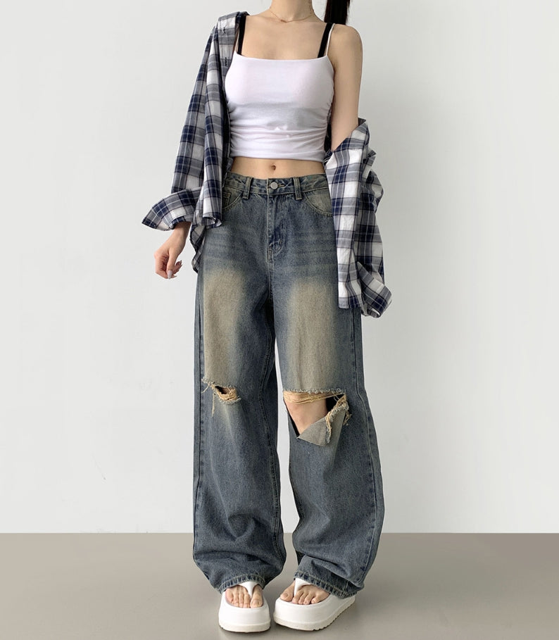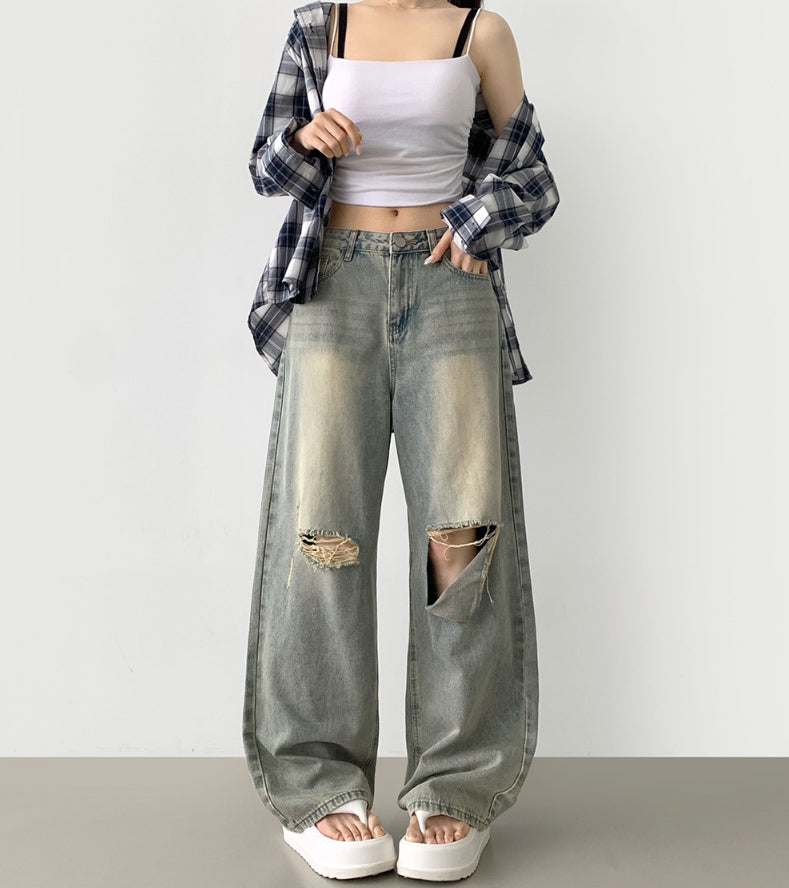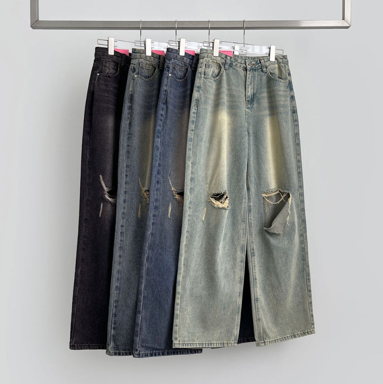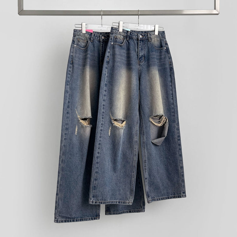 サマーノーフェードバルーンワイドフィットデニムパンツ