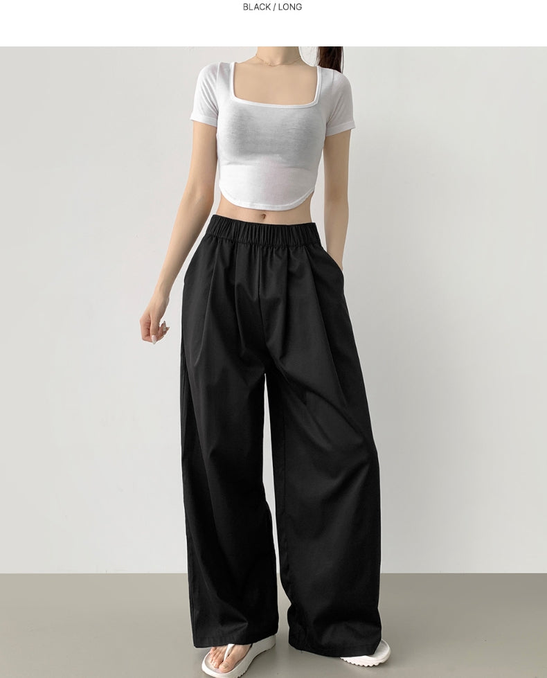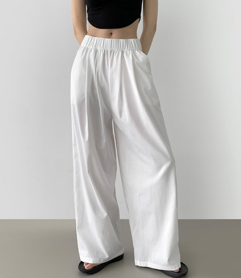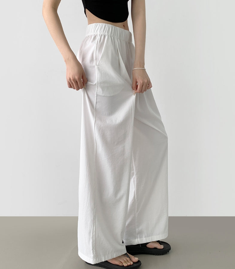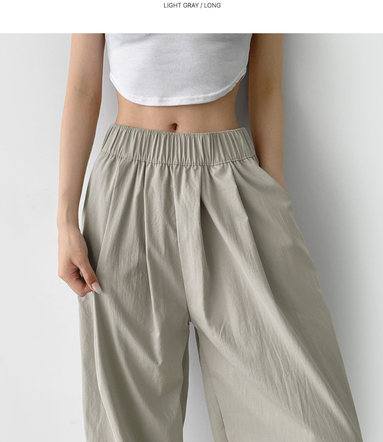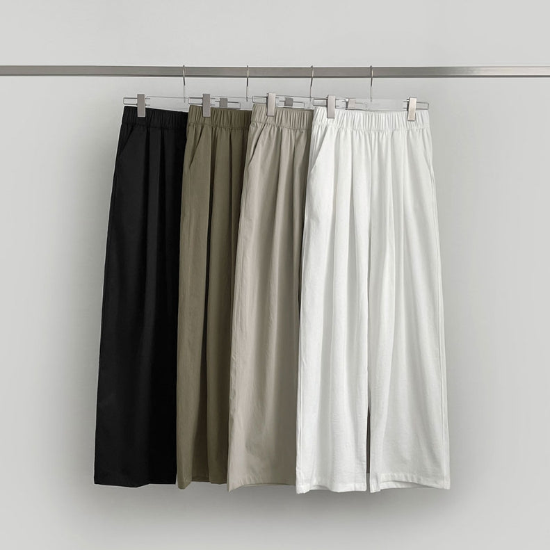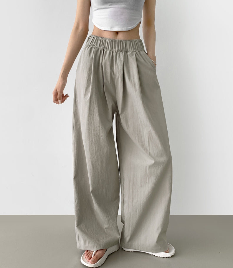 Summer Pin Tuck Long Wide Banding Pants