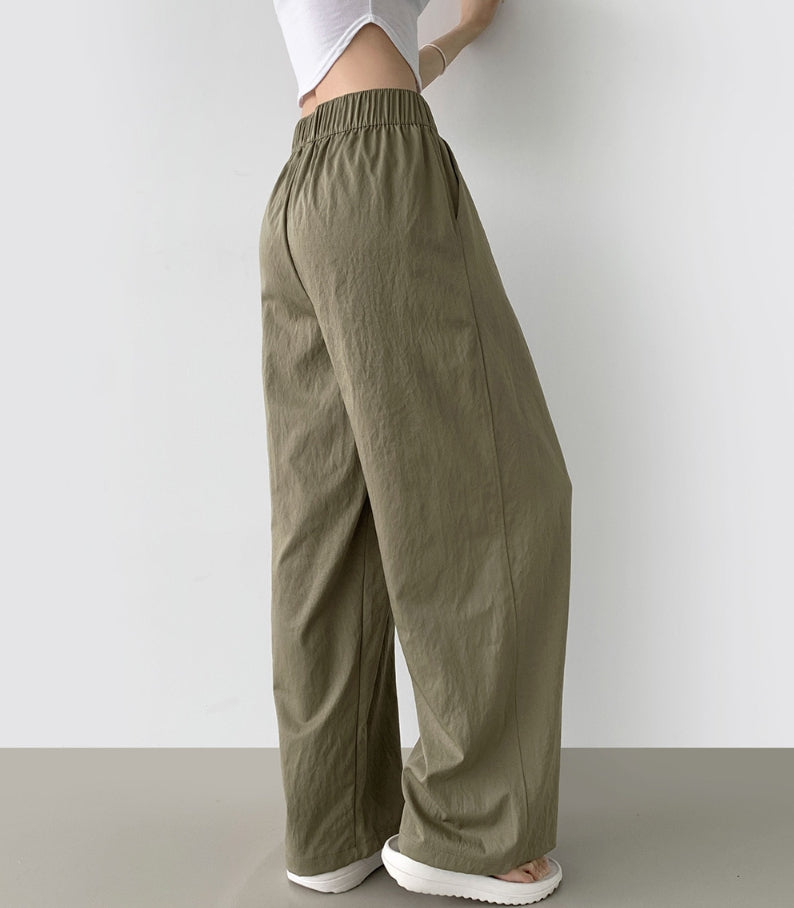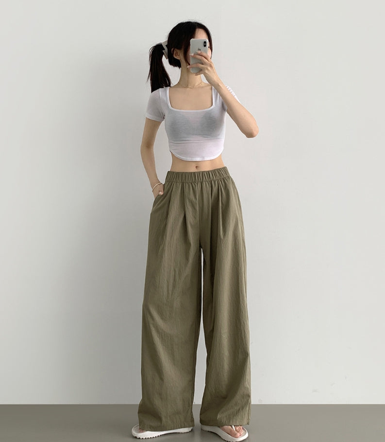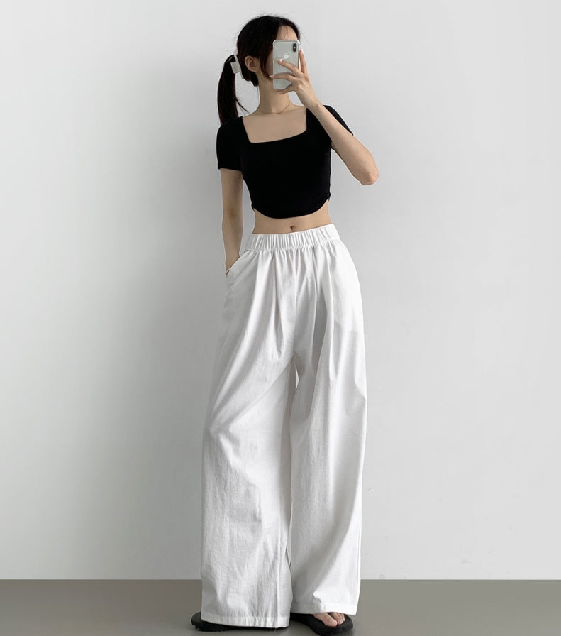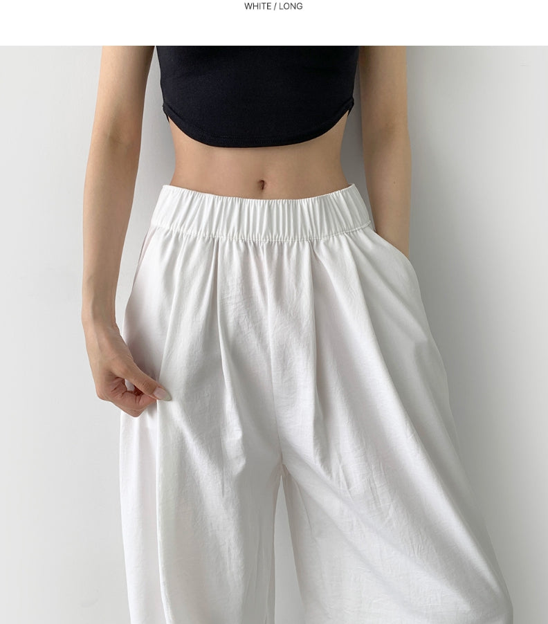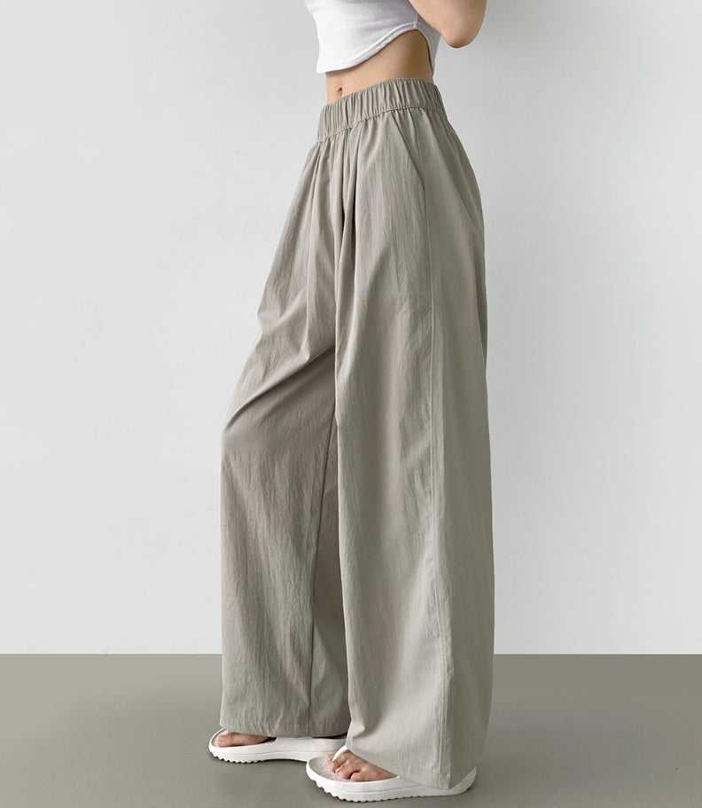 Summer Pin Tuck Long Wide Banding Pants