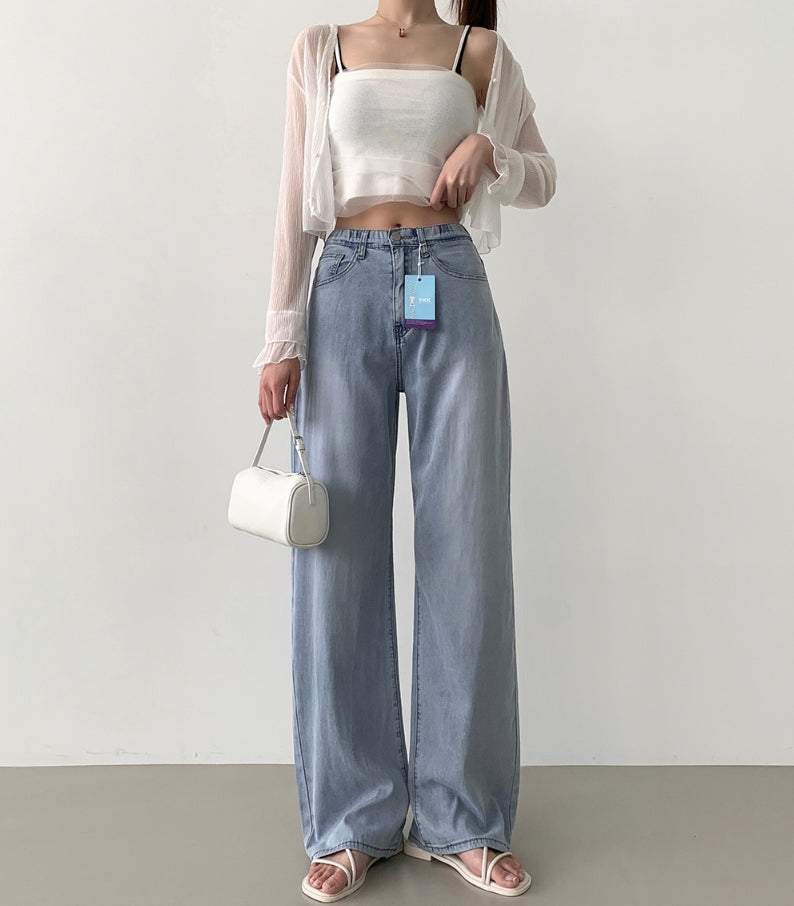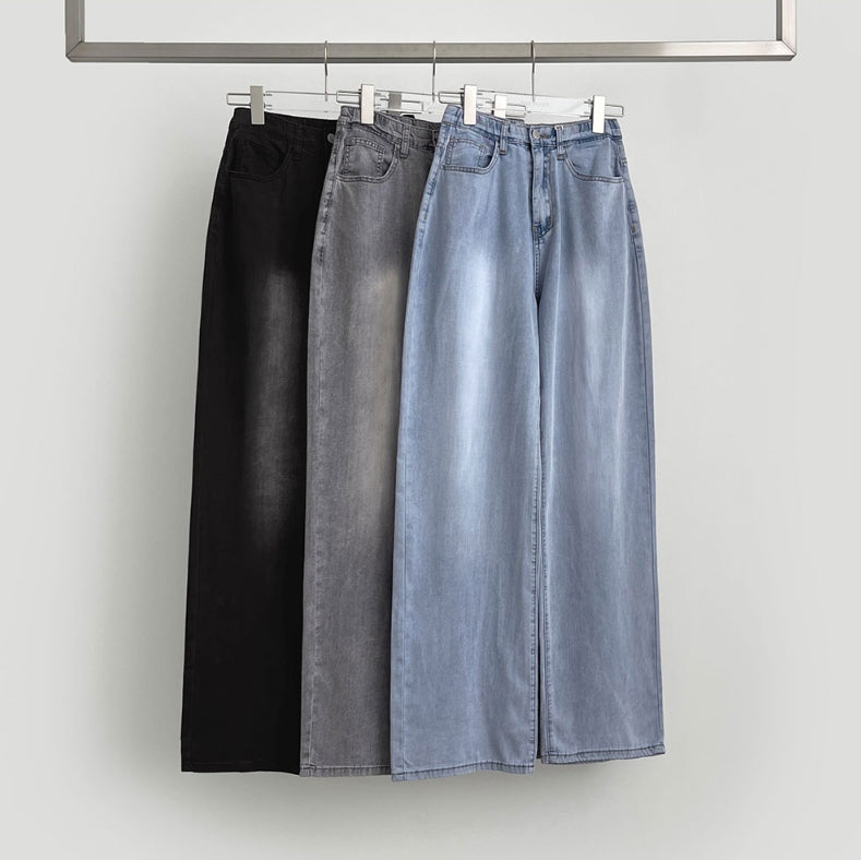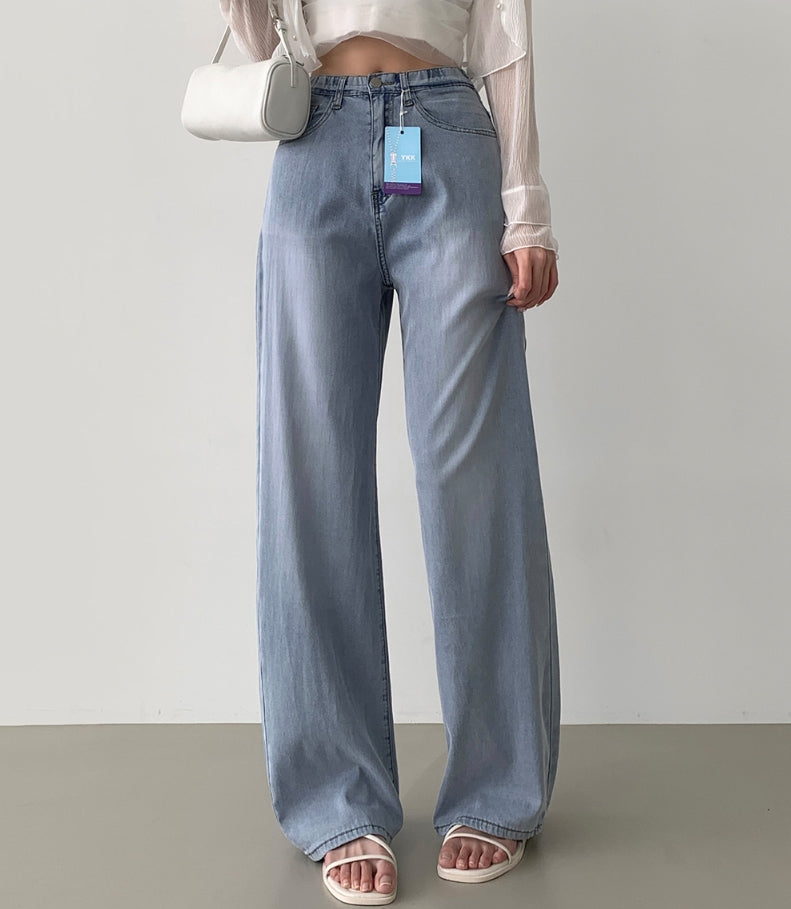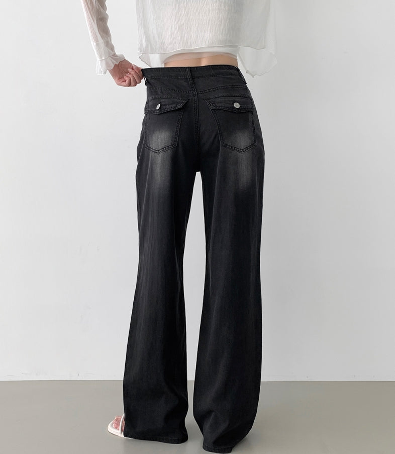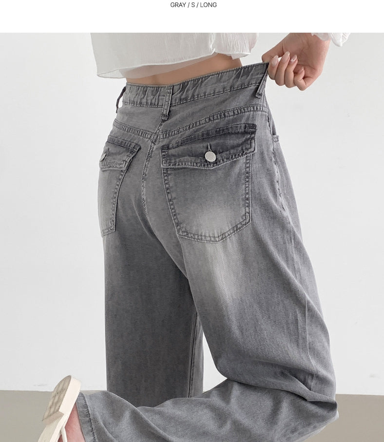 Summer Tencel Back Pocket Span Banding Wide Denim Pants