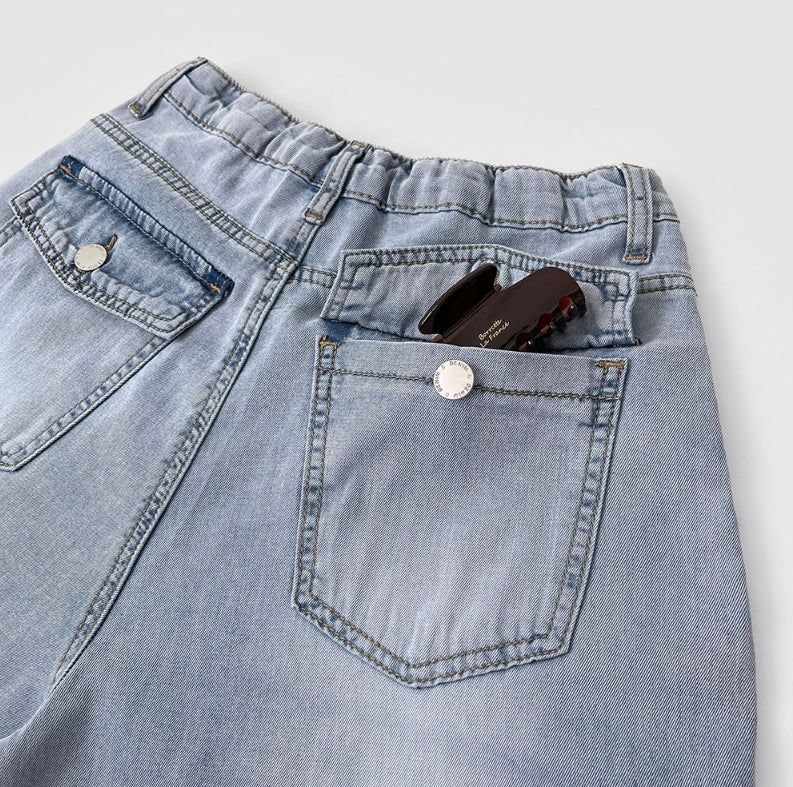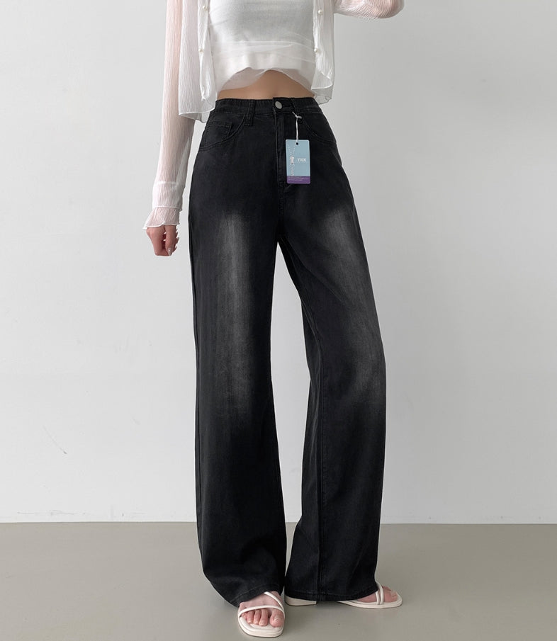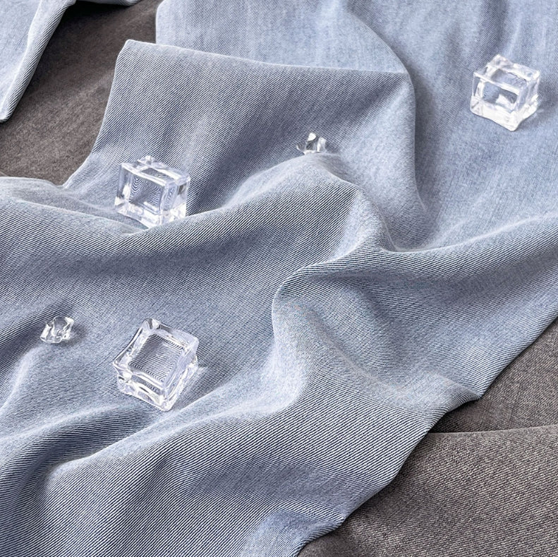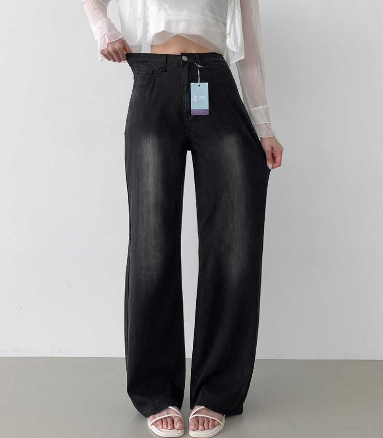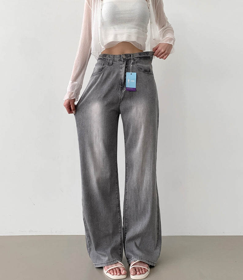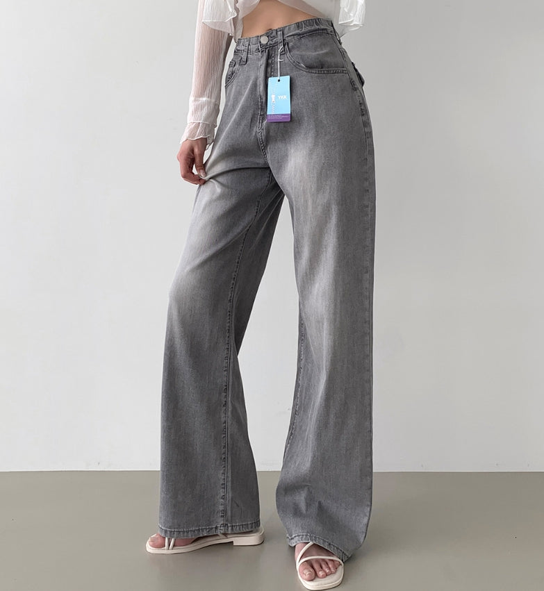 Summer Tencel Back Pocket Span Banding Wide Denim Pants